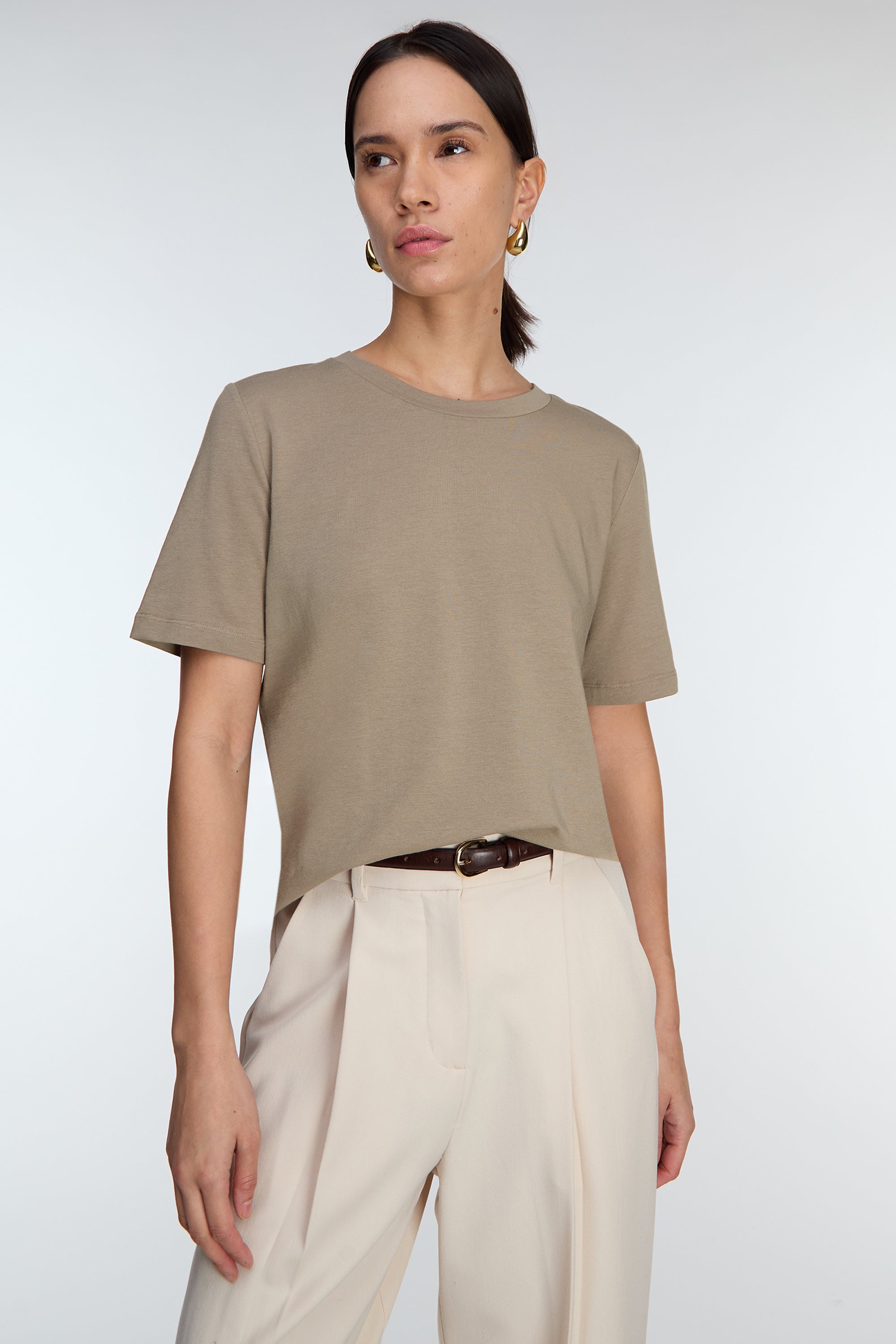 Cotton modal jersey. Crew neckline. Lightweight: 155 gsm.