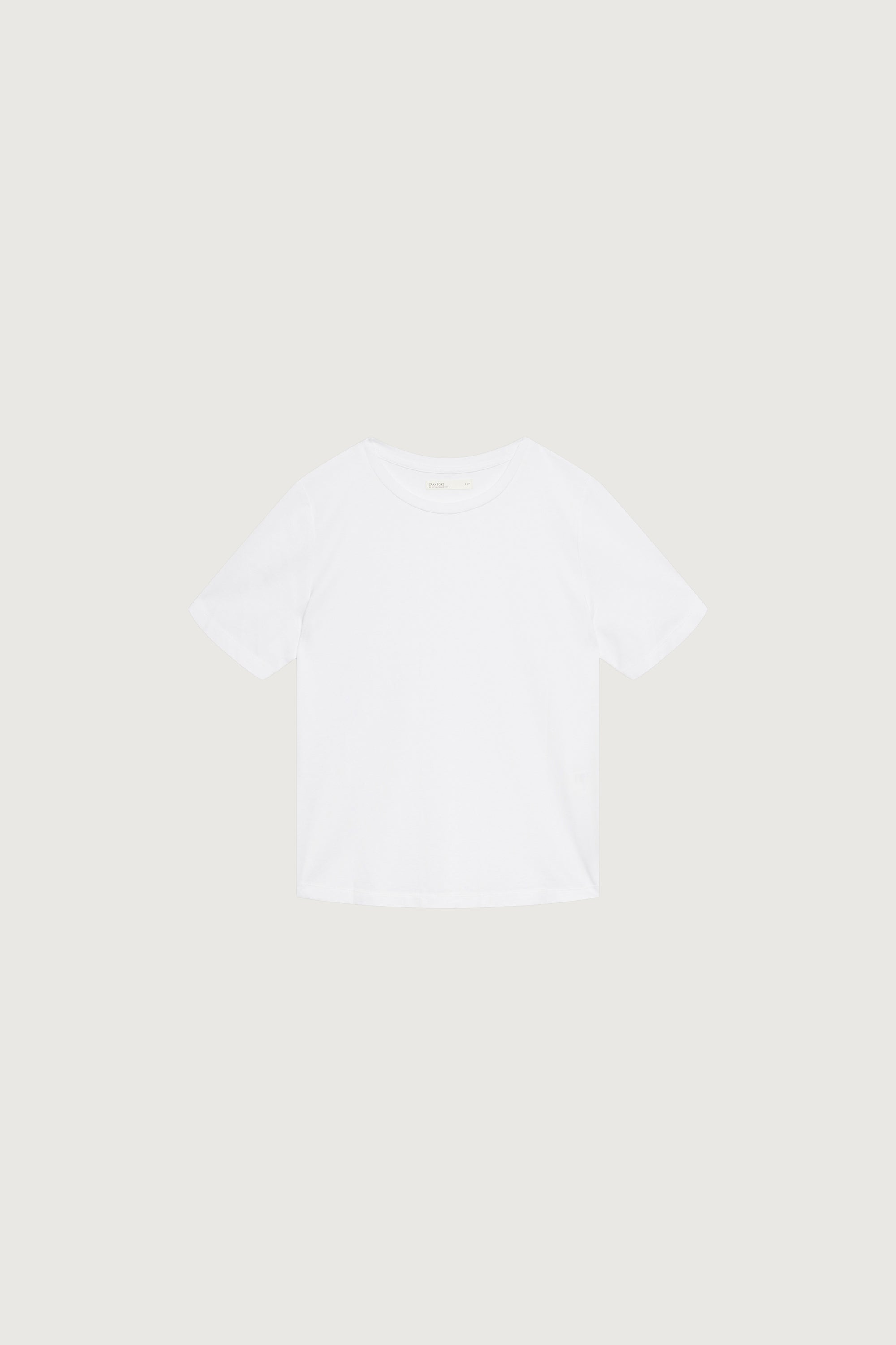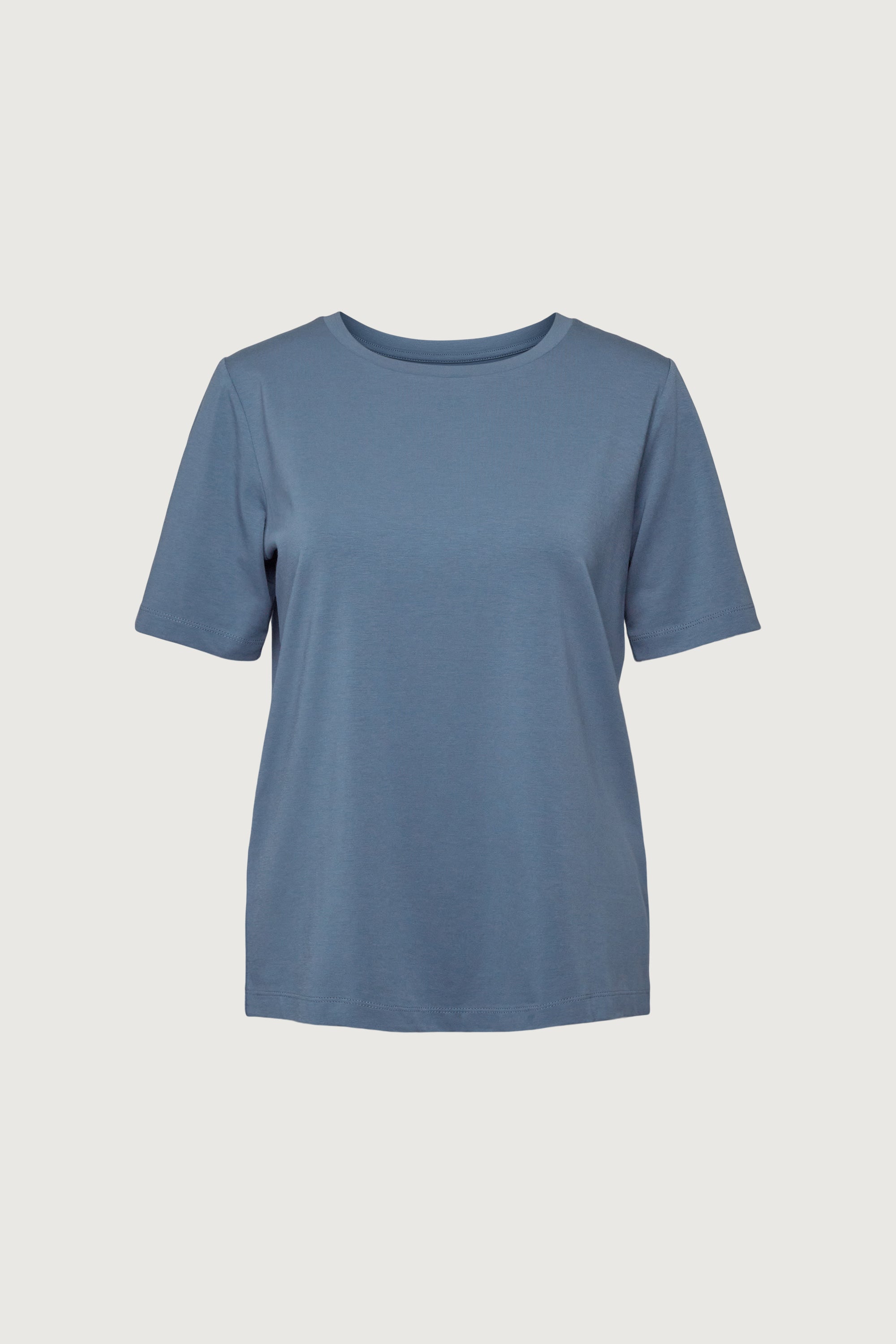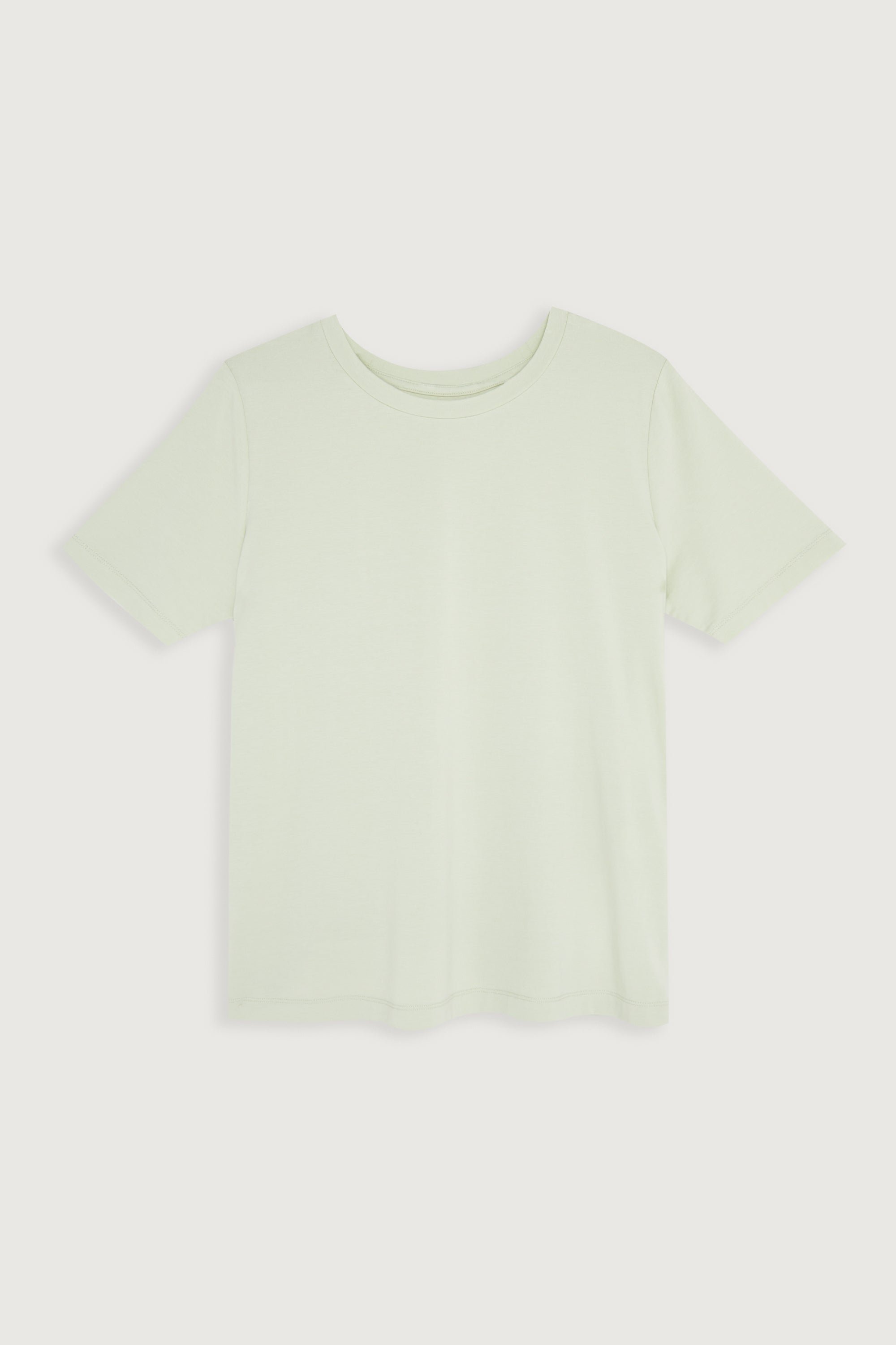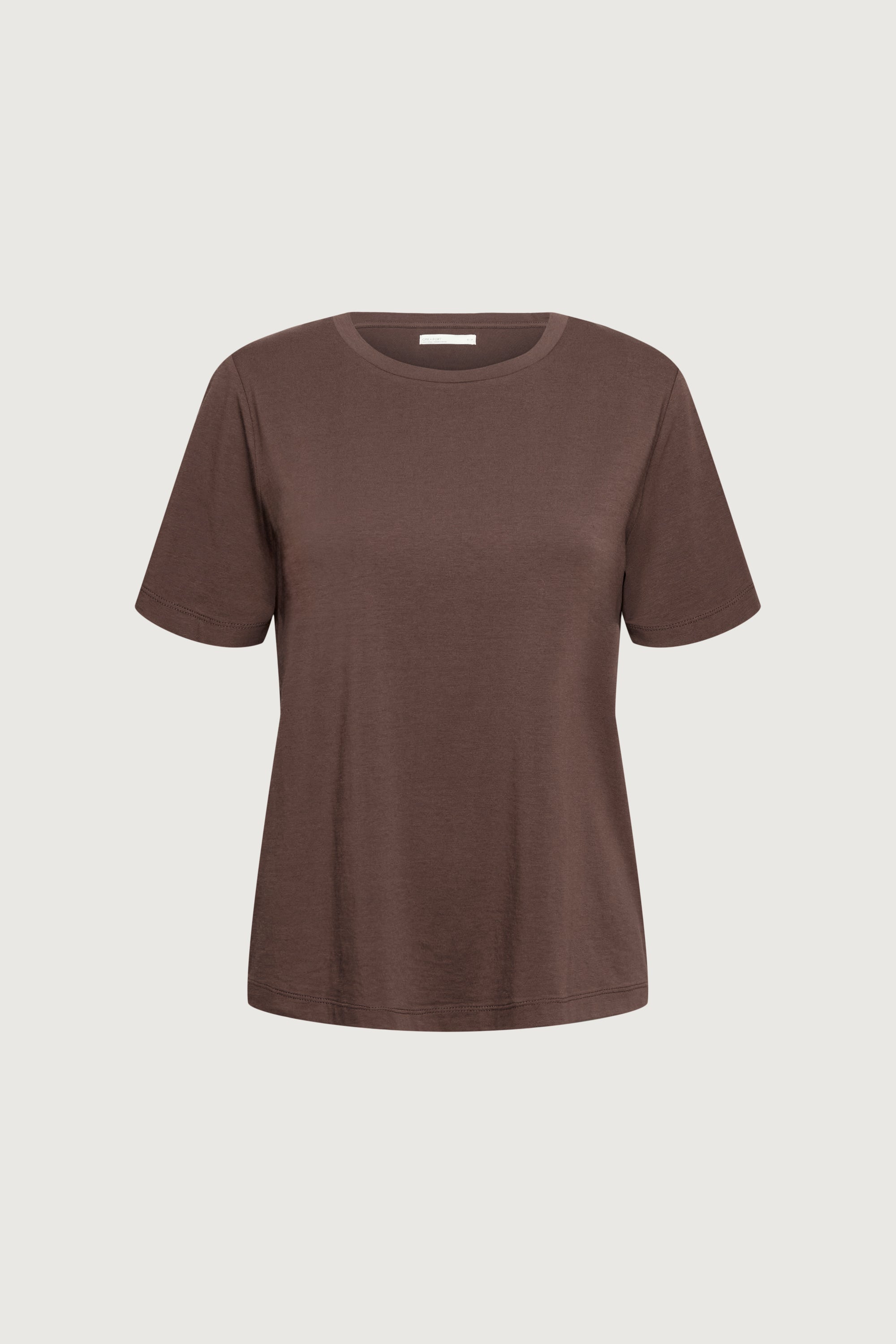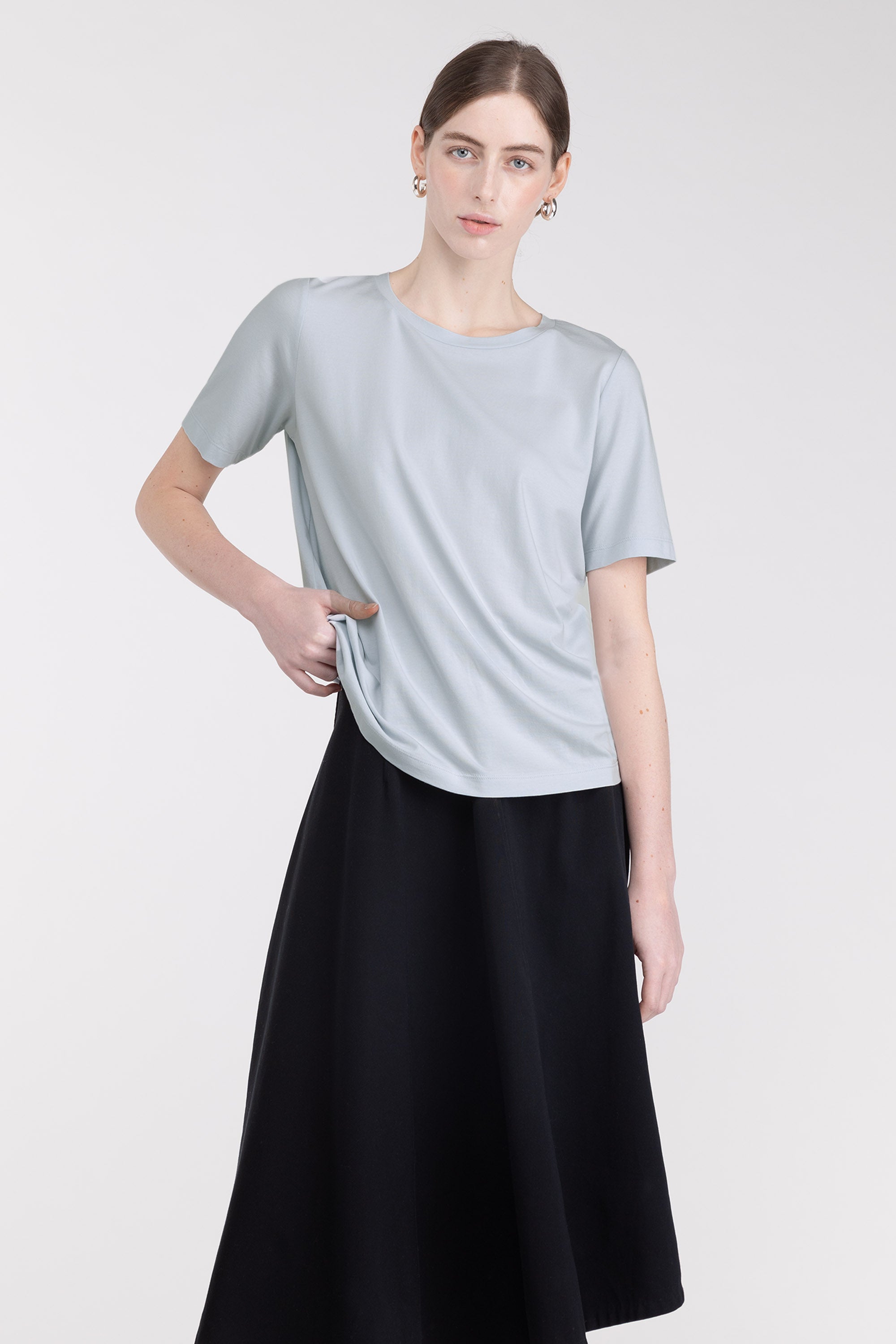 Cotton modal jersey. Lightweight: 156 gsm. Crew neckline.