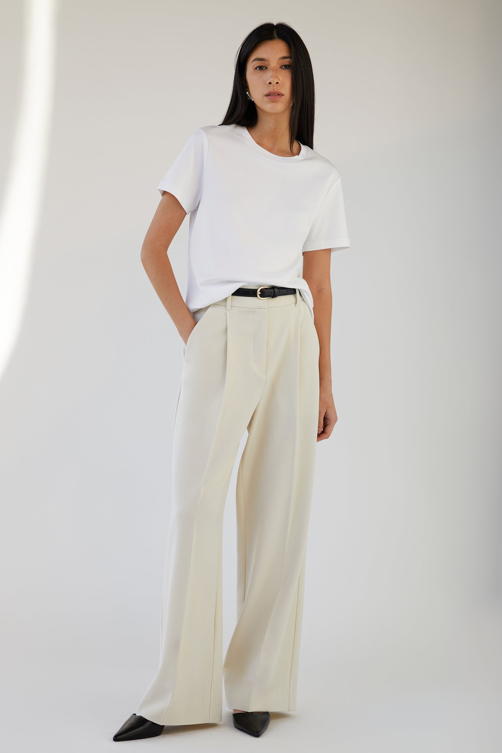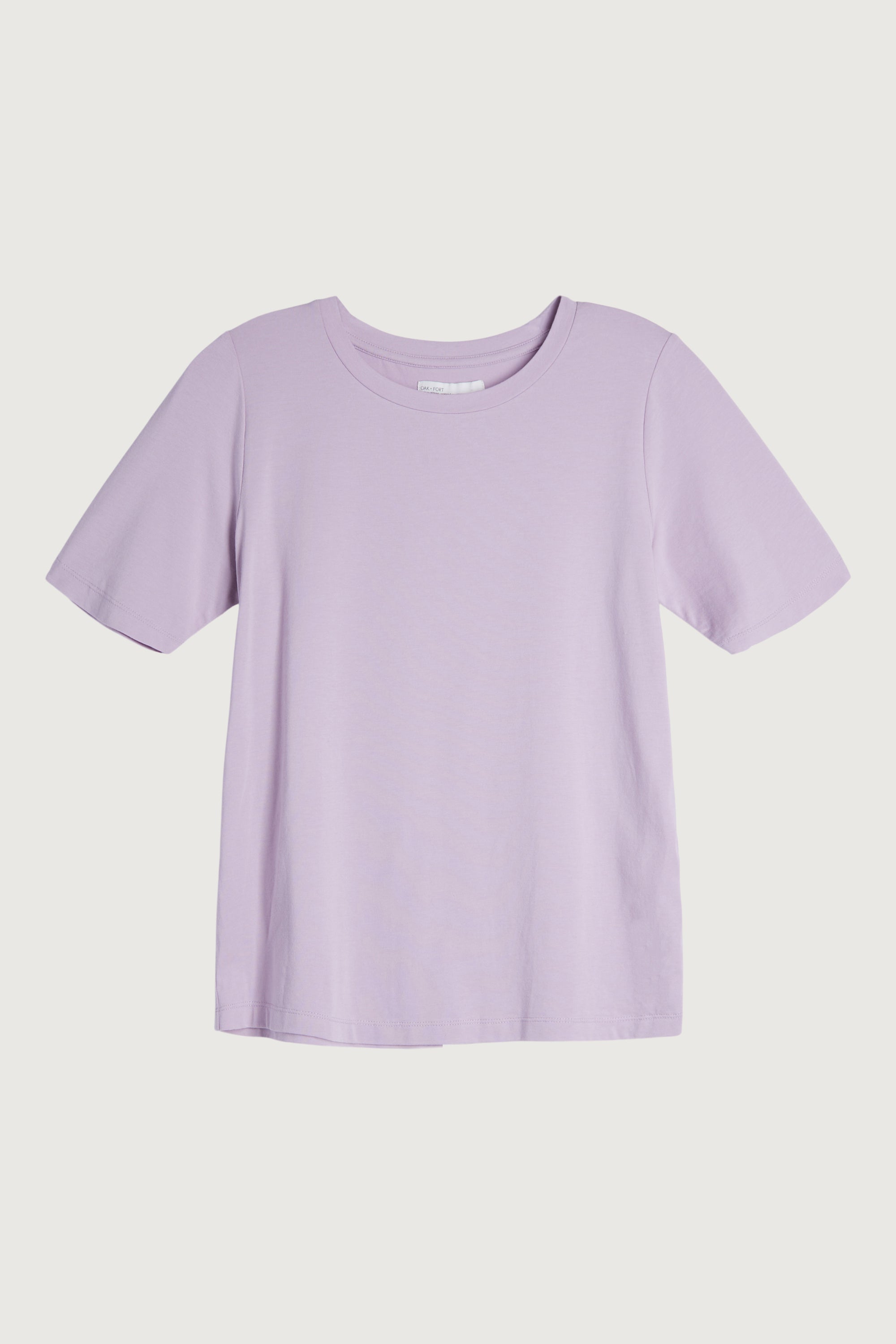 Our tried and true, best-selling crewneck t-shirt is made with cotton modal jersey in a classic fit. It's breathable, lightweight and soft to touch for a comfortable all day wear. A wardrobe staple to wear in any season, style yours tucked into pleated pants.