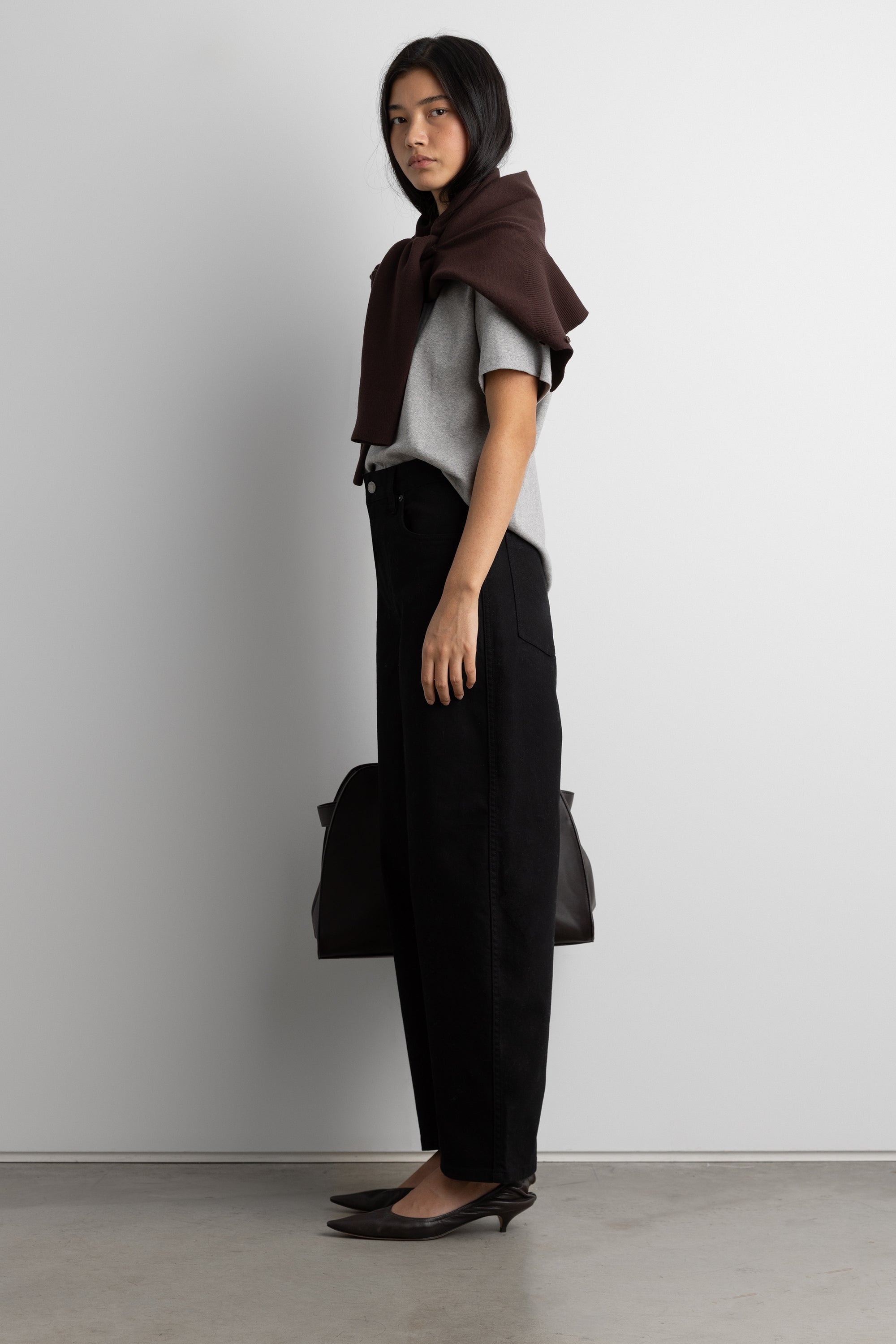CROPPED LENGTH TWILL BARREL LEG PANT