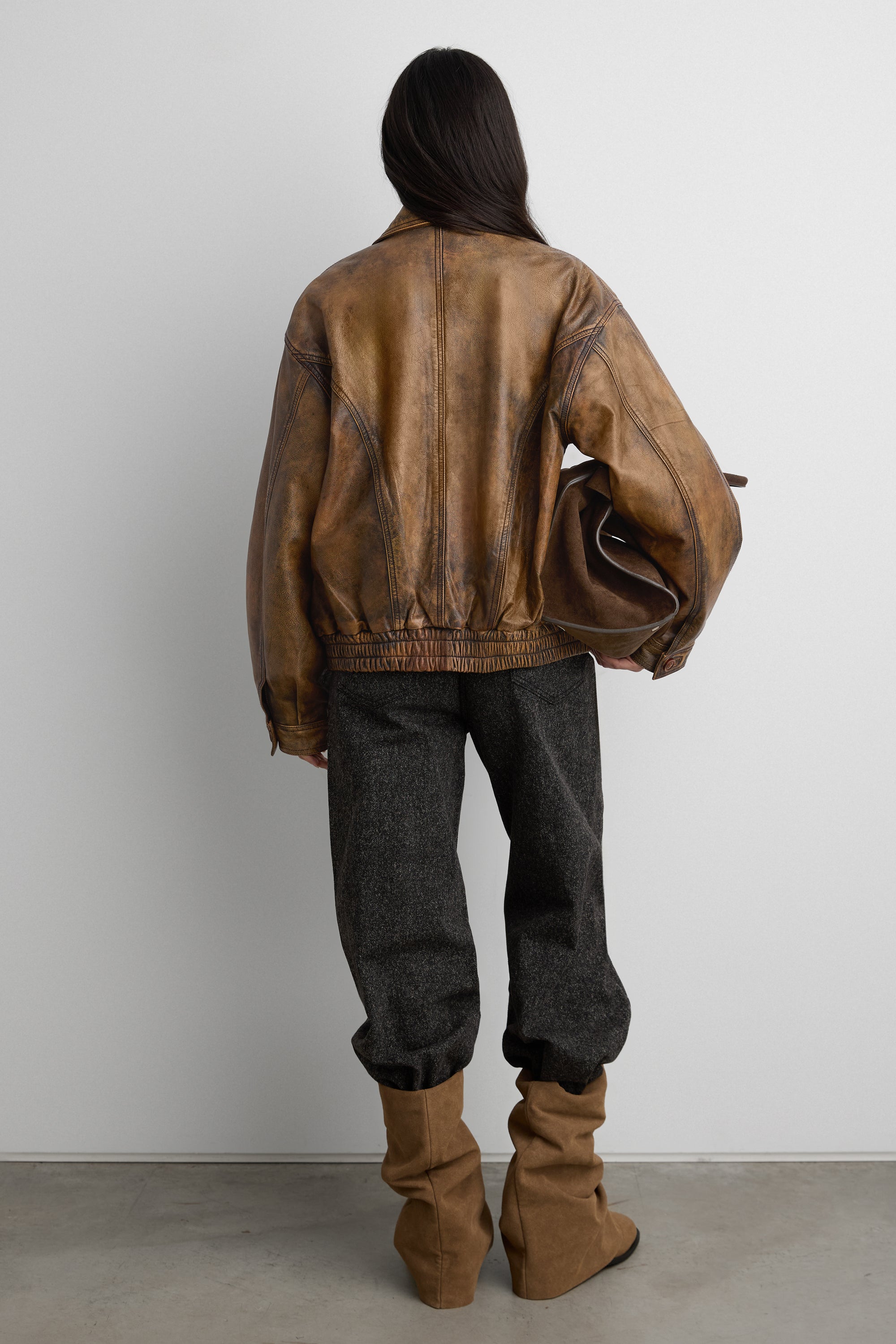 GENUINE LEATHER BROWN DISTRESSED BOMBER JACKET