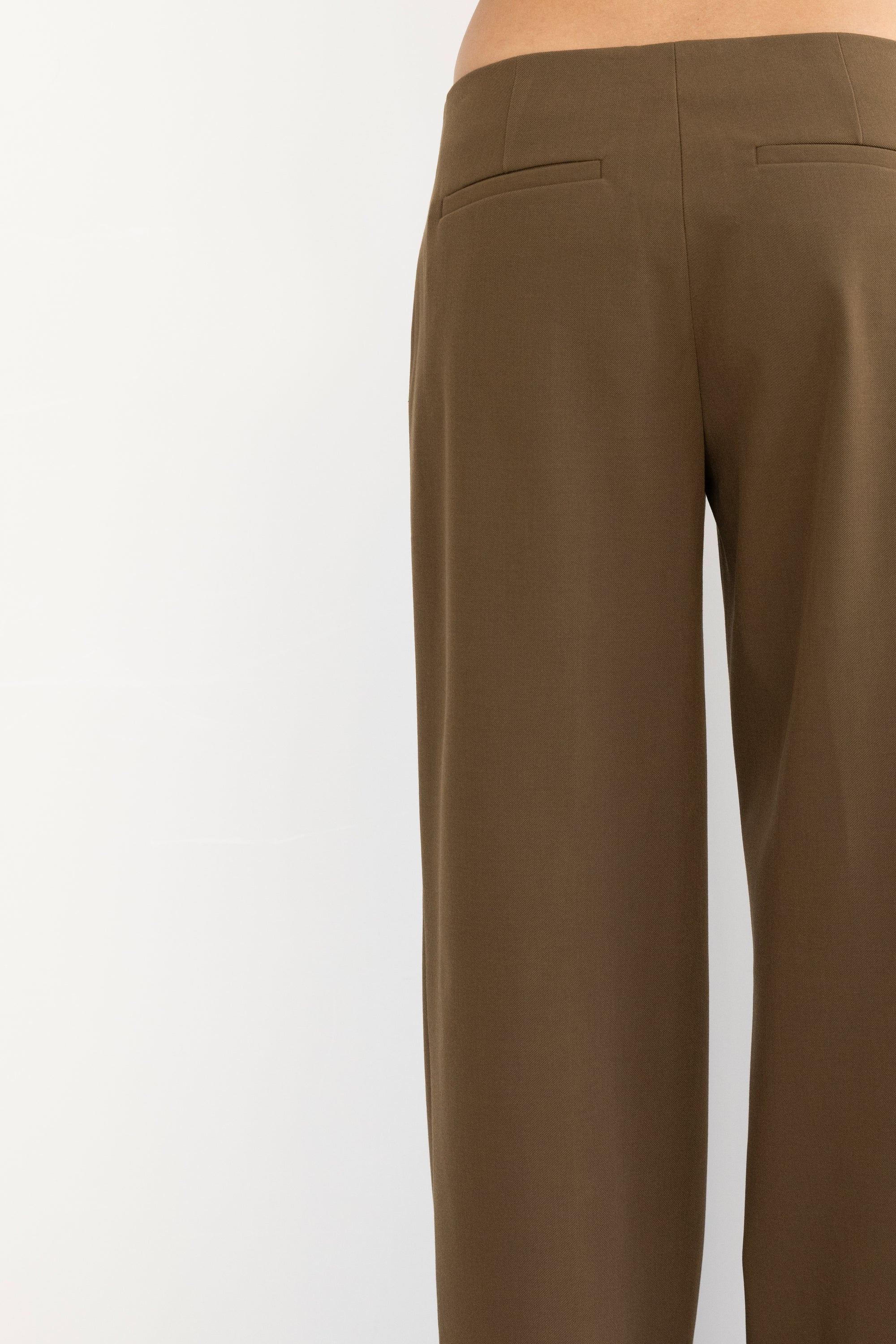 Inspired by 90s office wear, these low rise dress pants are made to be fitted around the waist and has a subtle flare down the leg. A new staple to add to your weekly rotation, wear yours with basic tops or with a matching blazer.