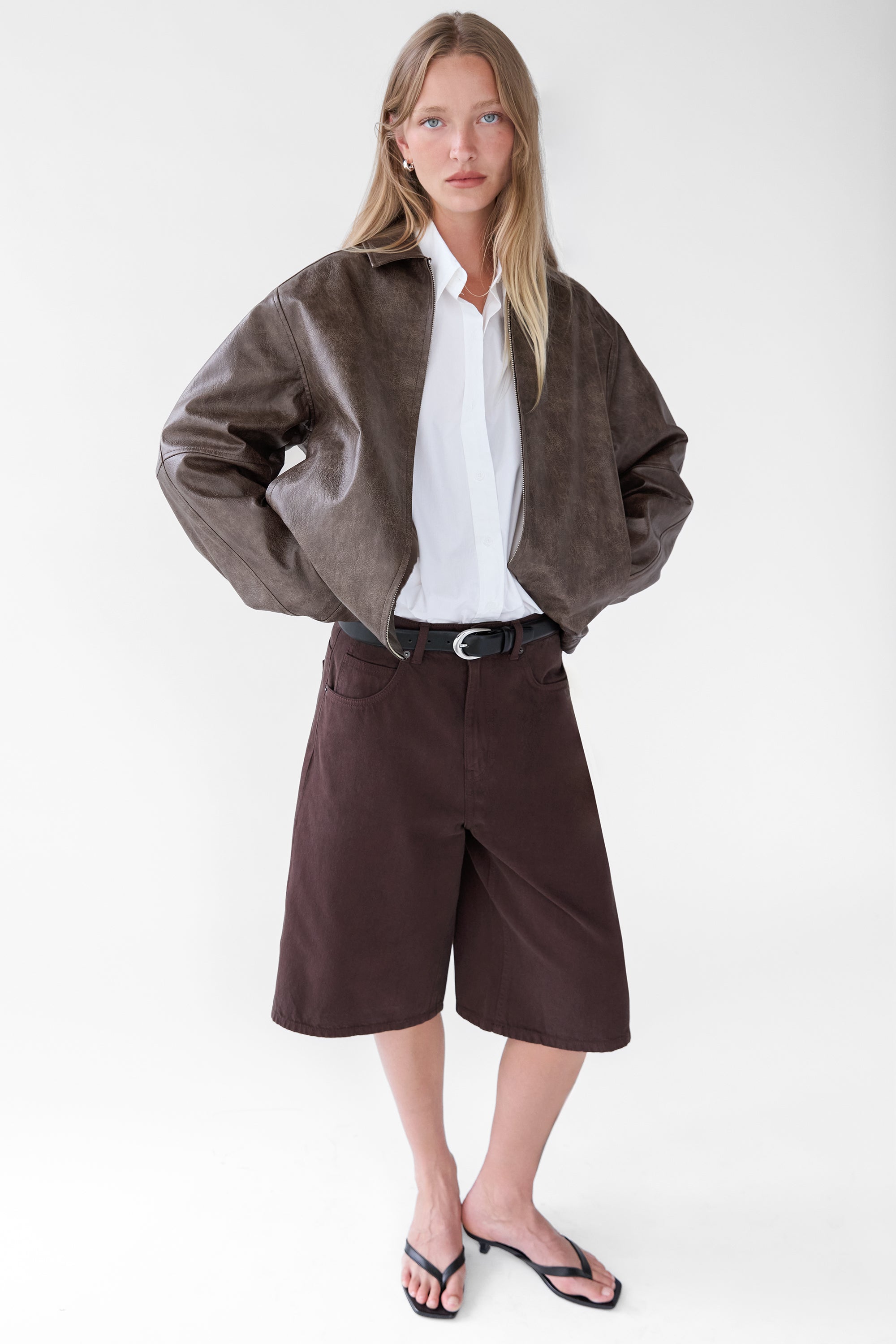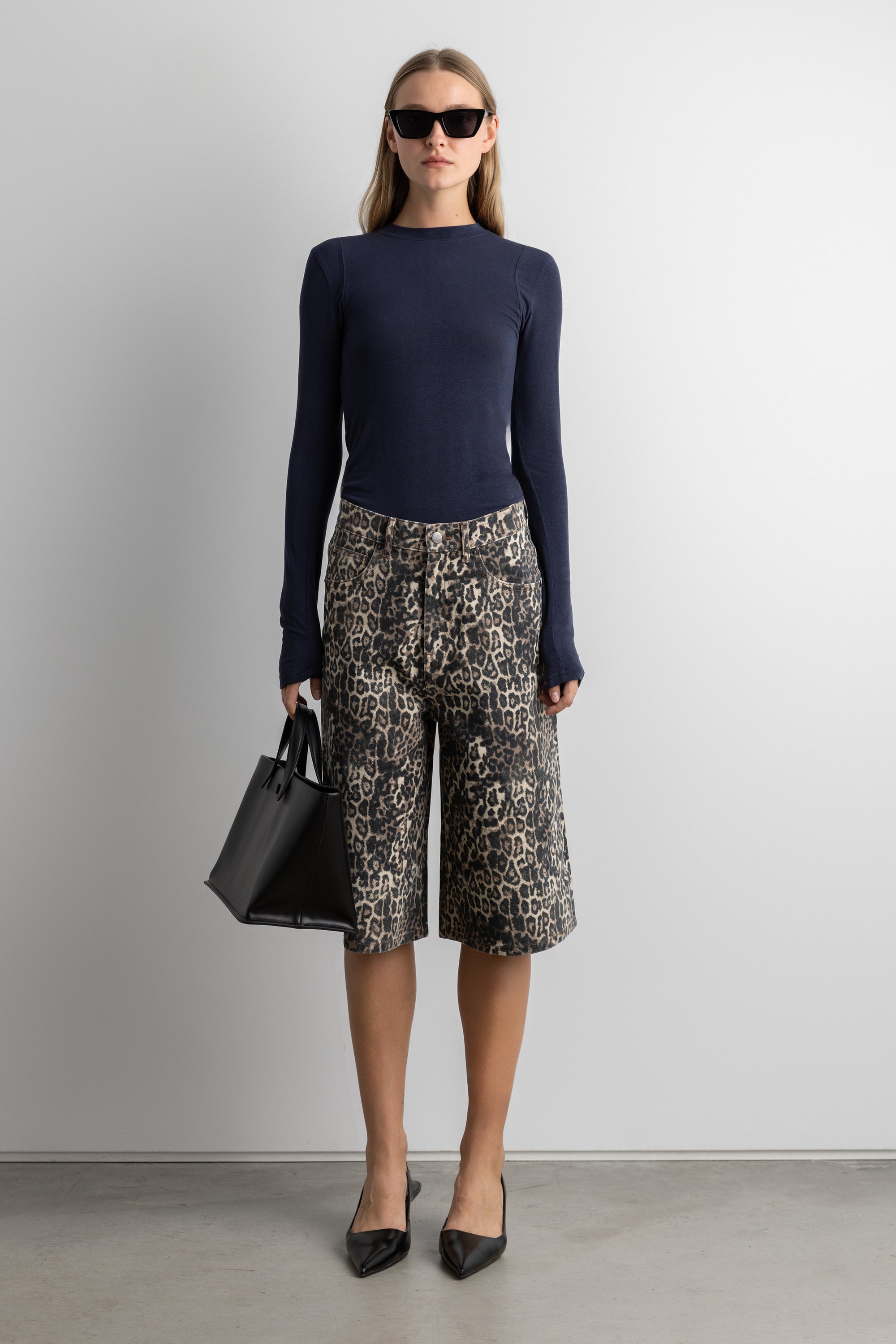 These twill denim shorts are made in a solid cream and leopard print option. It's made in a relaxed fit with a mid-rise waist, 5-pocket design and a belt loop. Wear yours with a racer back tank and mesh flats.