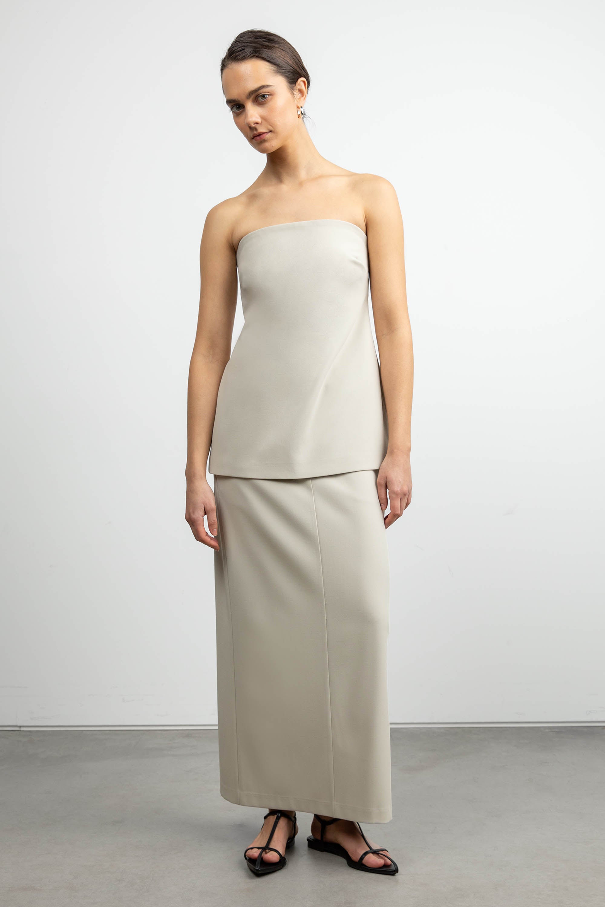 Maxi suiting skirt in pelican — main imageMAXI SUITING SKIRT in Pelican — alternate angle