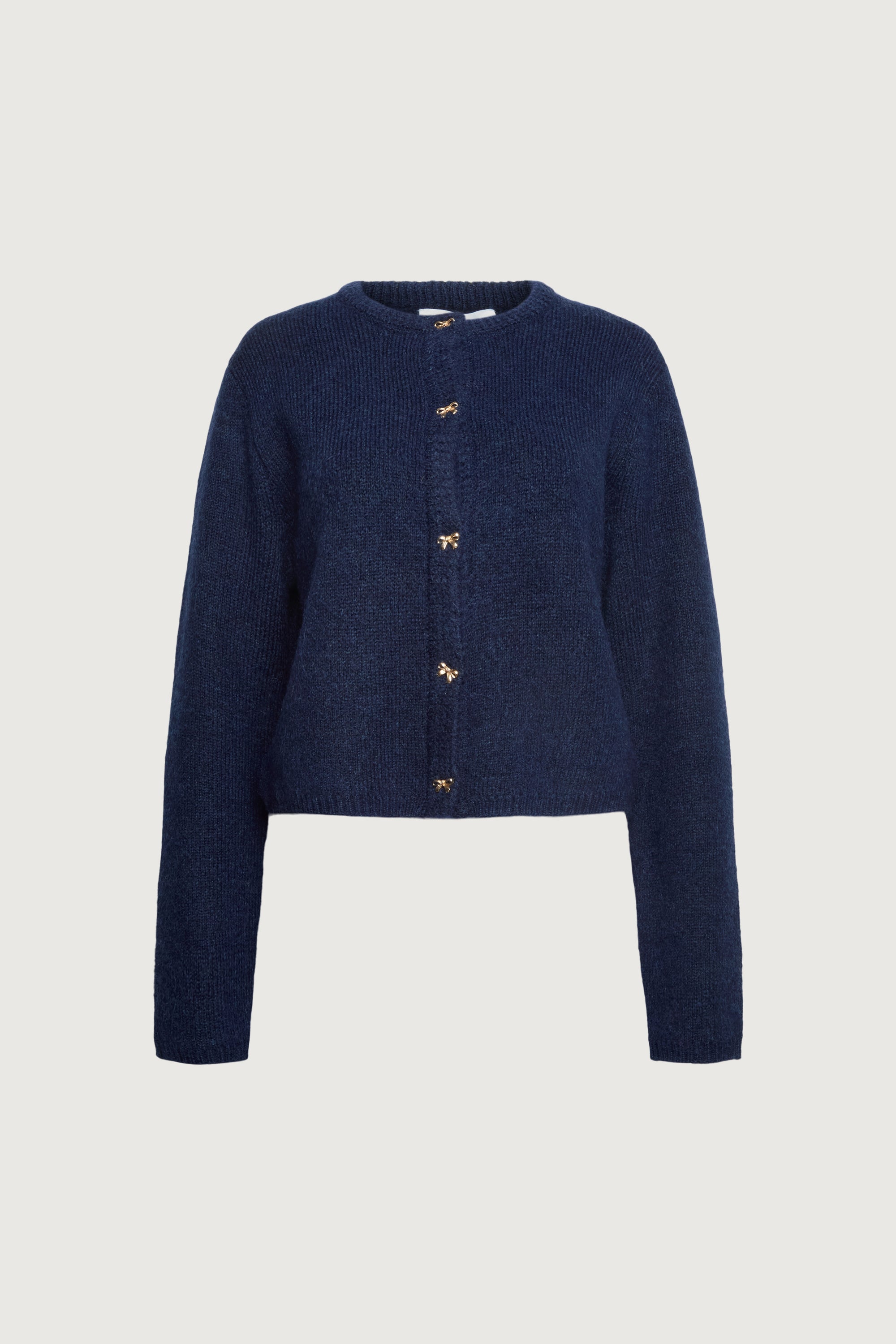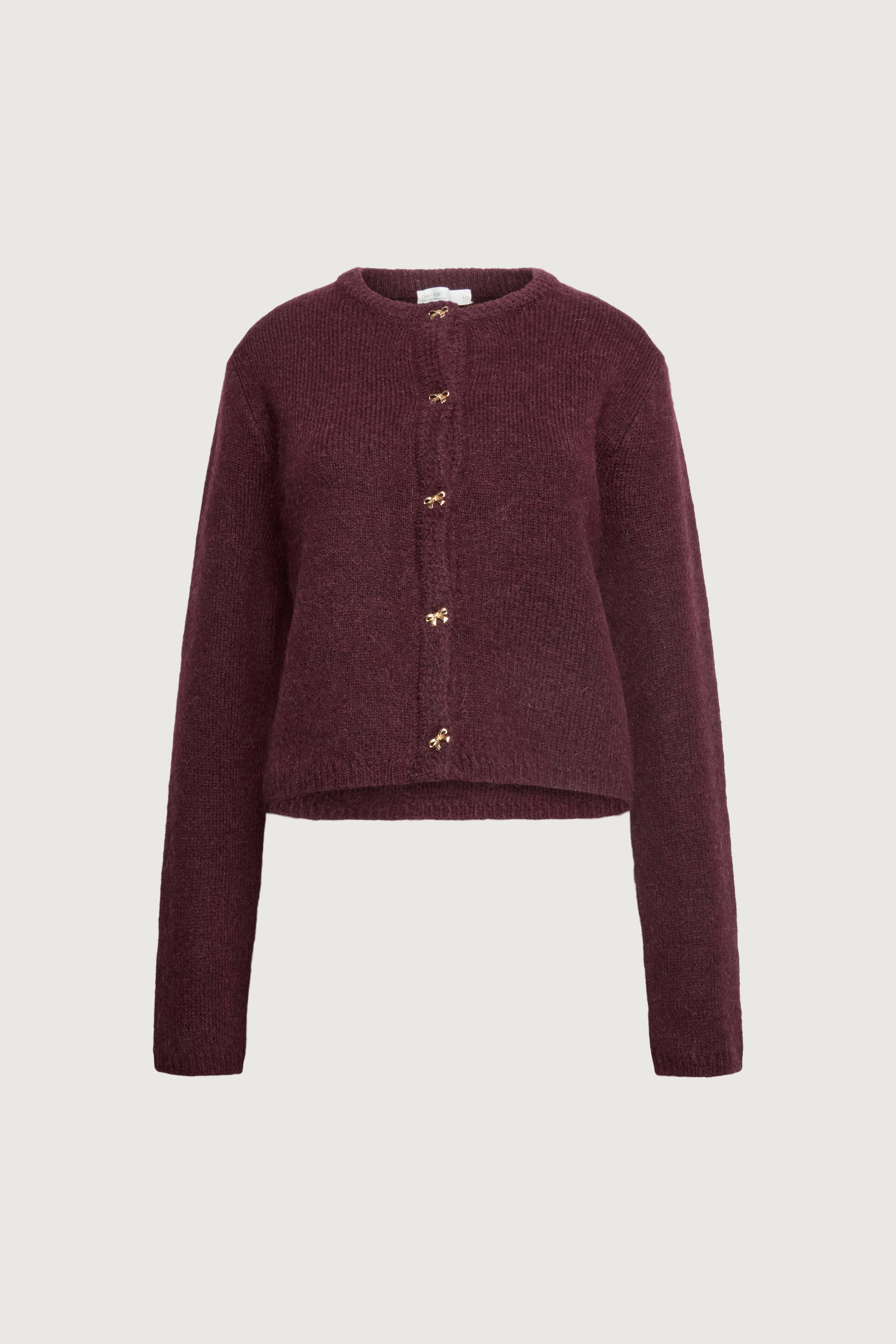 BOW BUTTON FRONT WOOL-BLEND CARDIGAN