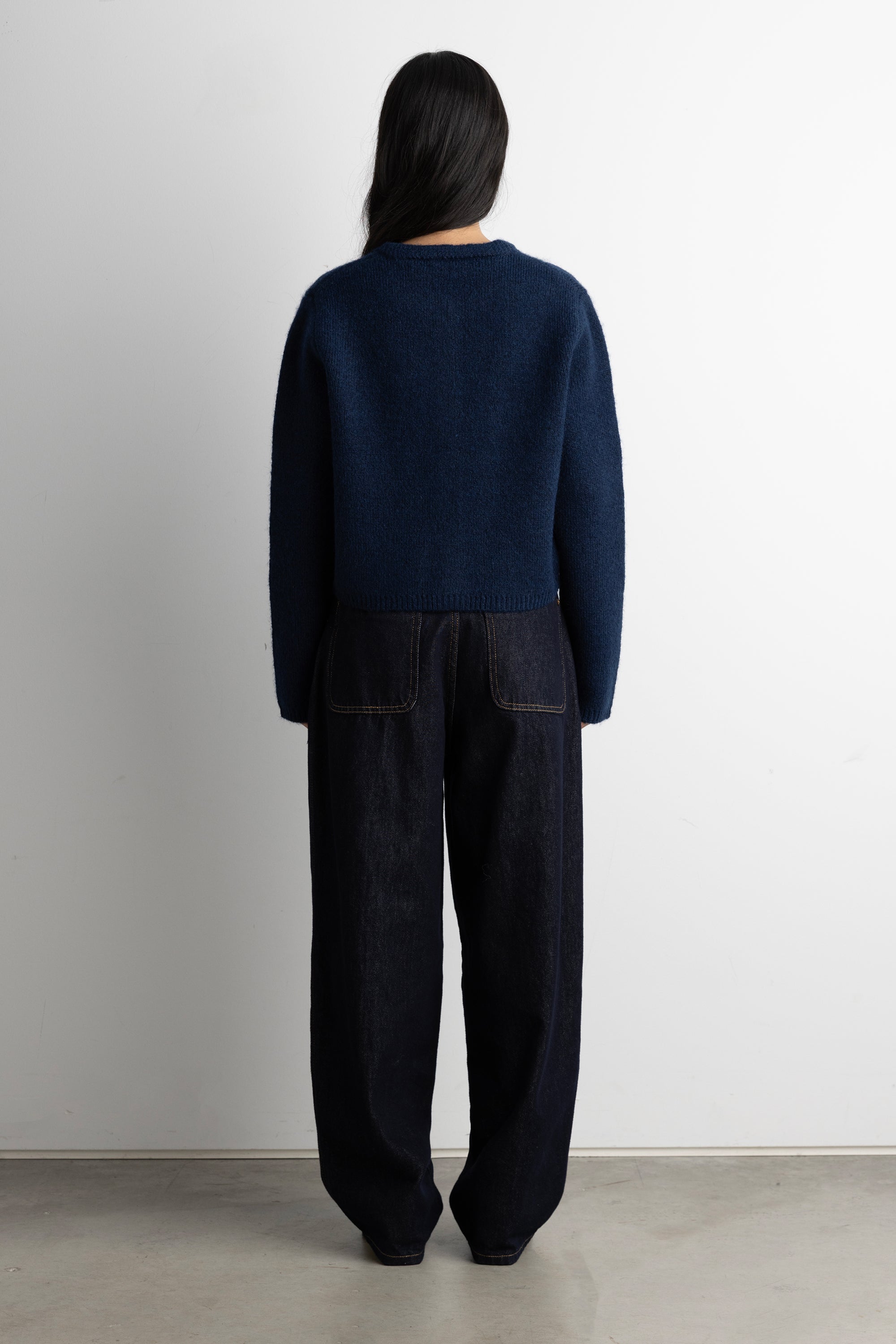 Wool-alpaca blend. Crew neckline. Bow-shape buttons. Ribbed trims.
