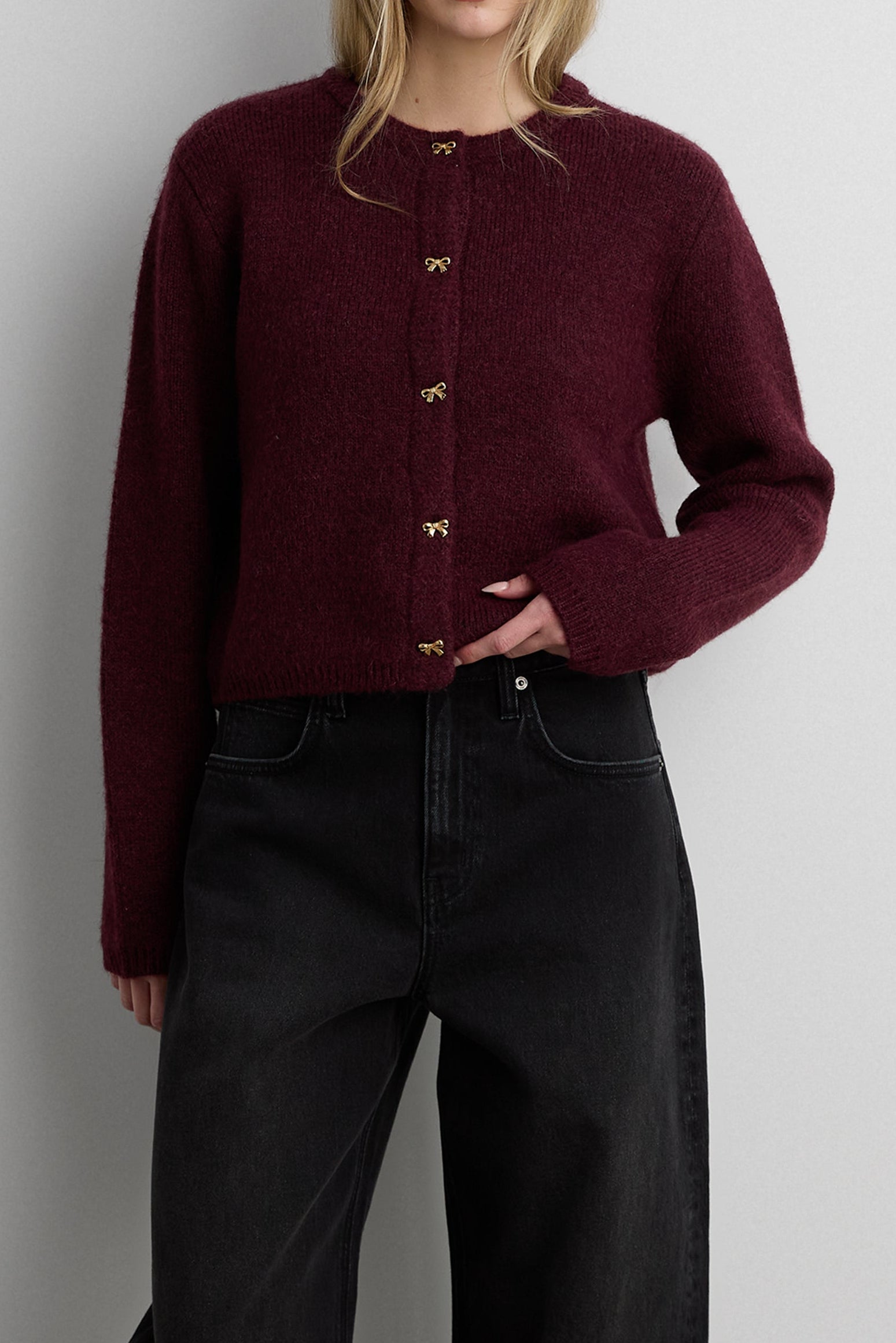 This button front cardigan is made from a wool-alpaca blend in a relaxed fit and is detailed with bow-shaped buttons. It is incredibly soft and will keep you warm this season. Pair yours with jeans and boots.