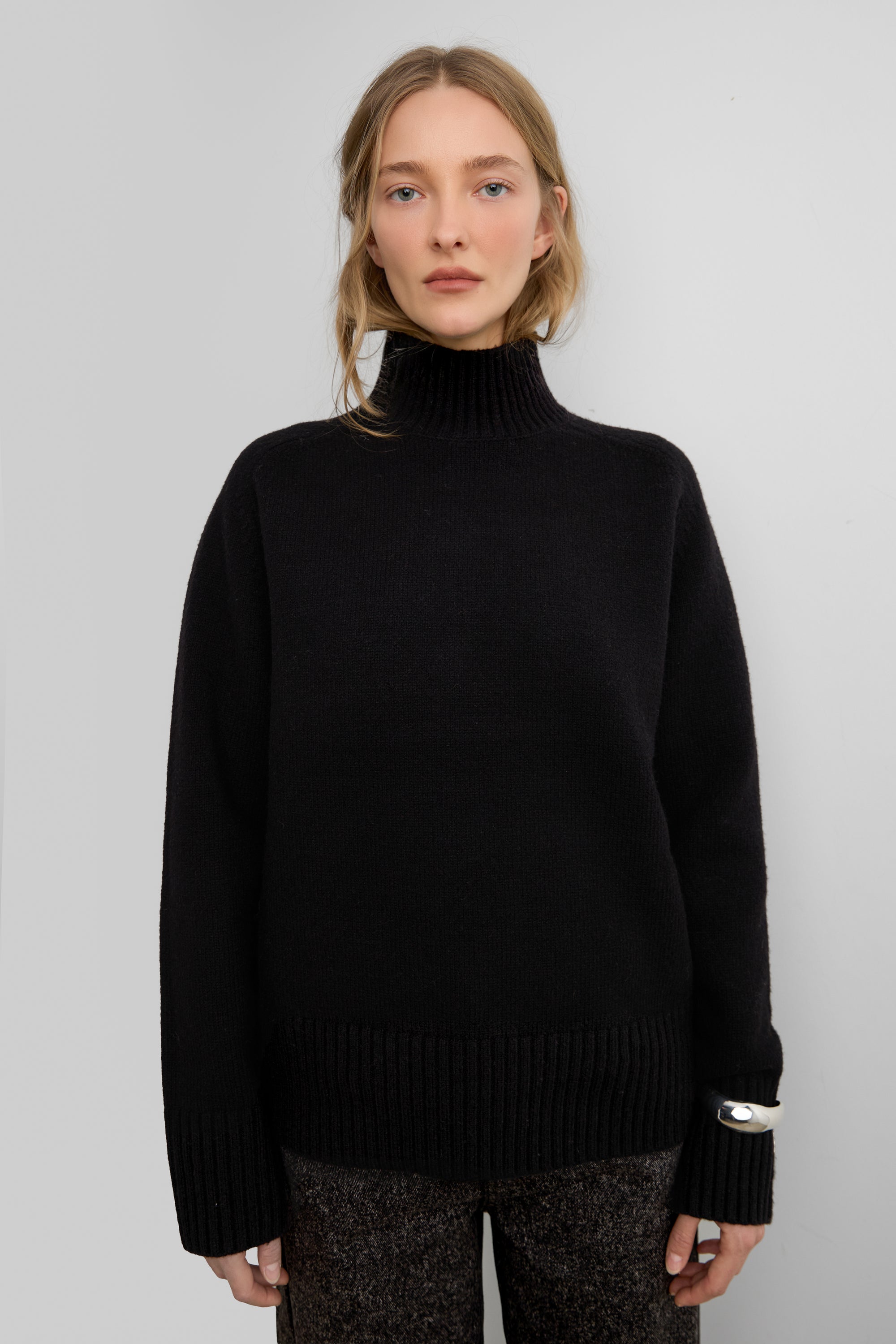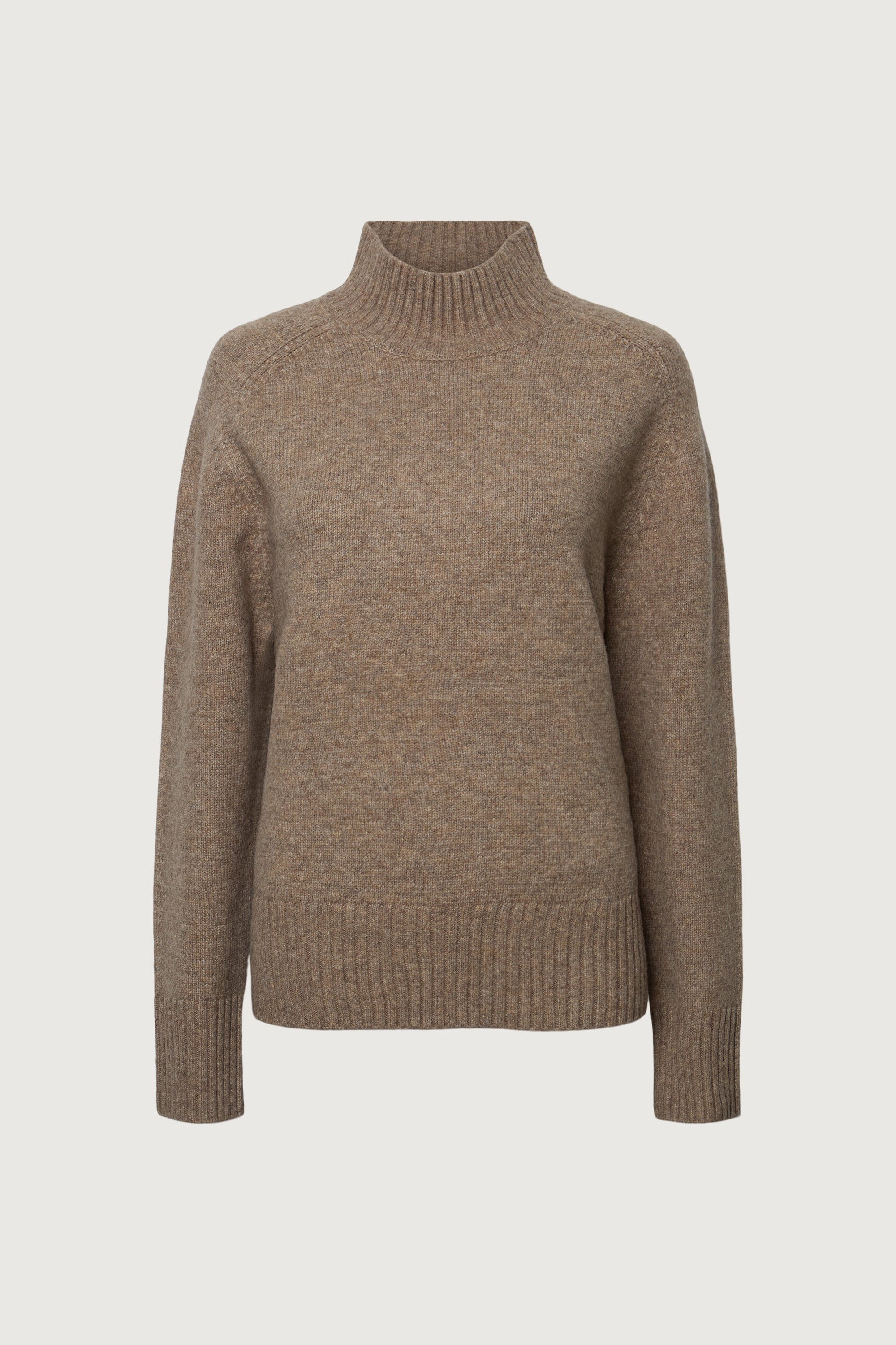 Soft brushed knit with hints of wool. Turtleneck design.