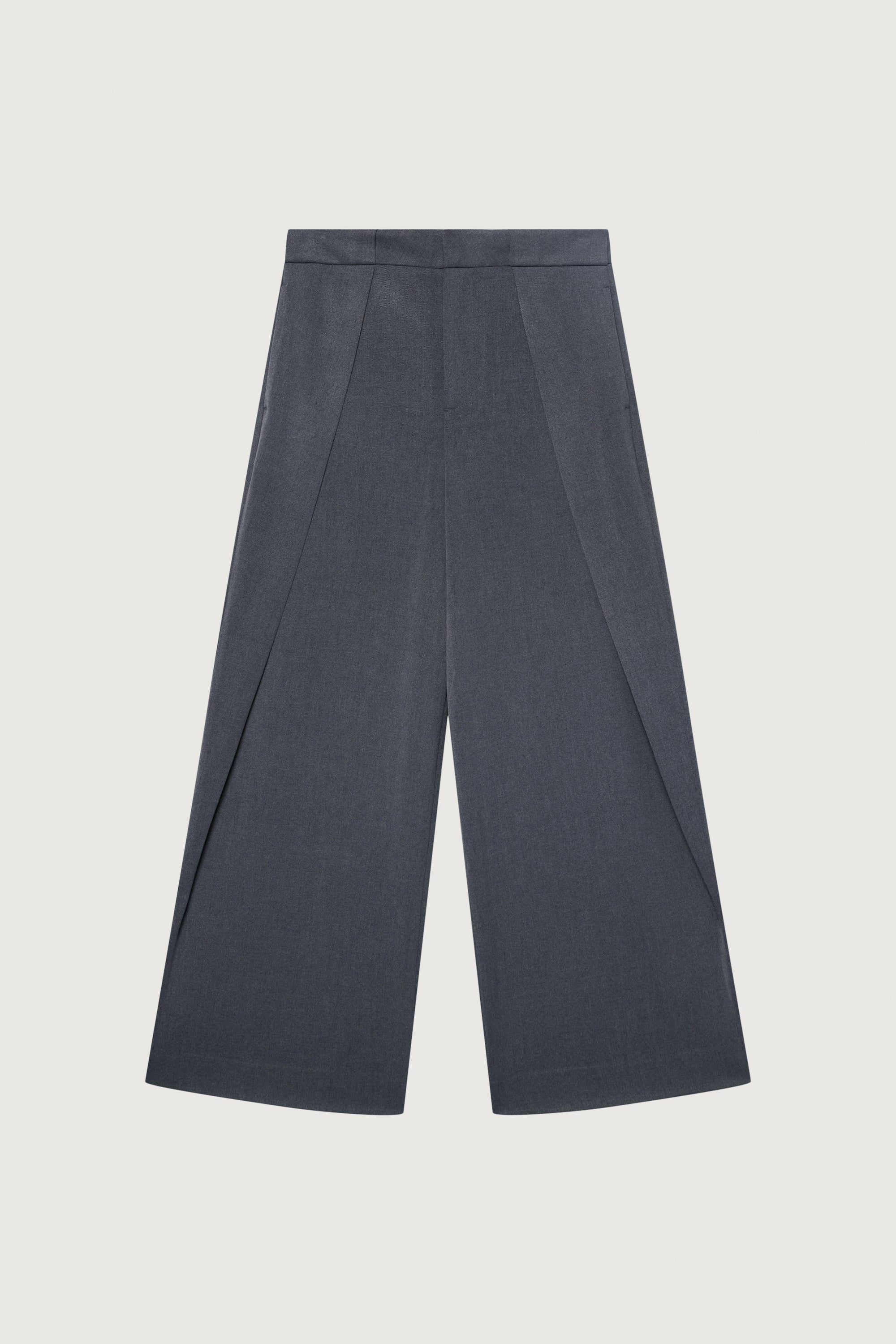Smooth suiting fabric. Belt loop. Front folded pleat. High-rise waist. Side pockets. Back welt pocket design. Full zipper and hook and bar closure.