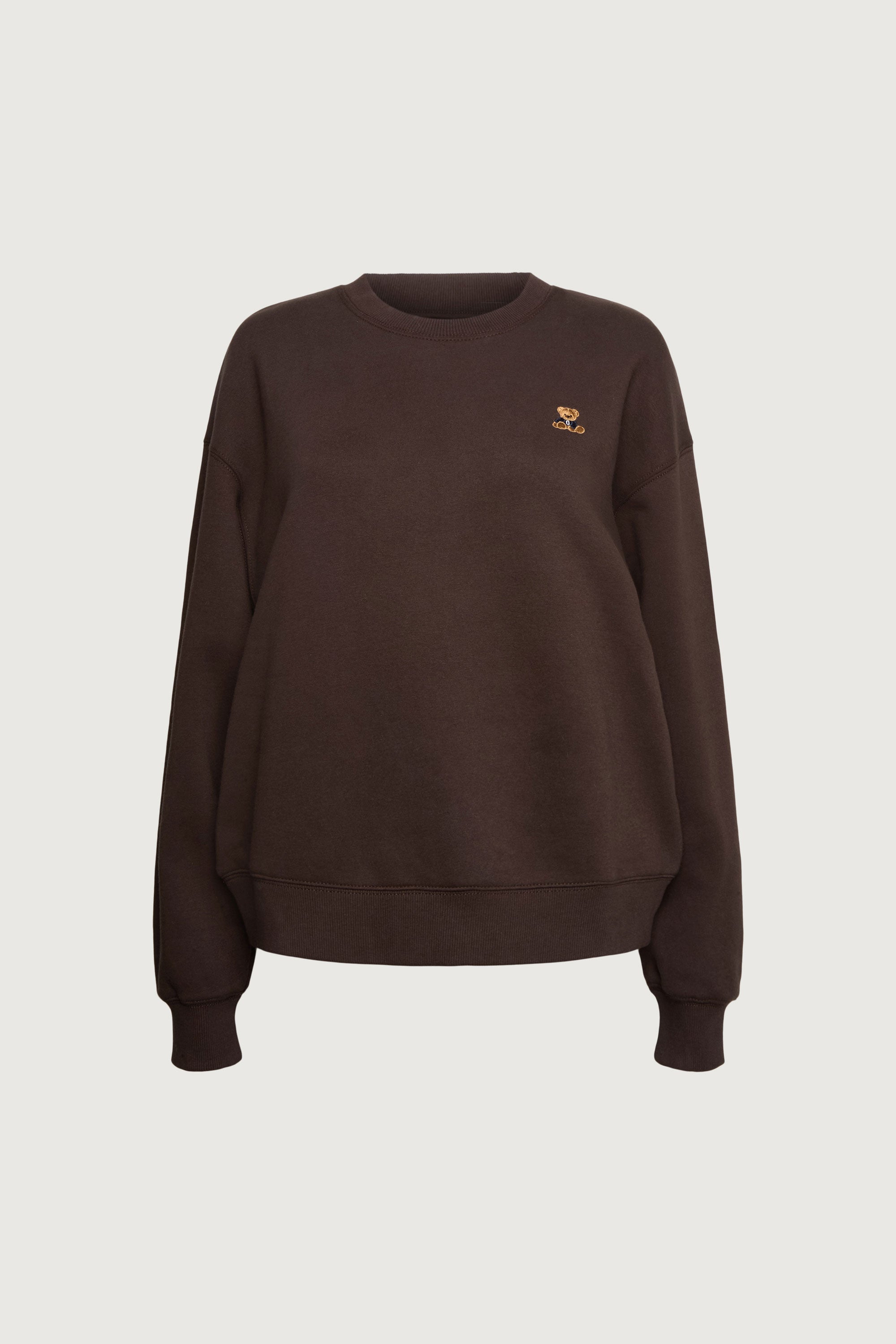 This sweatshirt is cut from a soft fleece in an oversized fit. It's detailed with a ribbed neckline, hem and cuffs and has an embroidered bear and bow. Pair yours with matching sweatpants and a trench coat for the new season.