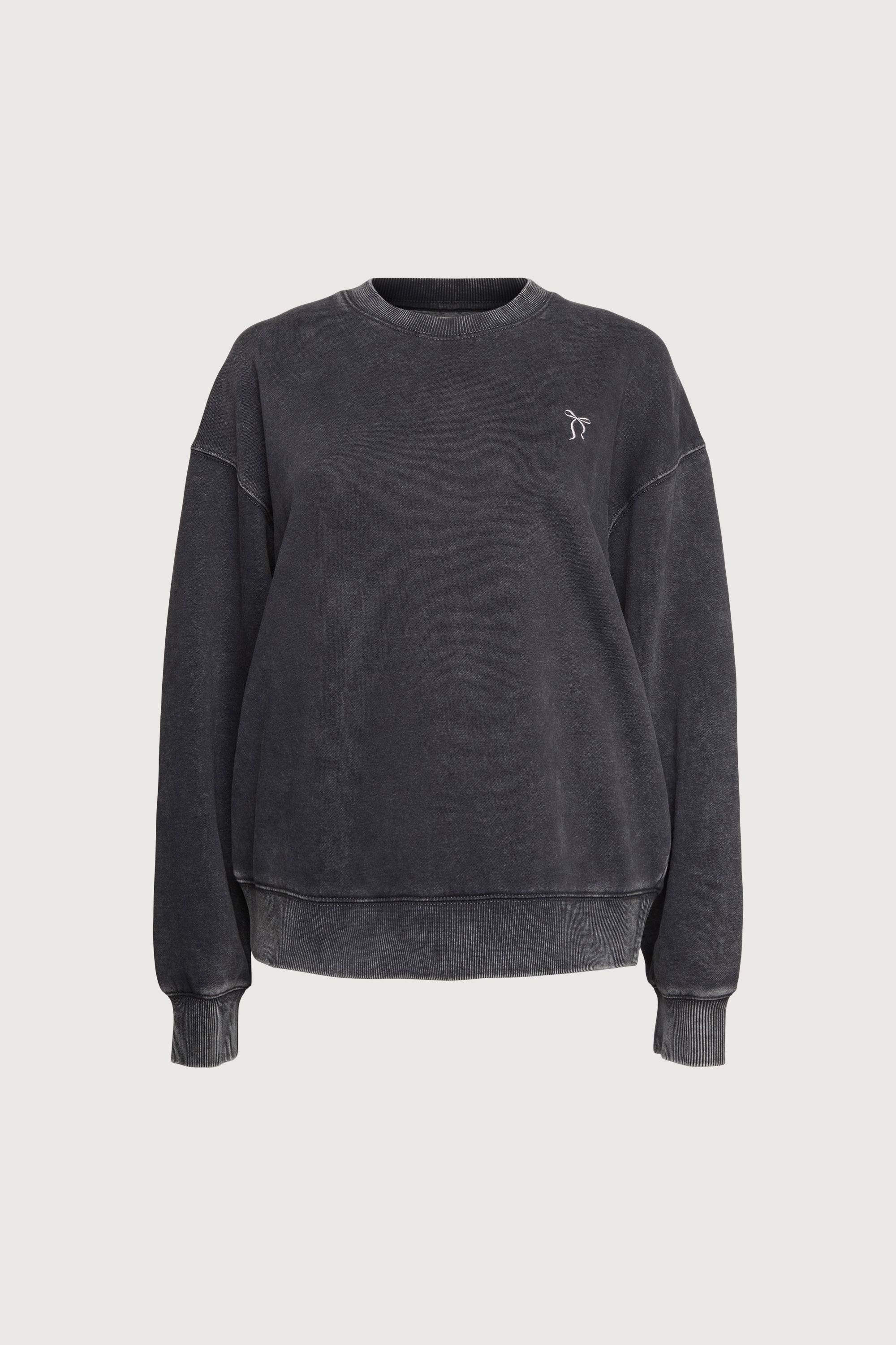 330 GSM. Ribbed neckline, hem and cuff. Embroidered detail. Dropped shoulders.