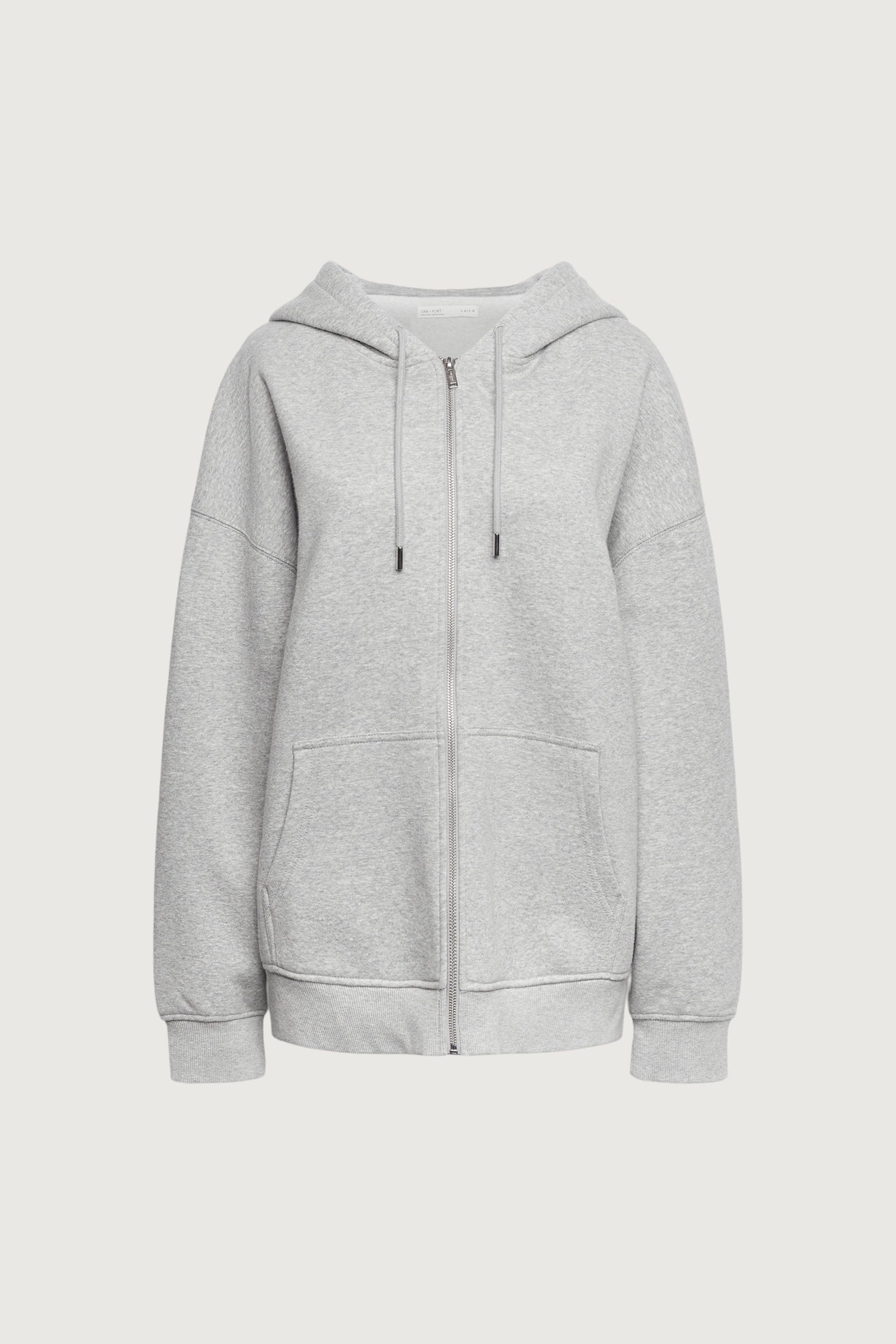This soft fleece-lined zip-up hoodie is the ultimate essential to own for lazy days or running errands. It's made in an oversized fit with a drawstring hood, front pockets and ribbed trims. Wear it as a set with matching sweatpants.