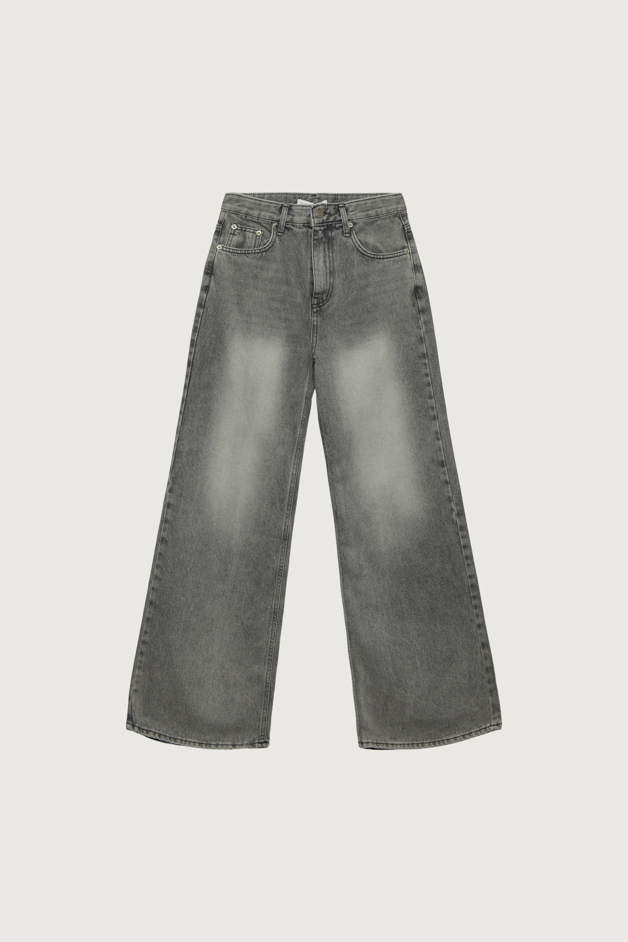 Grey wash. Mid-rise. Belt loop. 5-pocket design.