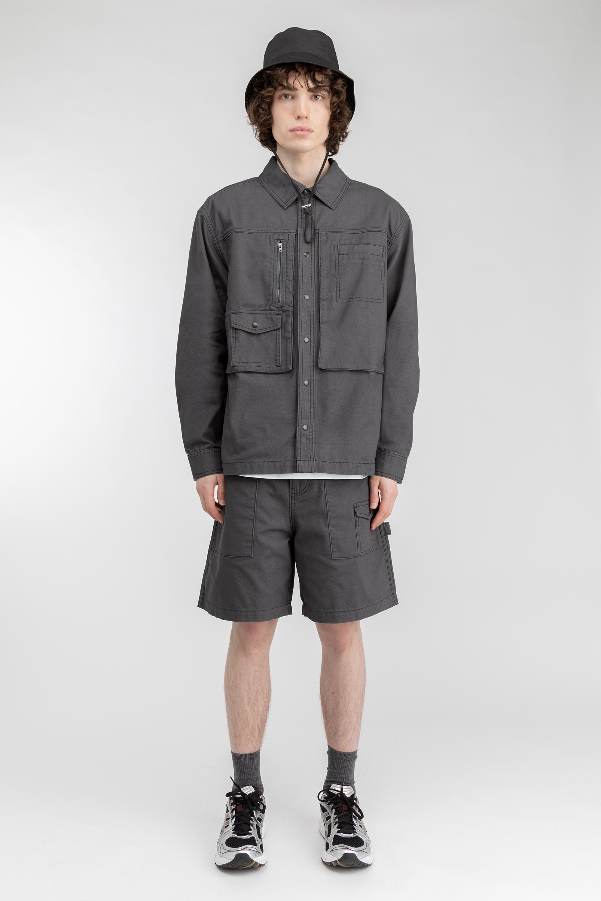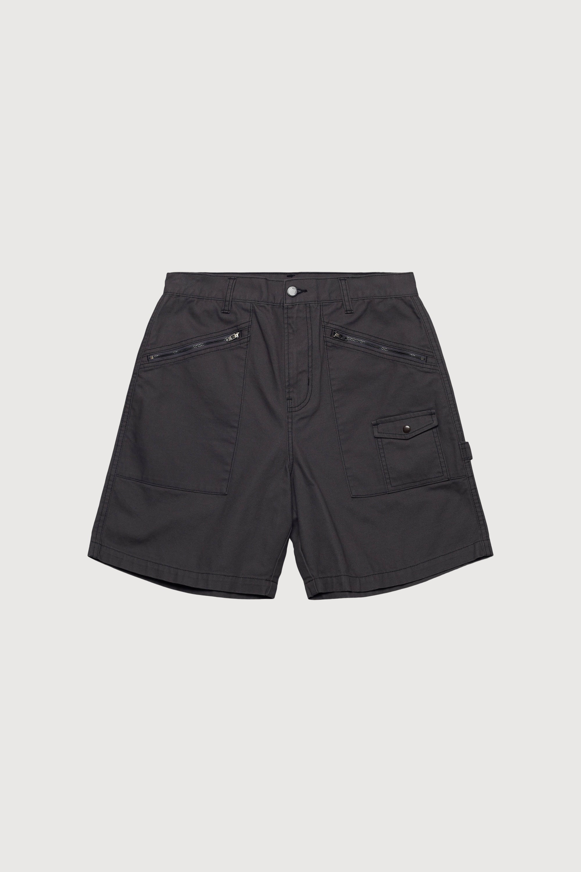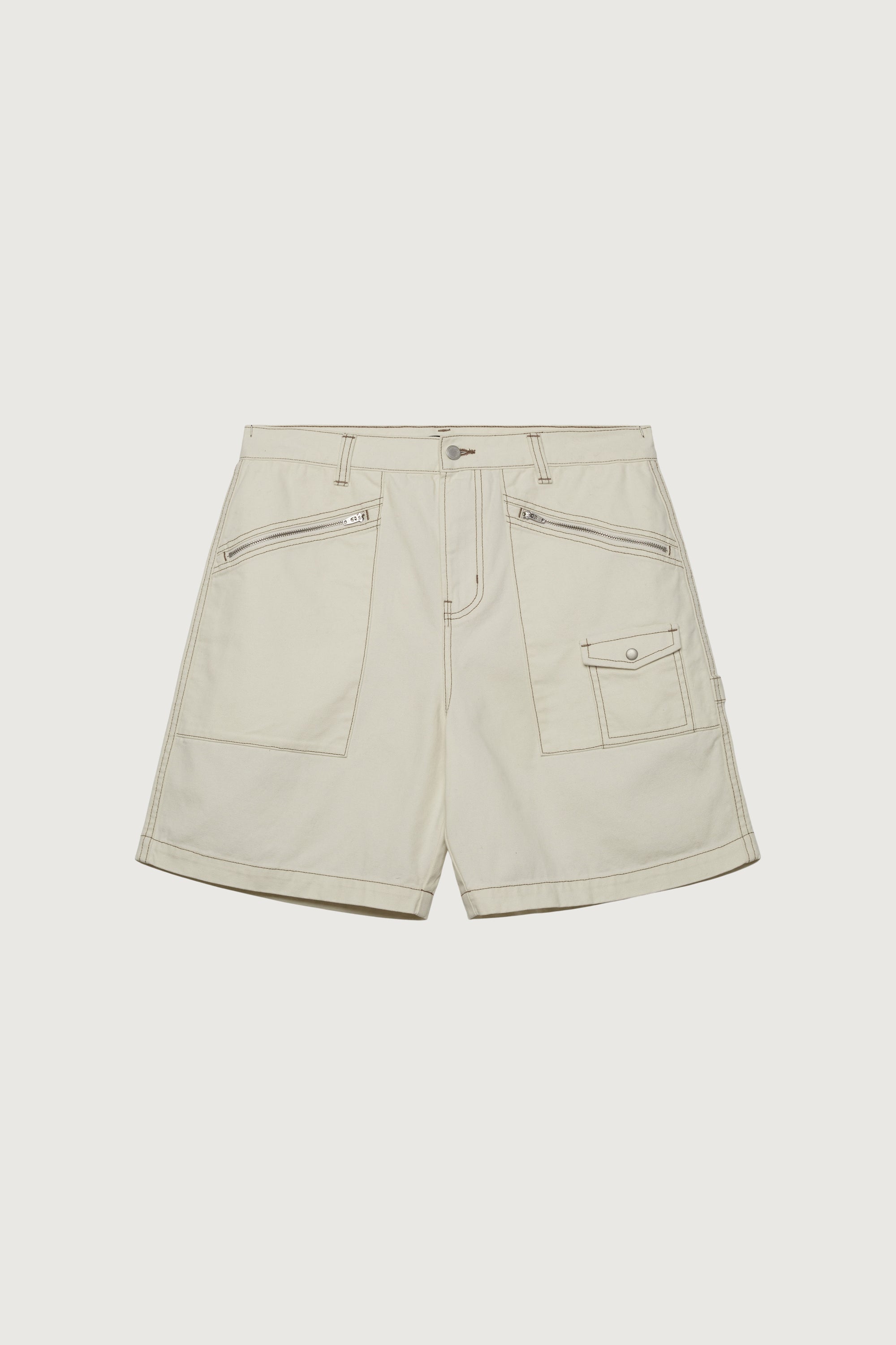Relaxed fit. Cotton twill fabric. Mid-rise waist. Straight leg. Cargo pockets. Hammer loop. Patch back pockets. Belt loop. Diagonal zipper details. 7.75" inseam based on size 32.