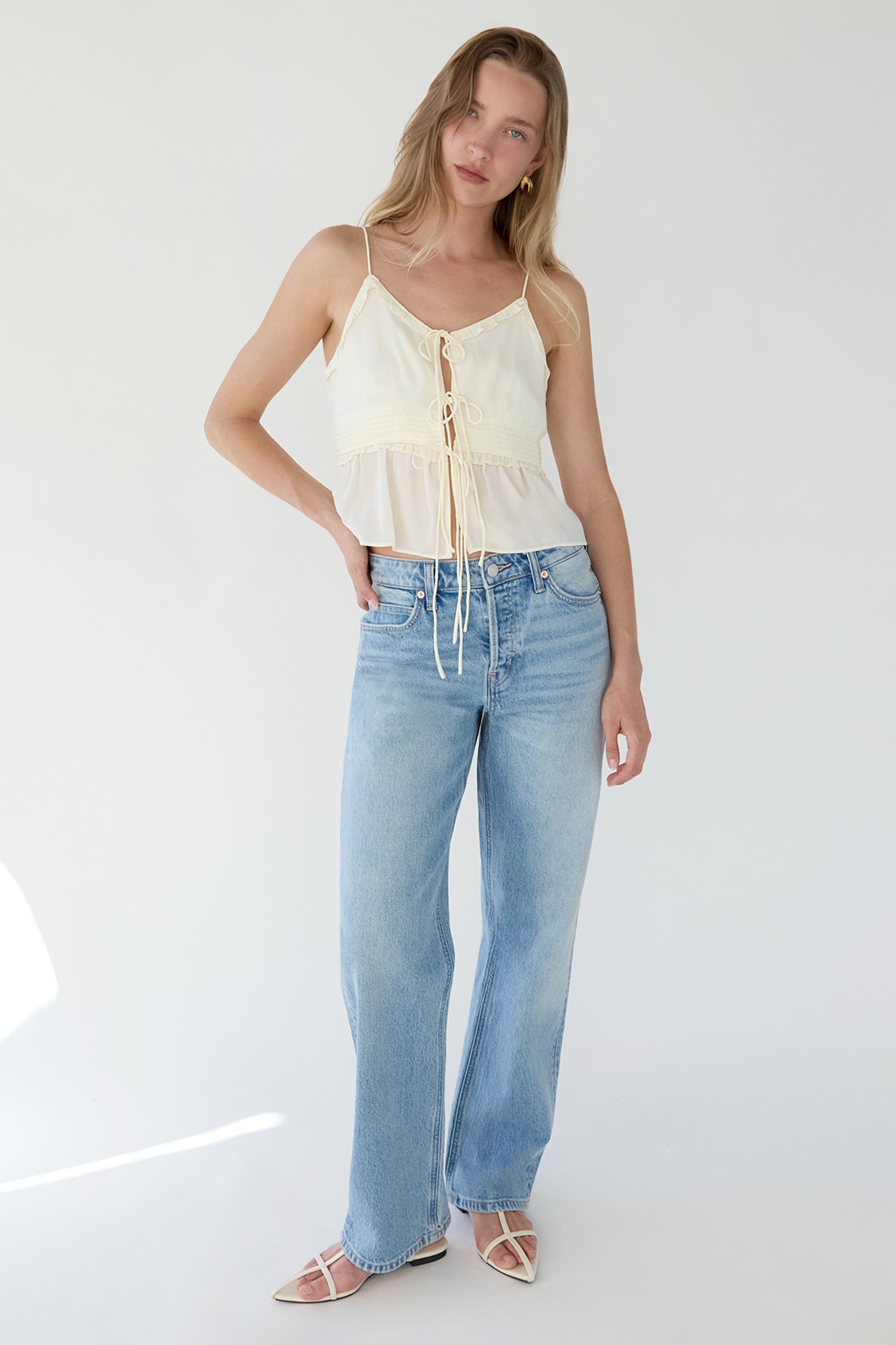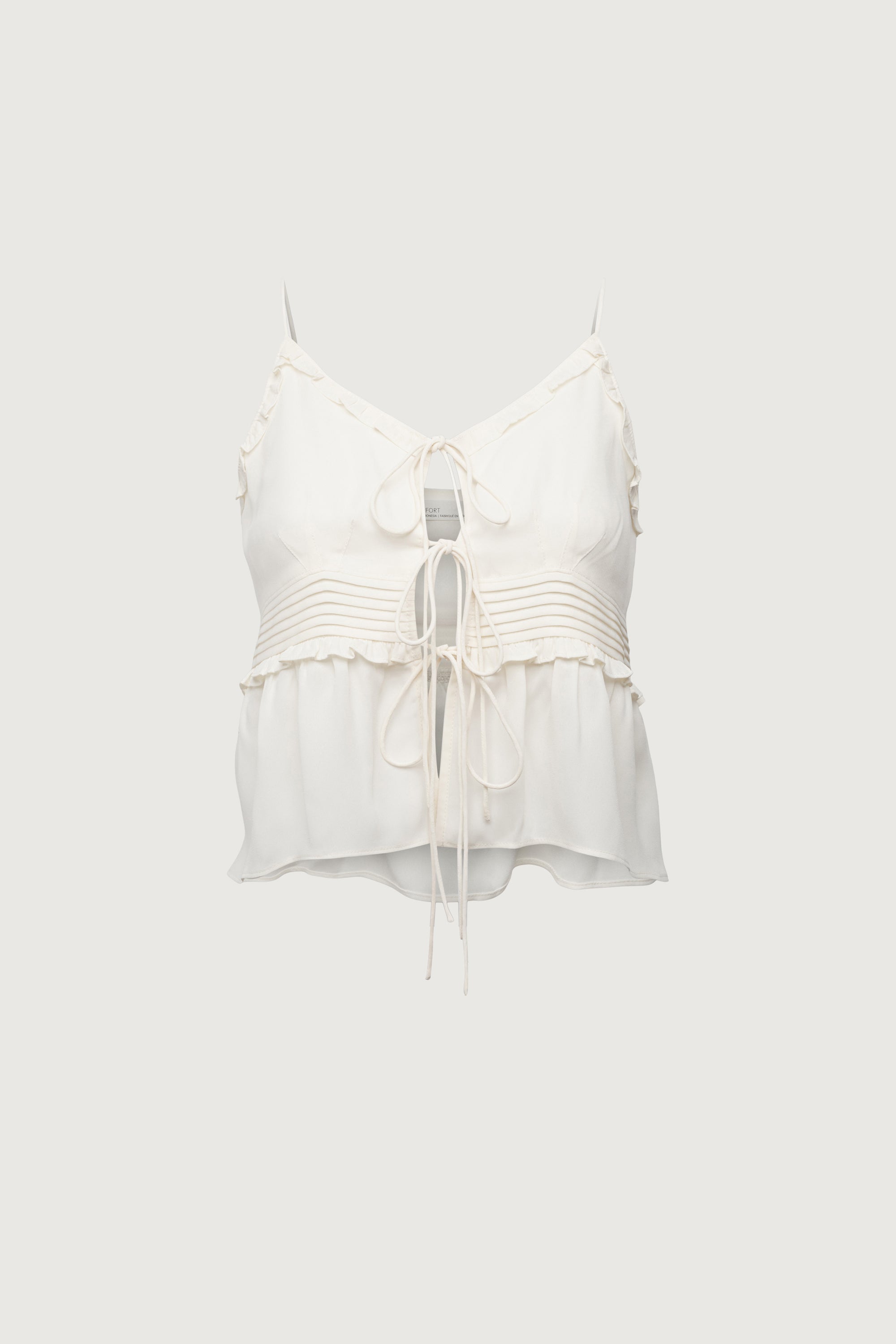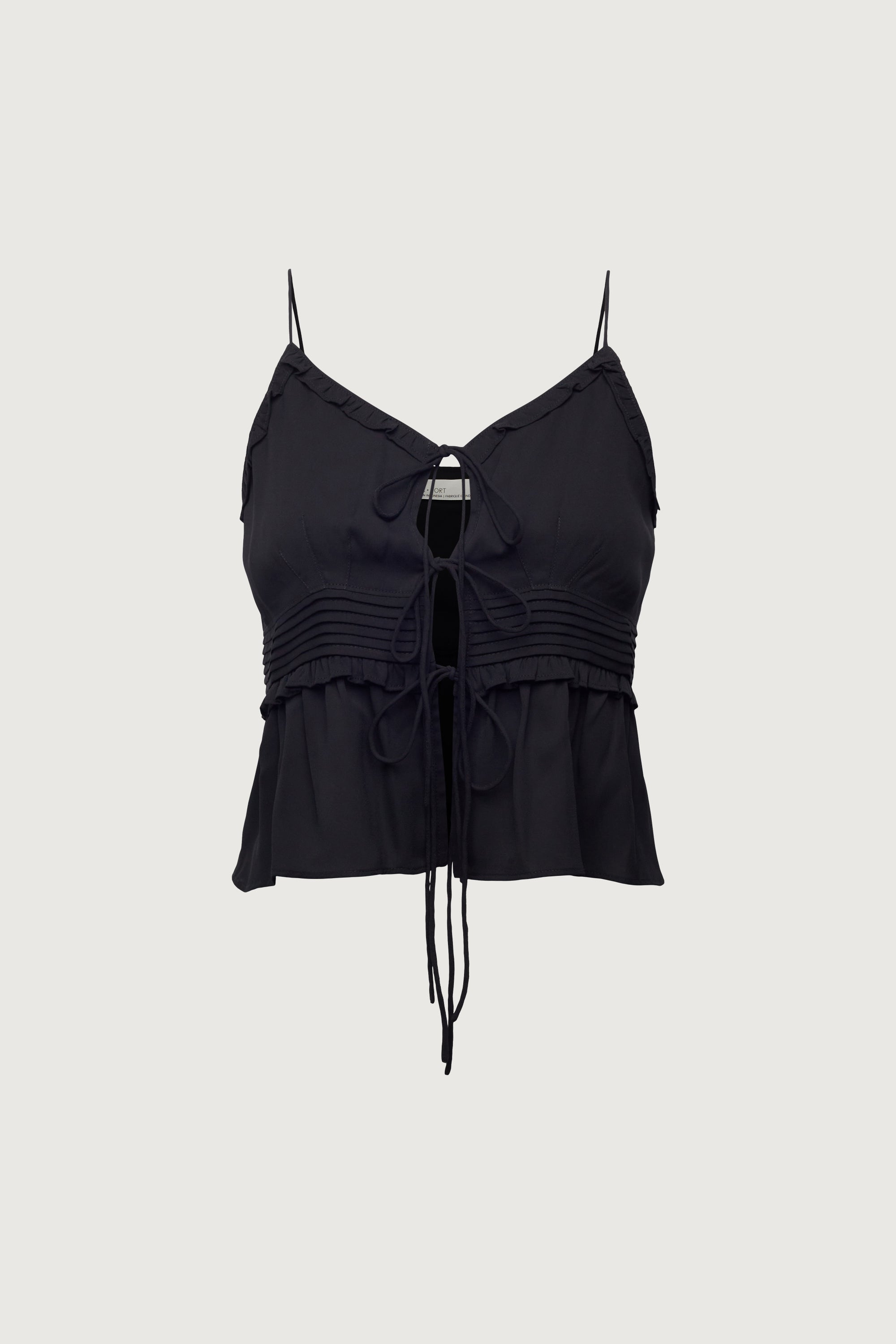 This sheer tie-front tank top is made in a classic fit and is detailed with ruffled trims. A perfect summer top that you can wear from day to night, style it with shorts or with a midi skirt on a night out.