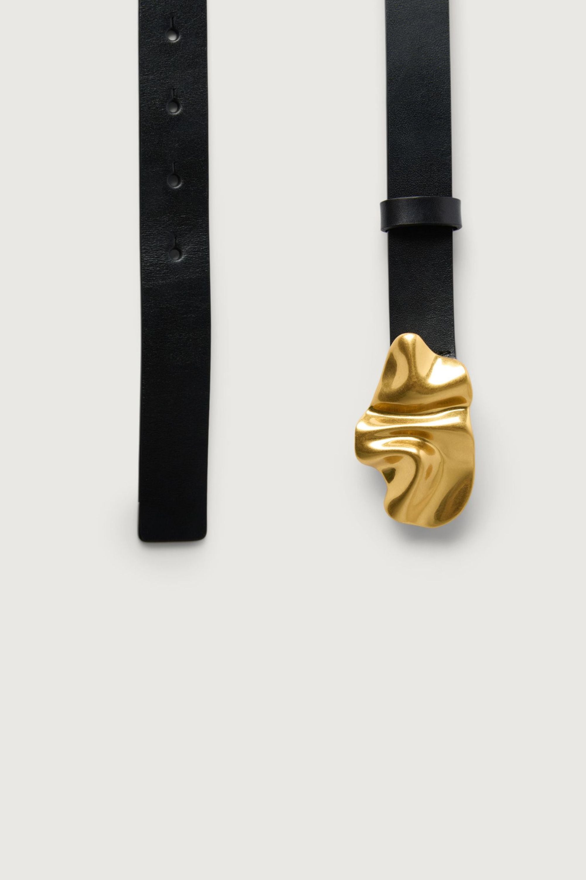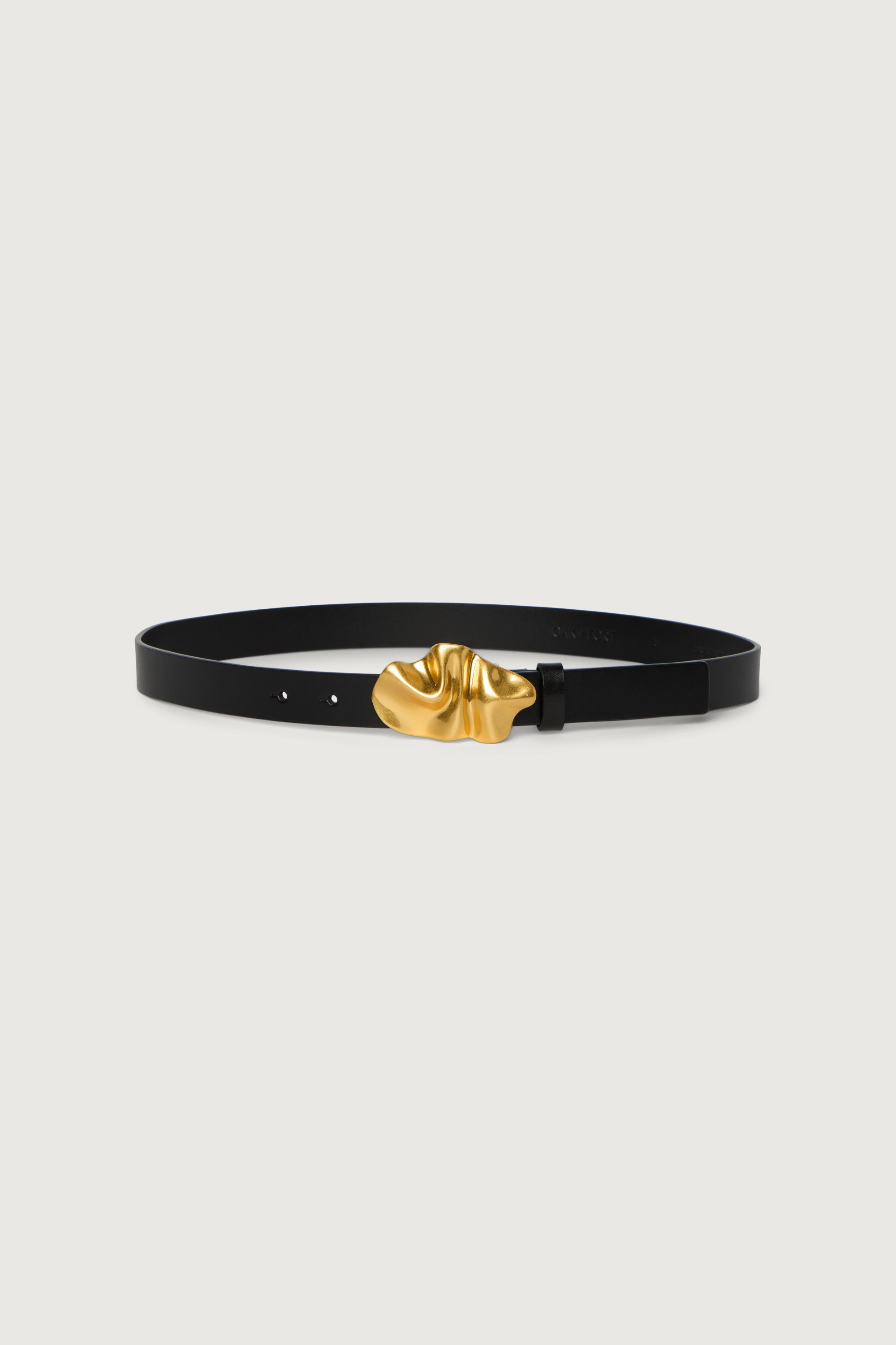 A refined belt, accented with a sculptural gold-tone buckle. Balancing polish and edge, it adds a statement finish to both denim and tailoring.