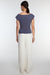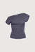 Knit fabric. Cap sleeves. Asymmetrical neckline.