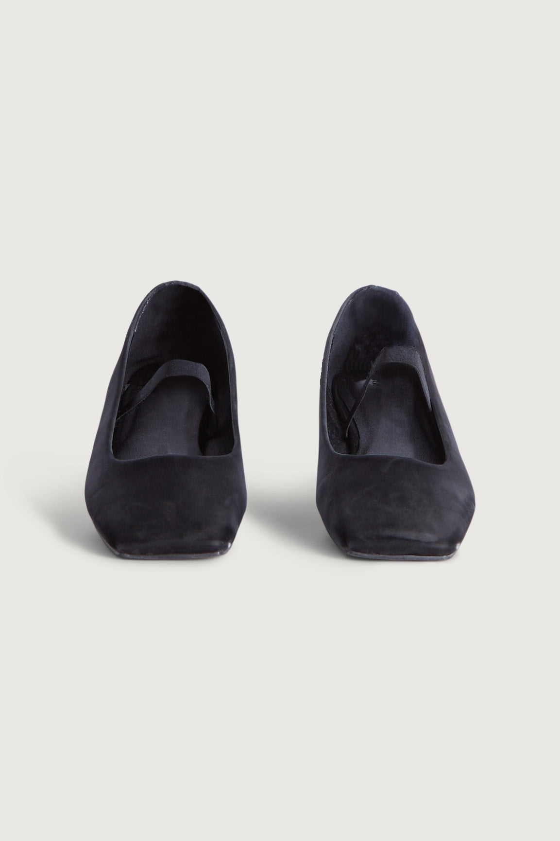 Ballet flat. Foldable elastic strap. Square toe. Rubber sole.