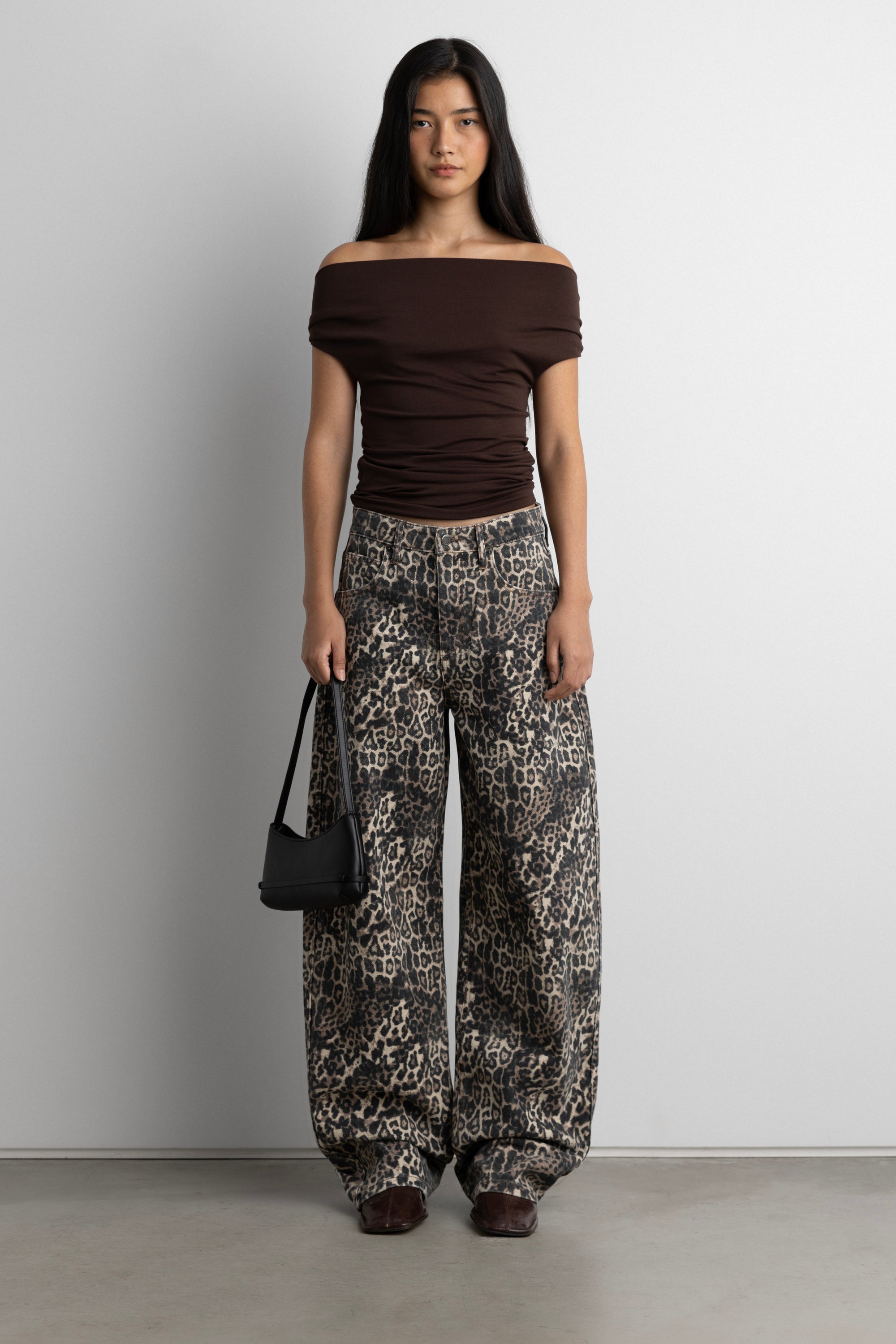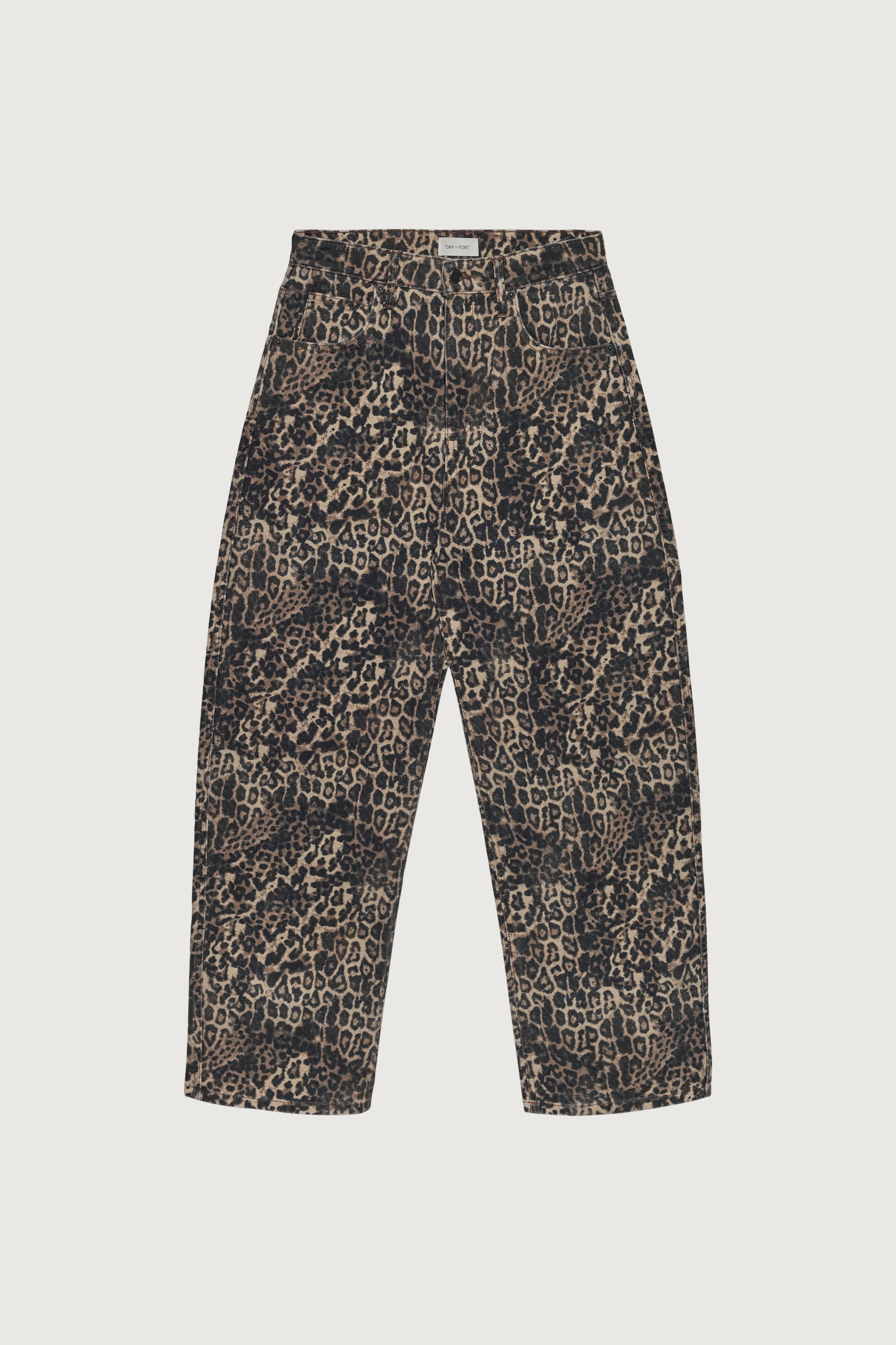 These barrel leg jeans are the perfect addition to your jean rotation. Offered in a solid white and playful leopard print to offer endless styling options. It comes with all essential pockets, belt loops, and classic zip button fly. It also features a high-rise waist and the iconic barrel leg.