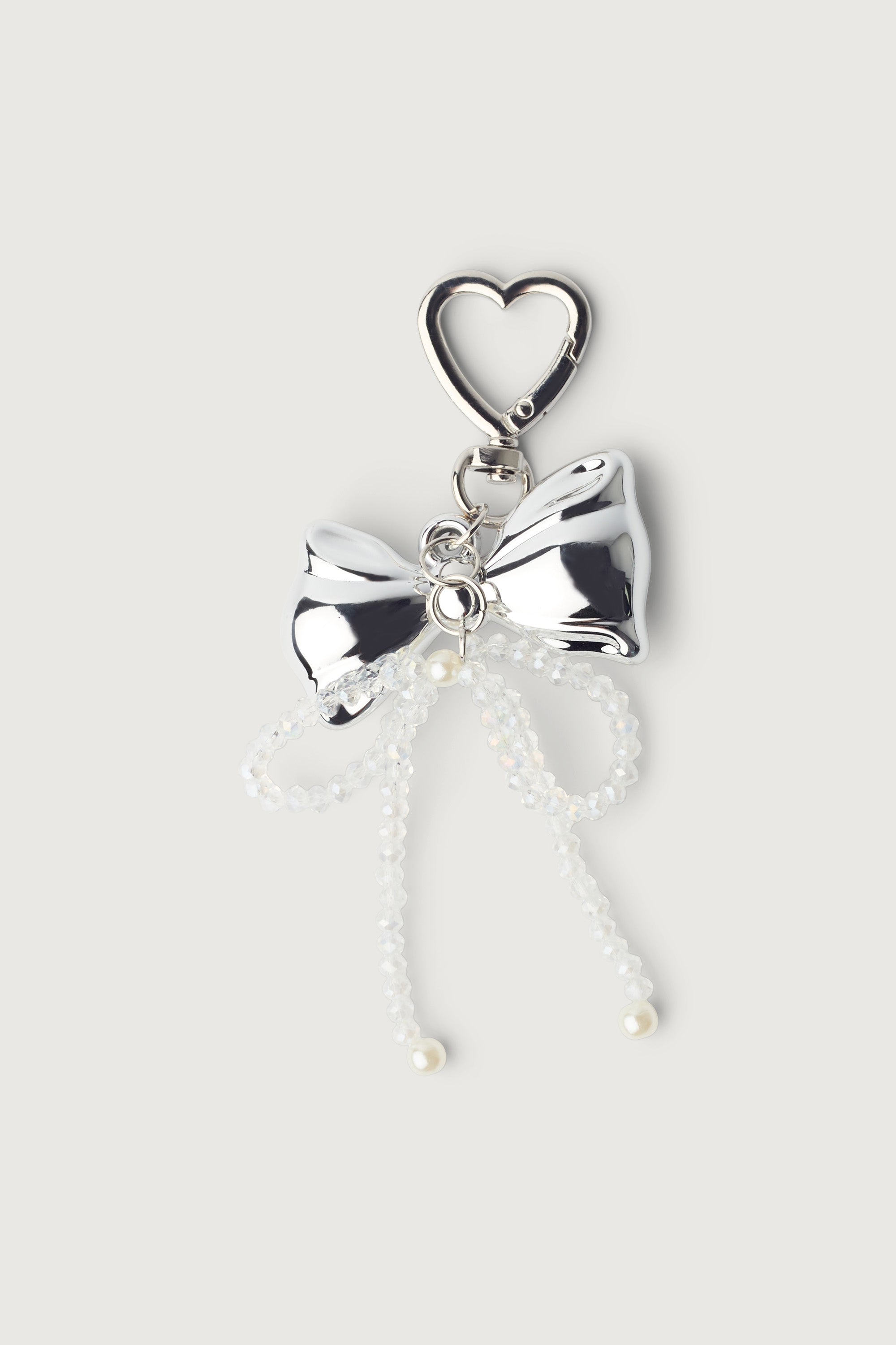Decorate your purse or bag with this Beaded Chrome Ribbon Bag Charm.