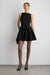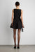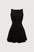 4-way stretch suiting fabric. Boat neckline. Sleeveless design. Seam details. Back zipper. A-line skirt.