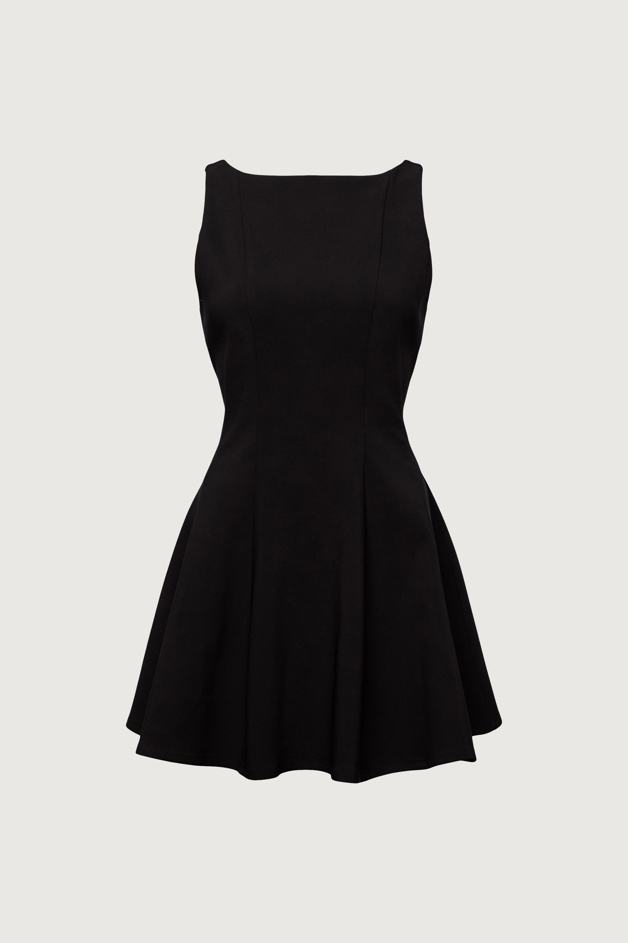 This boatneck mini dress is made in a slim fit with a seam details. It has a zipper at the back and a A-line skirt. Perfect for your next occasion, pair it with knee high boots.