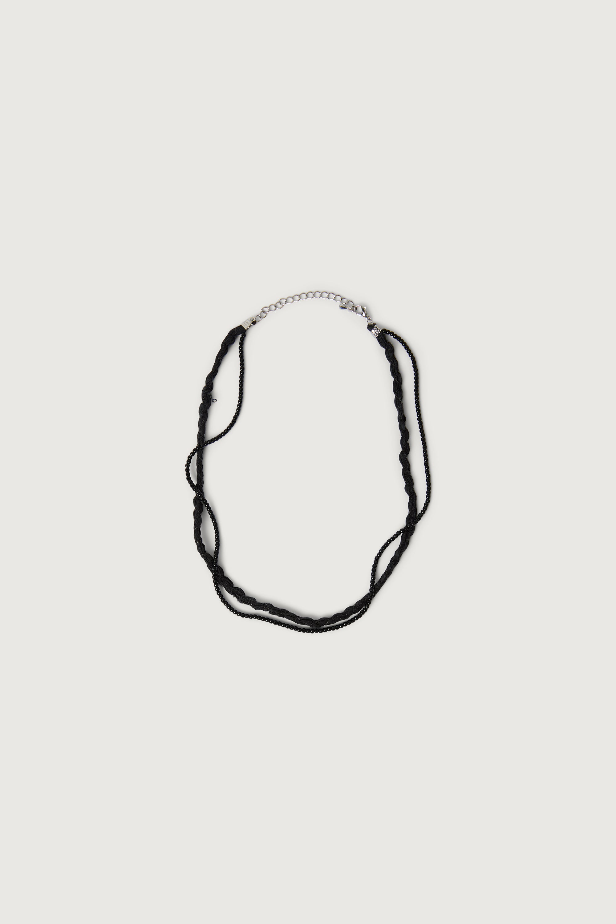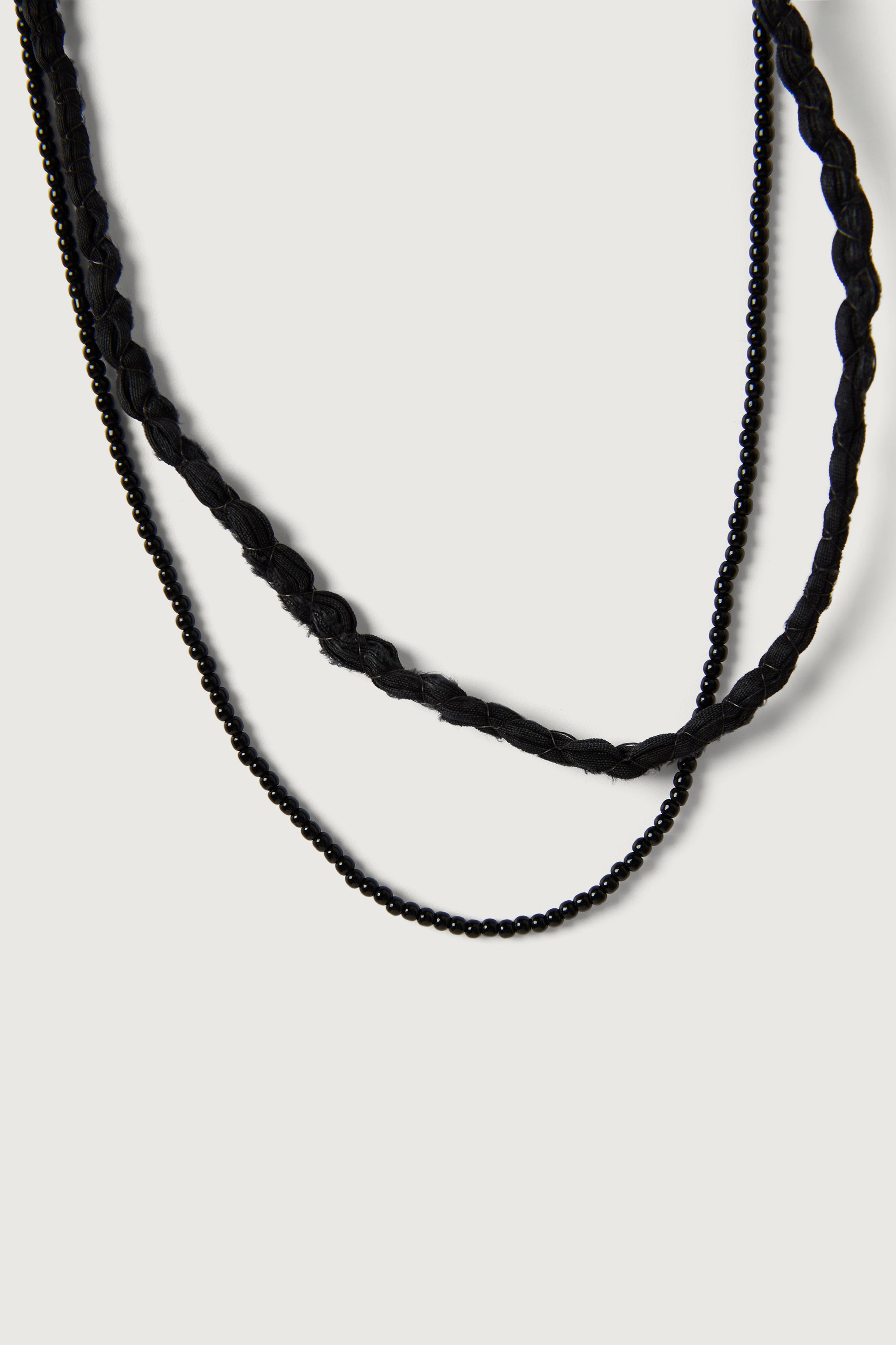 A layered necklace combining braided cord and delicate beaded strands for subtle texture and dimension. Designed to add understated detail, this piece complements both casual and refined looks.