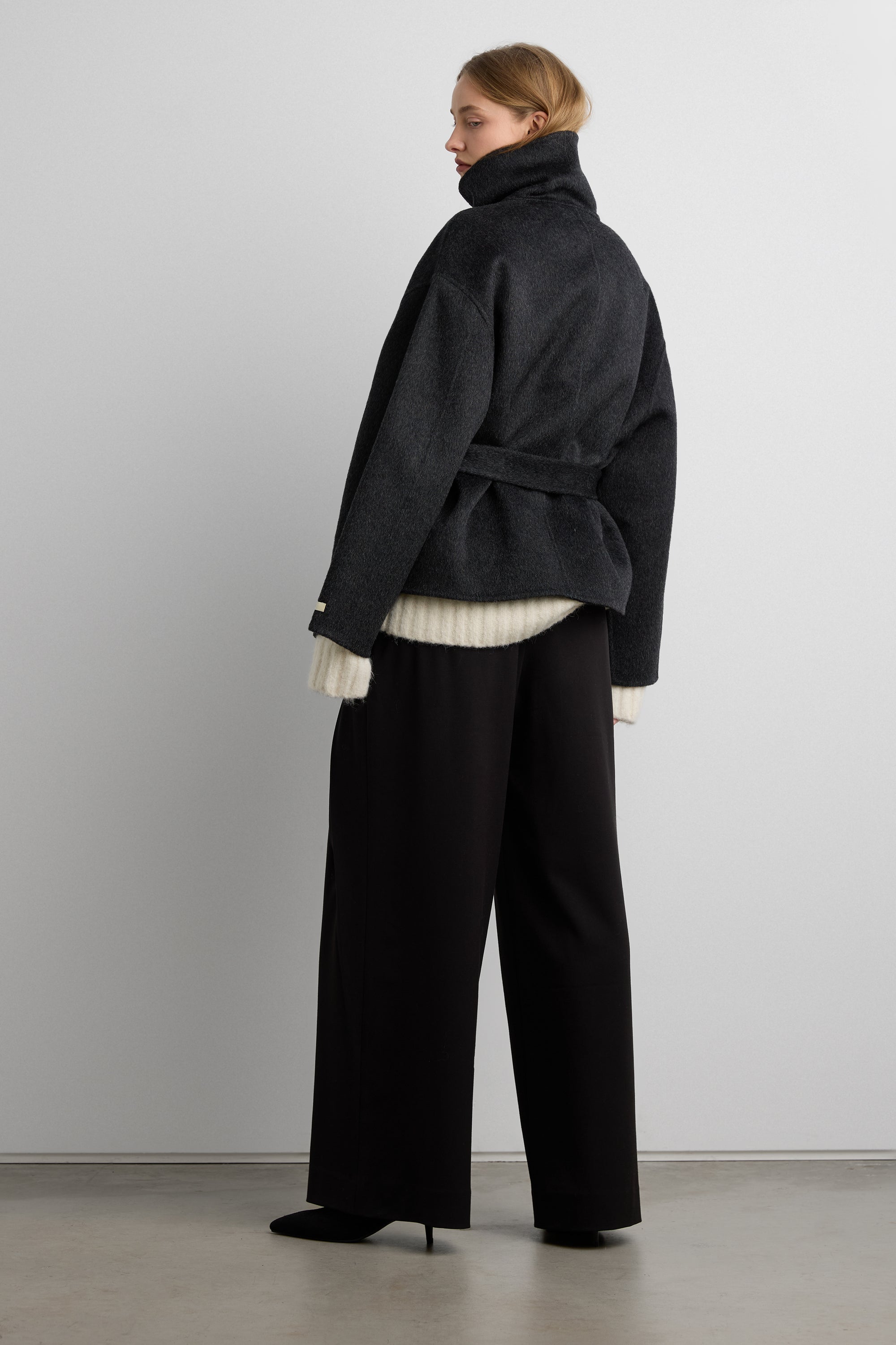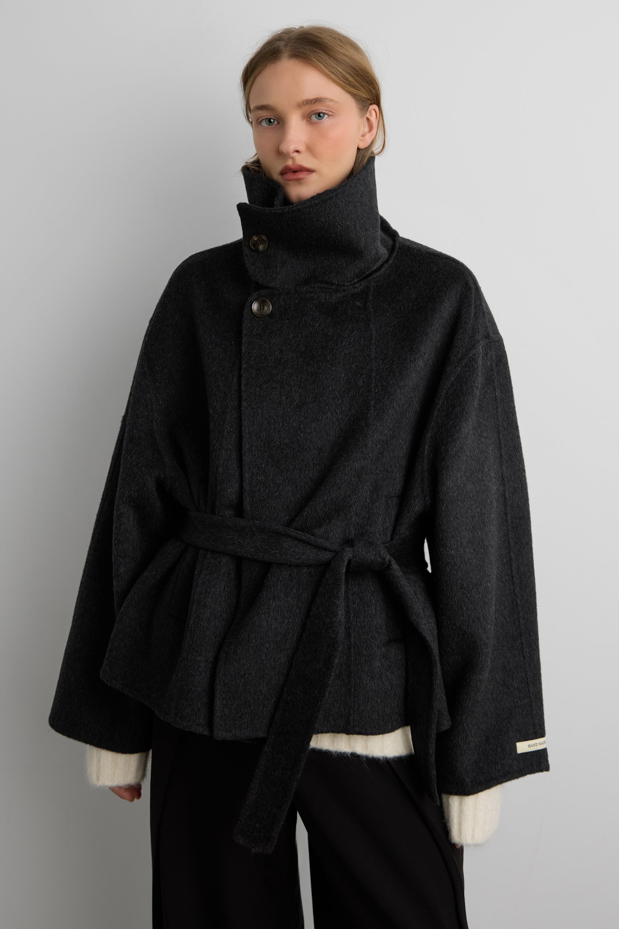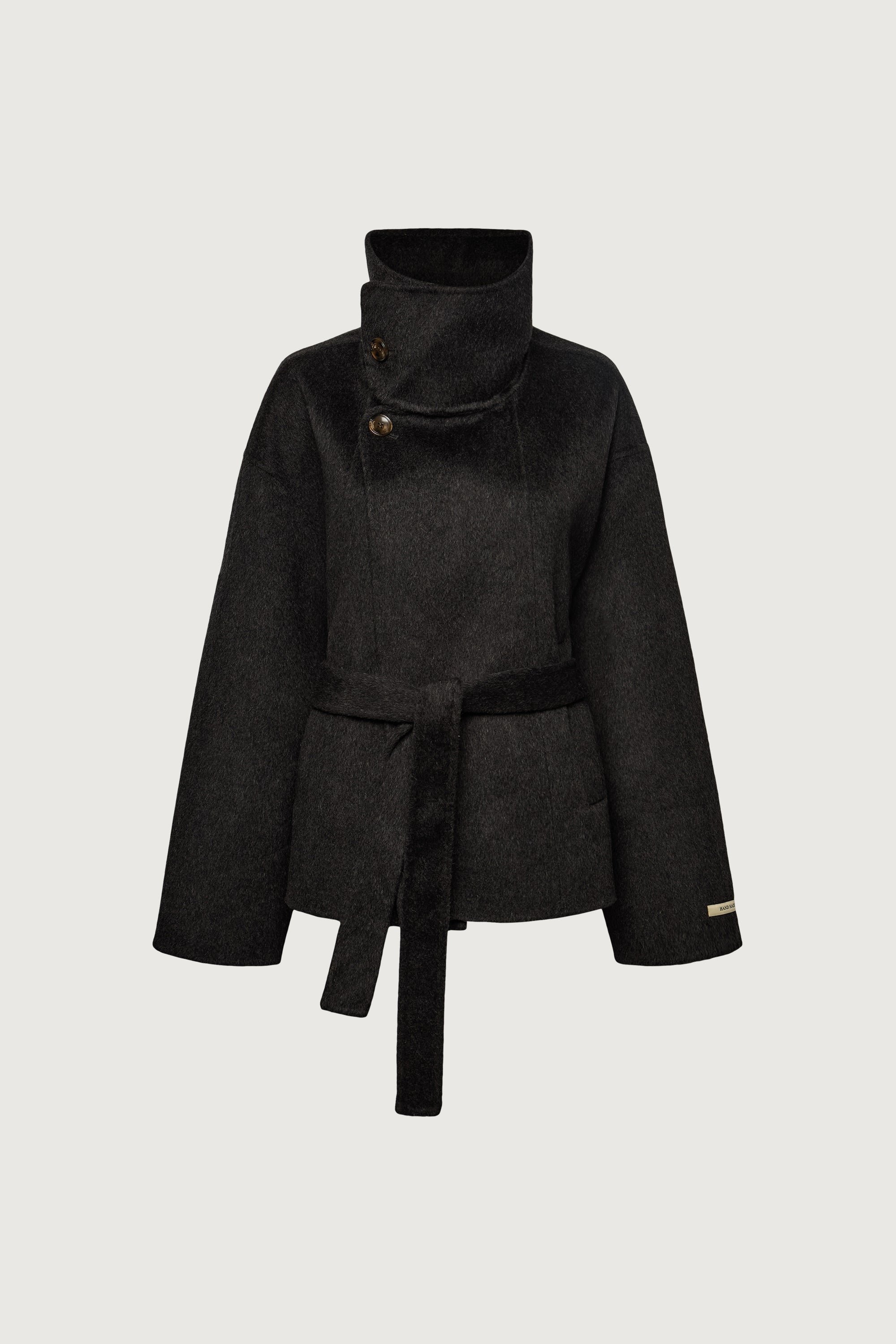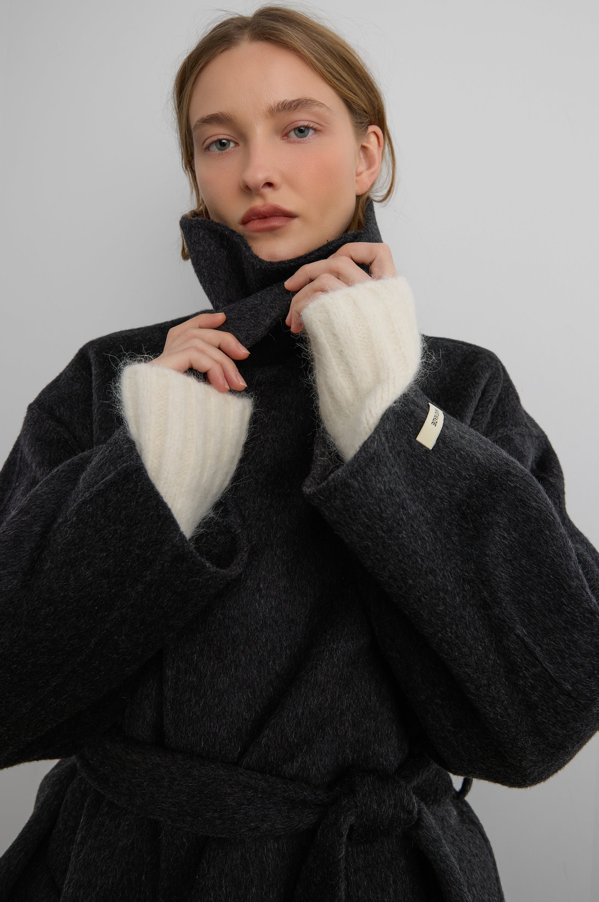 BRUSHED WOOL HAND MADE FUNNEL NECK COAT WITH BELT