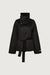 Brushed fabric. Hand made. High funnel neck. Tortoise buttons. Side pockets. Waist tie.