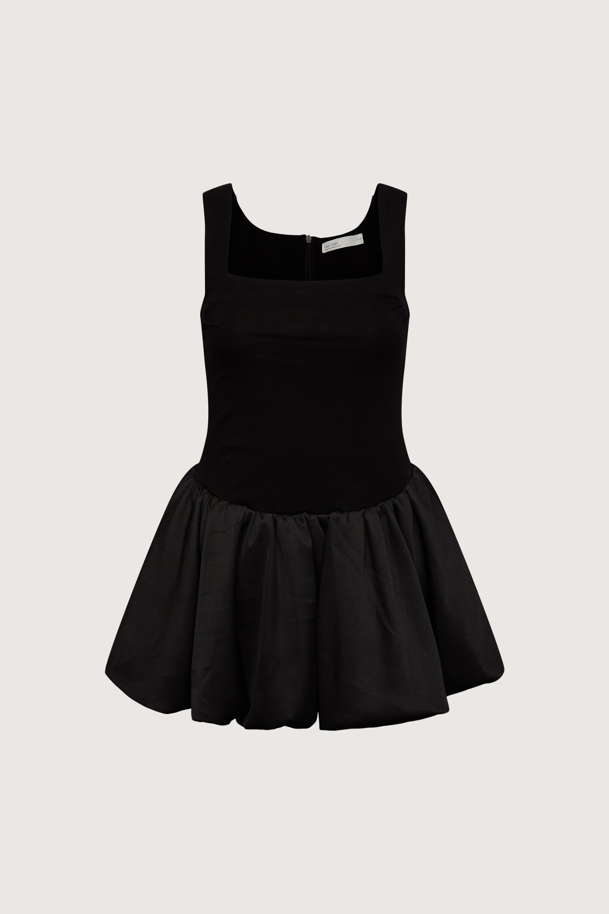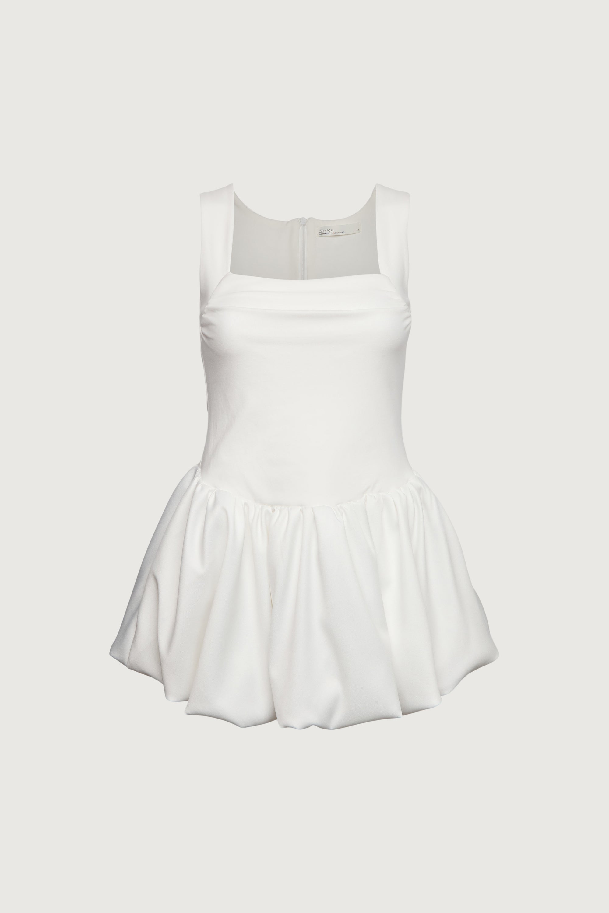 Square neckline. Bubble hem.