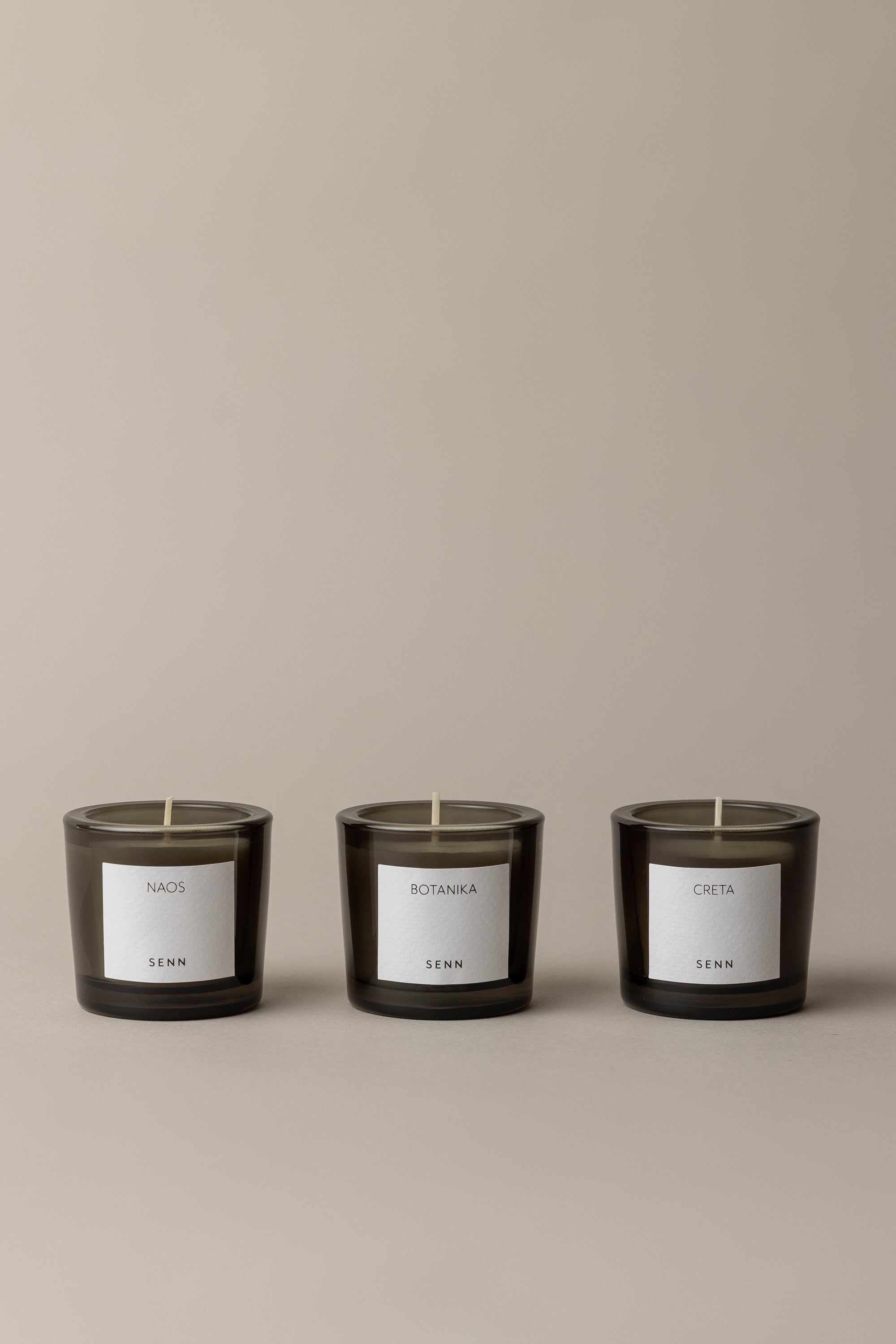 - Soy wax with 100% cotton wick | Smoked glass vessel
