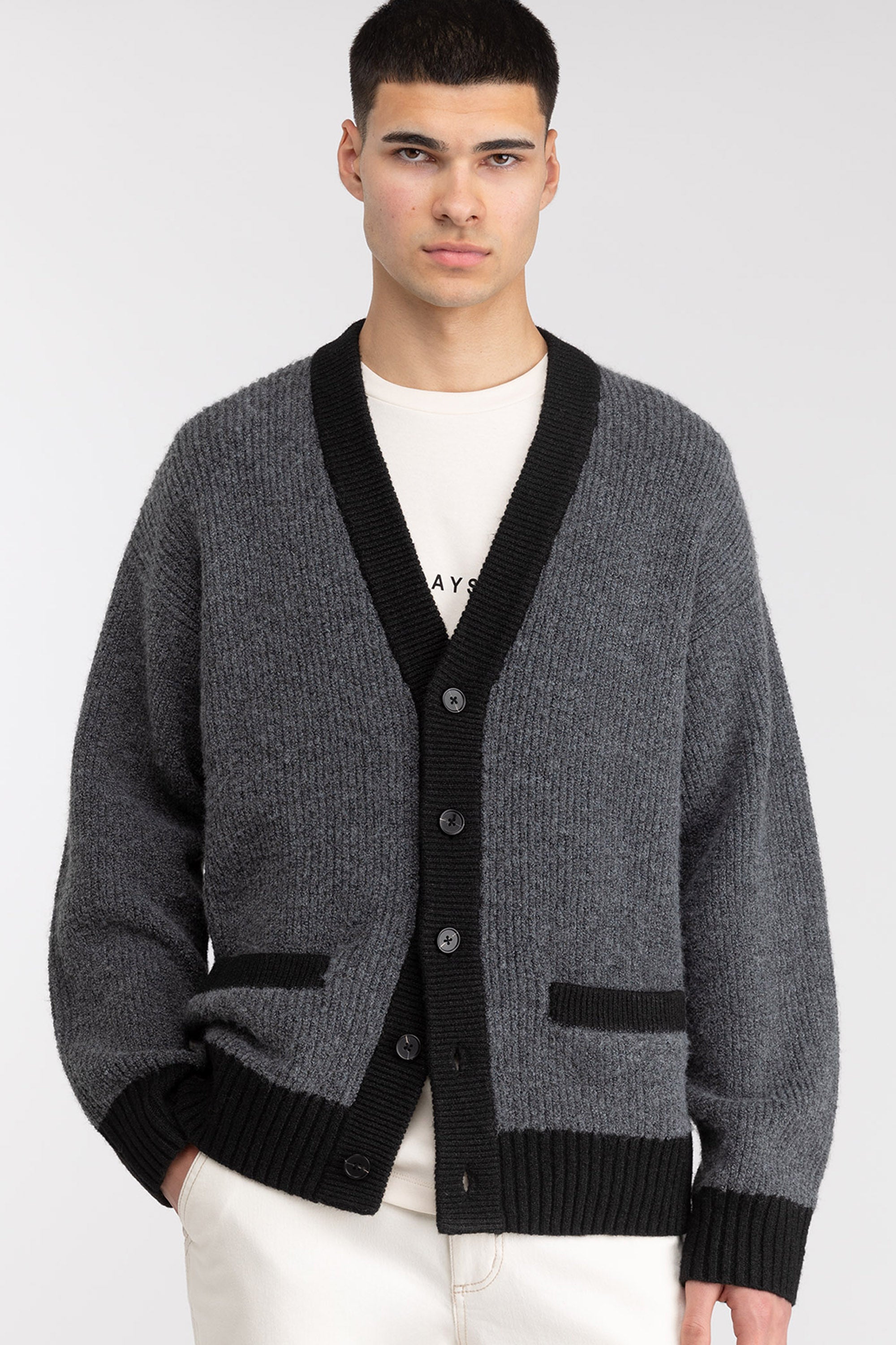 Relaxed fit. Button front. Contrast ribbed trims. Dropped shoulders. 27" length based on size M.