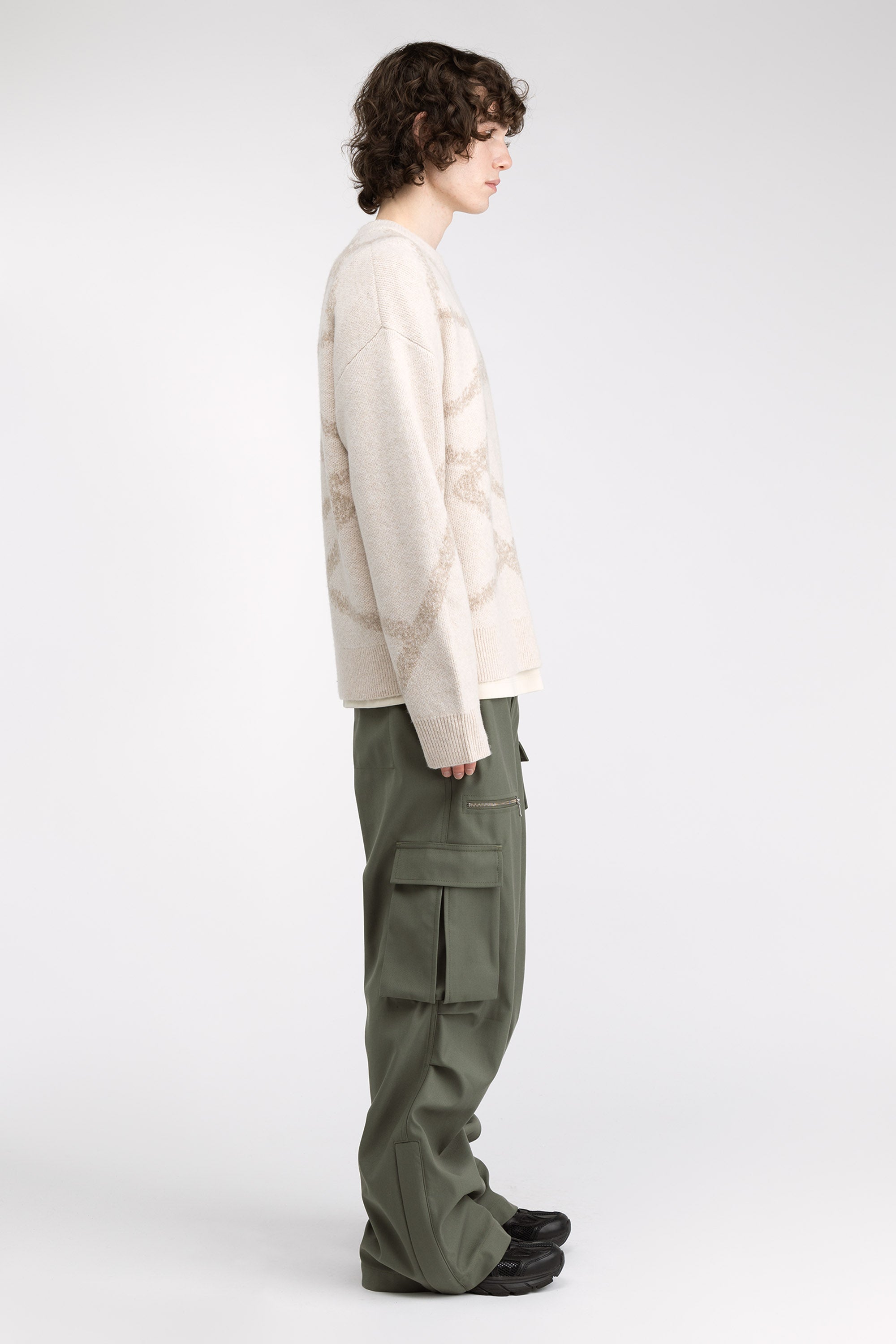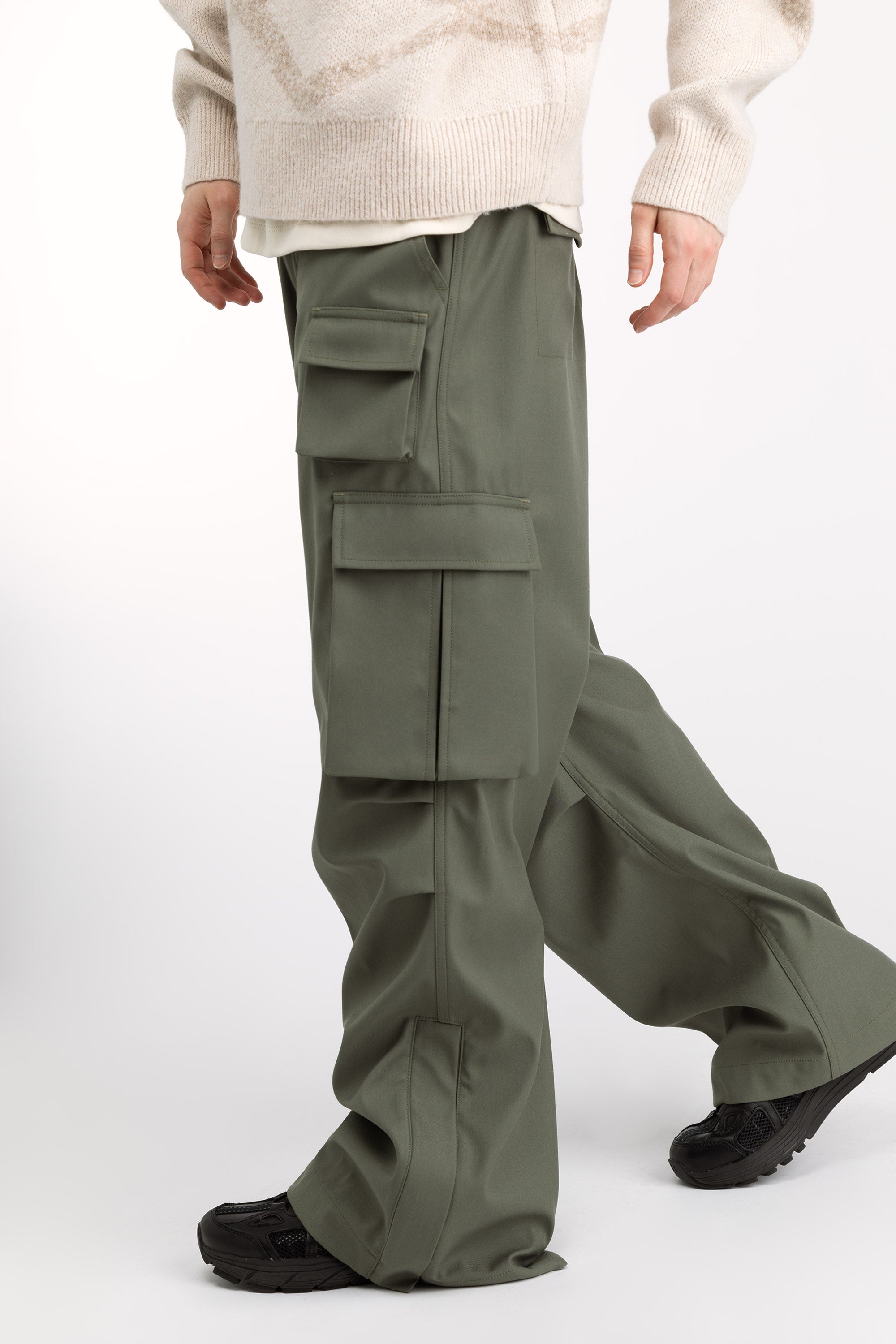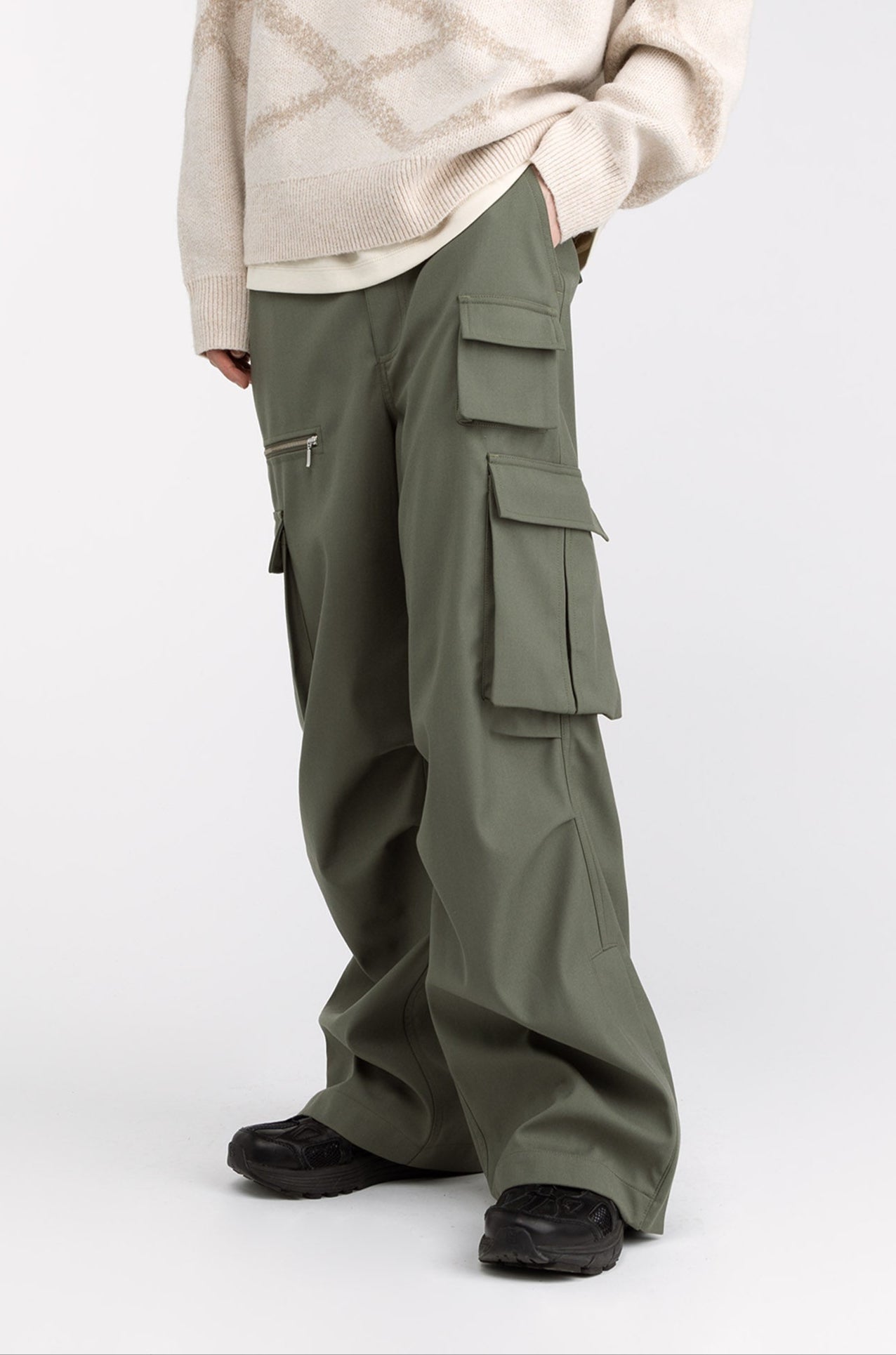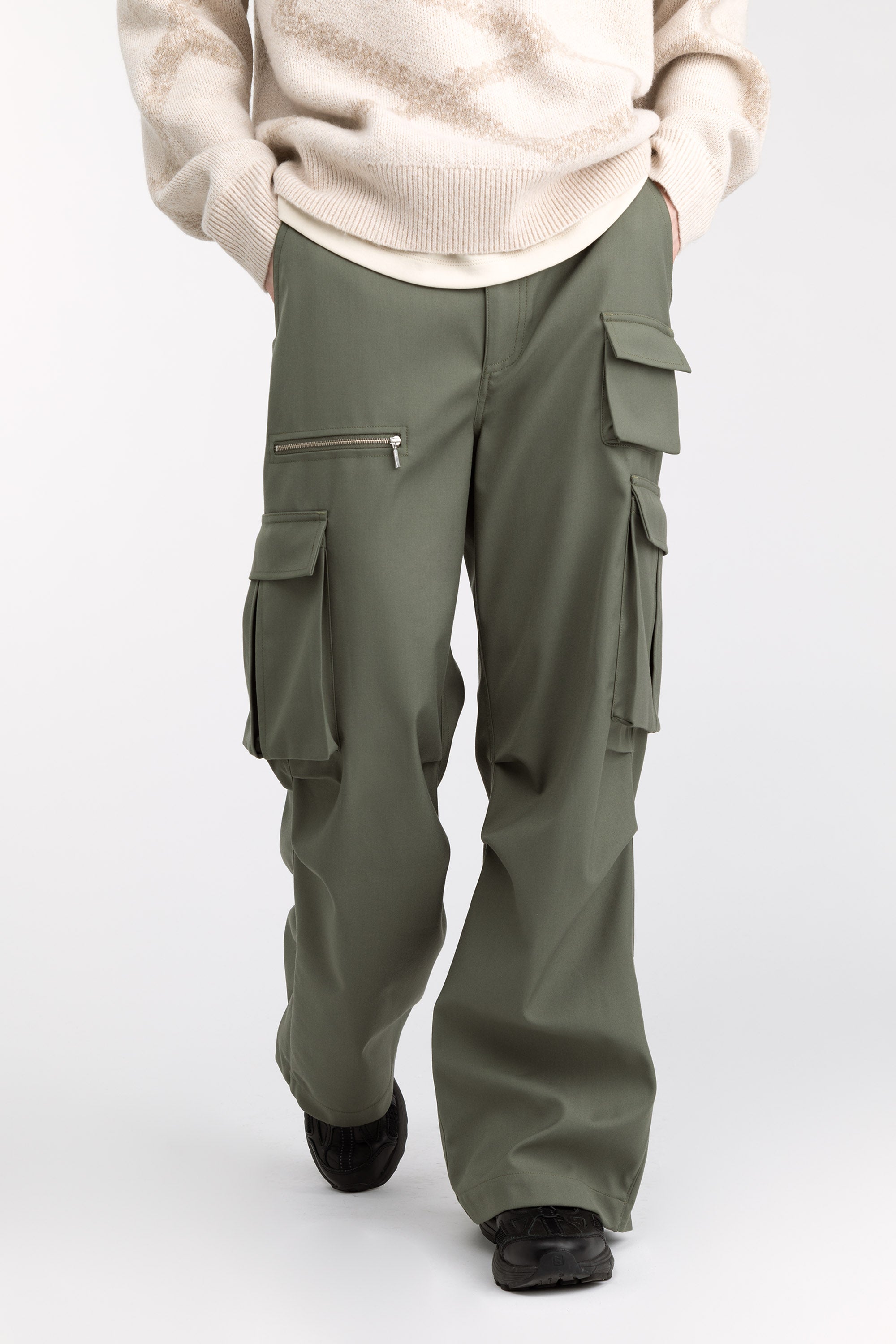 These high-rise, cargo pants are made in a relaxed fit in a straight leg cut. It has cargo pocket details and zipper designs at hem.