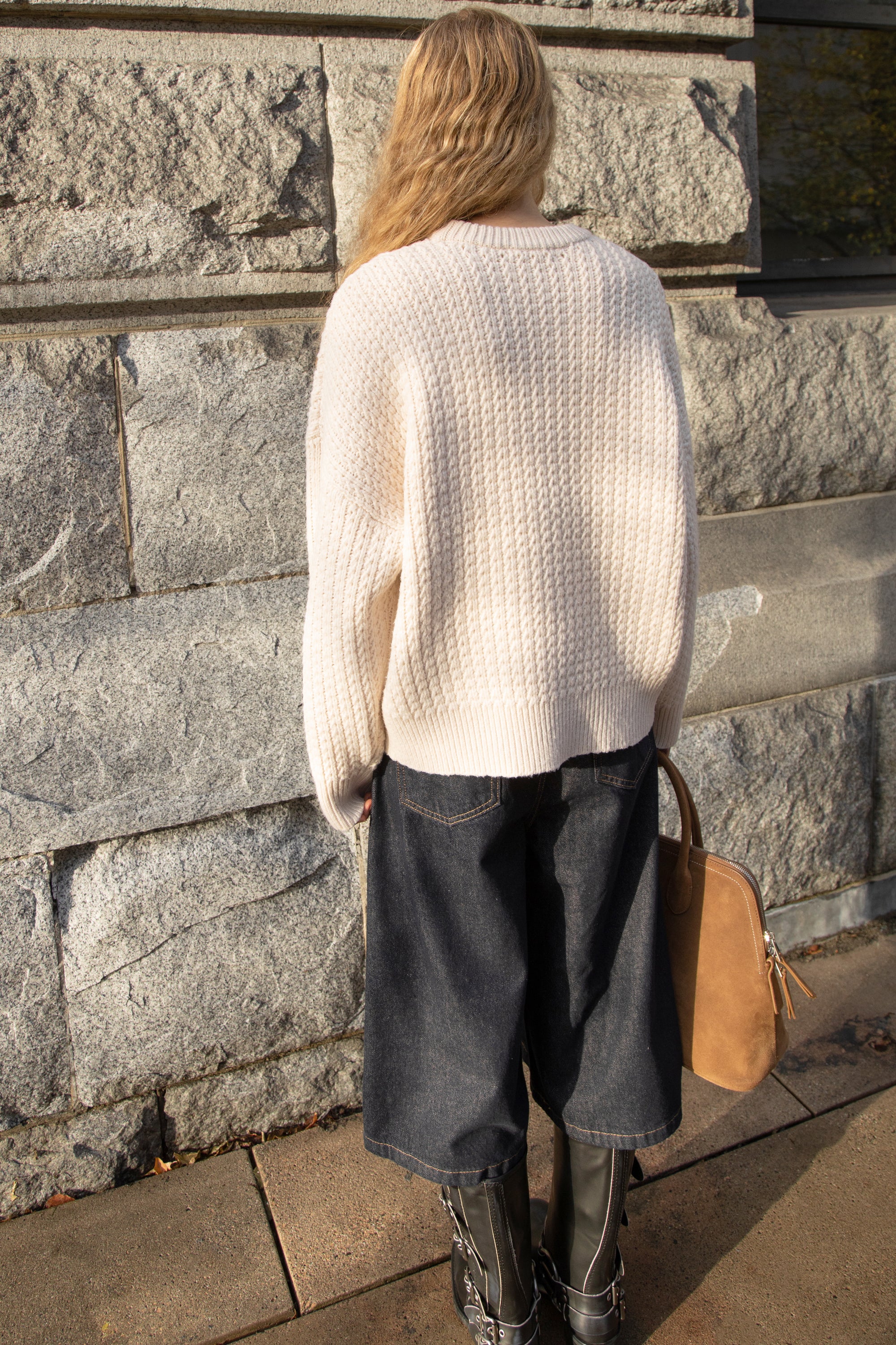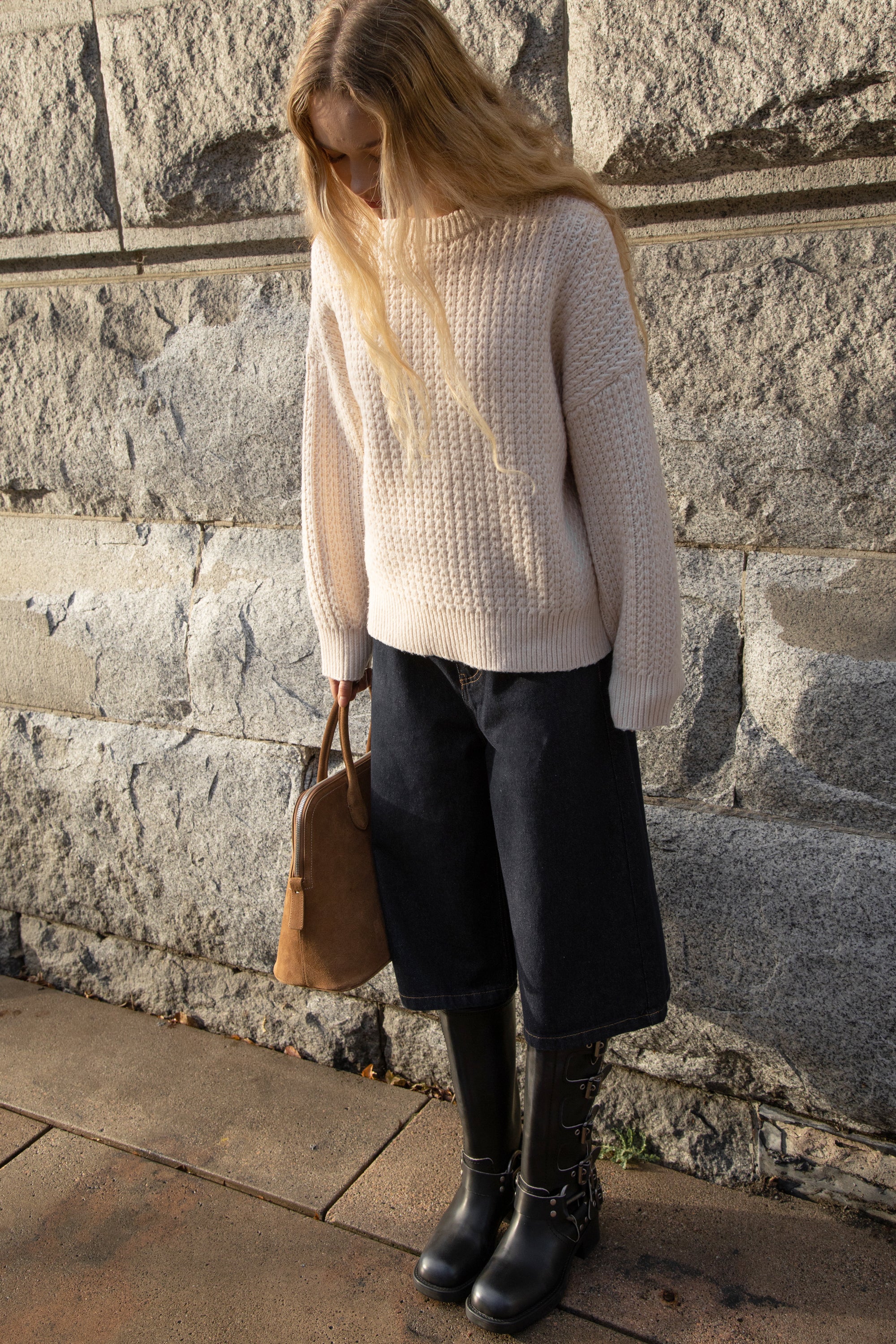 This chunky knit crewneck sweater is made is a classic fit. It's the perfect basic to add to your essentials, wear yours with wide leg jeans and boots.