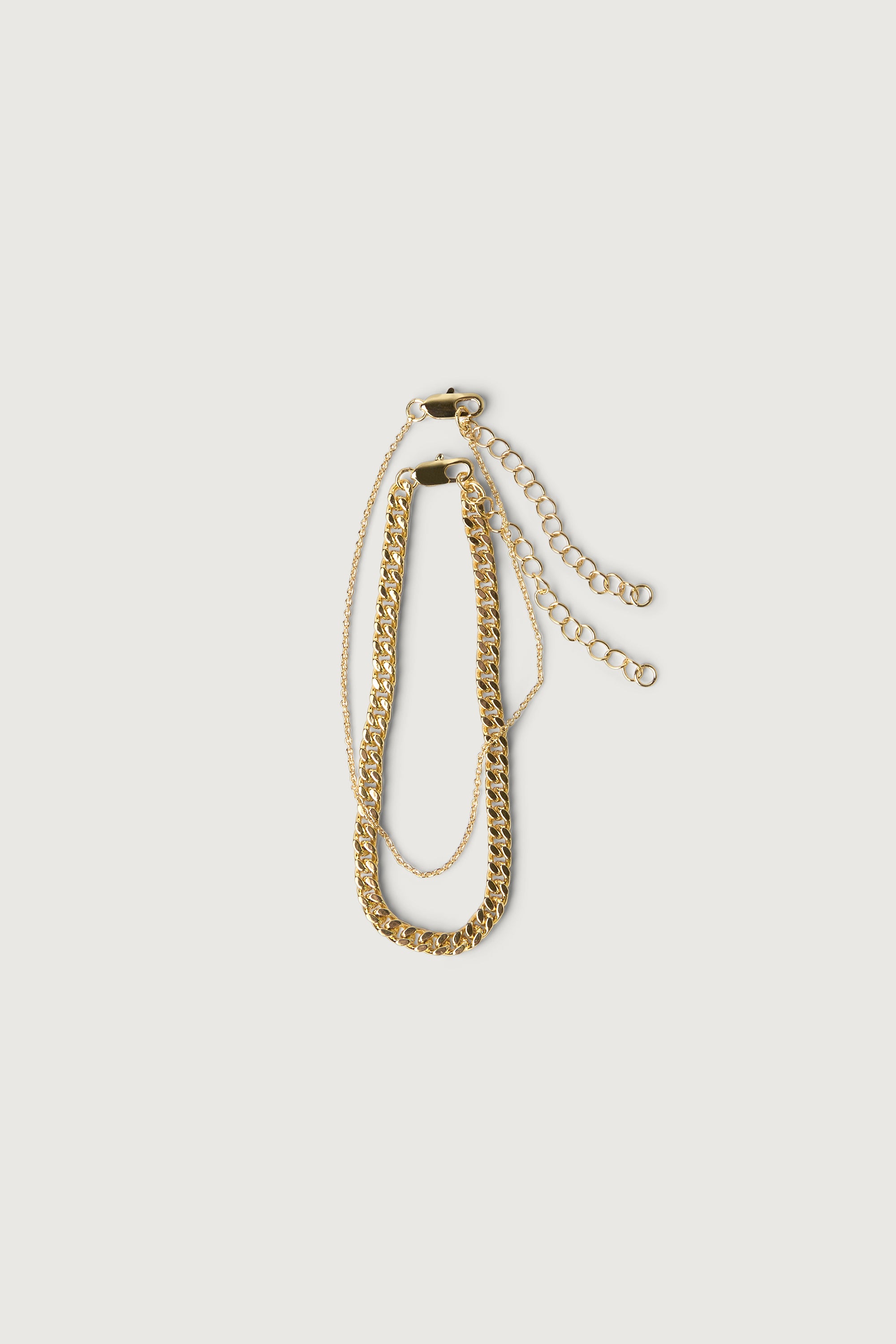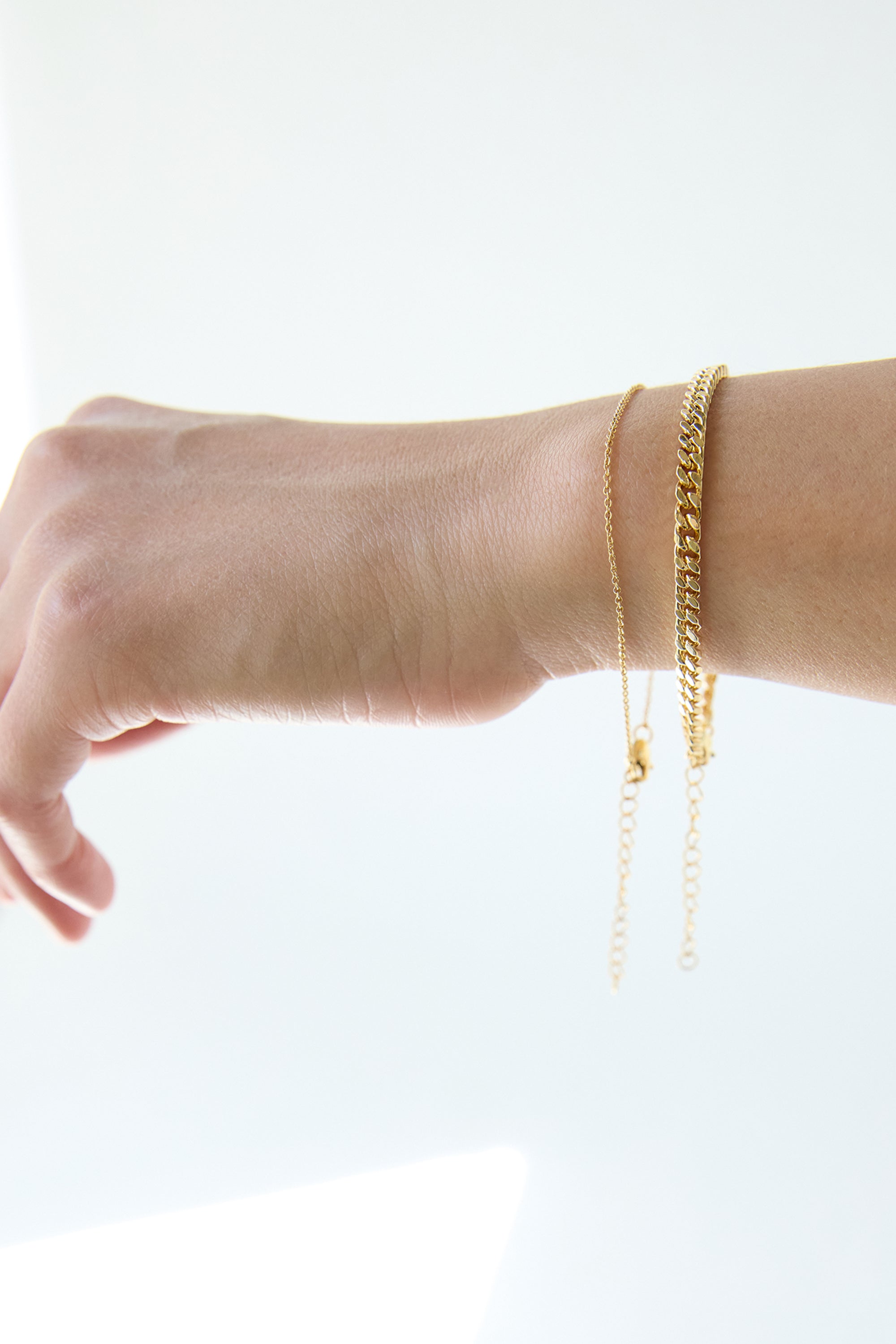 6.5" length. Curb chain. Rolo chain. Lobster clasp. 14K gold or silver plating.