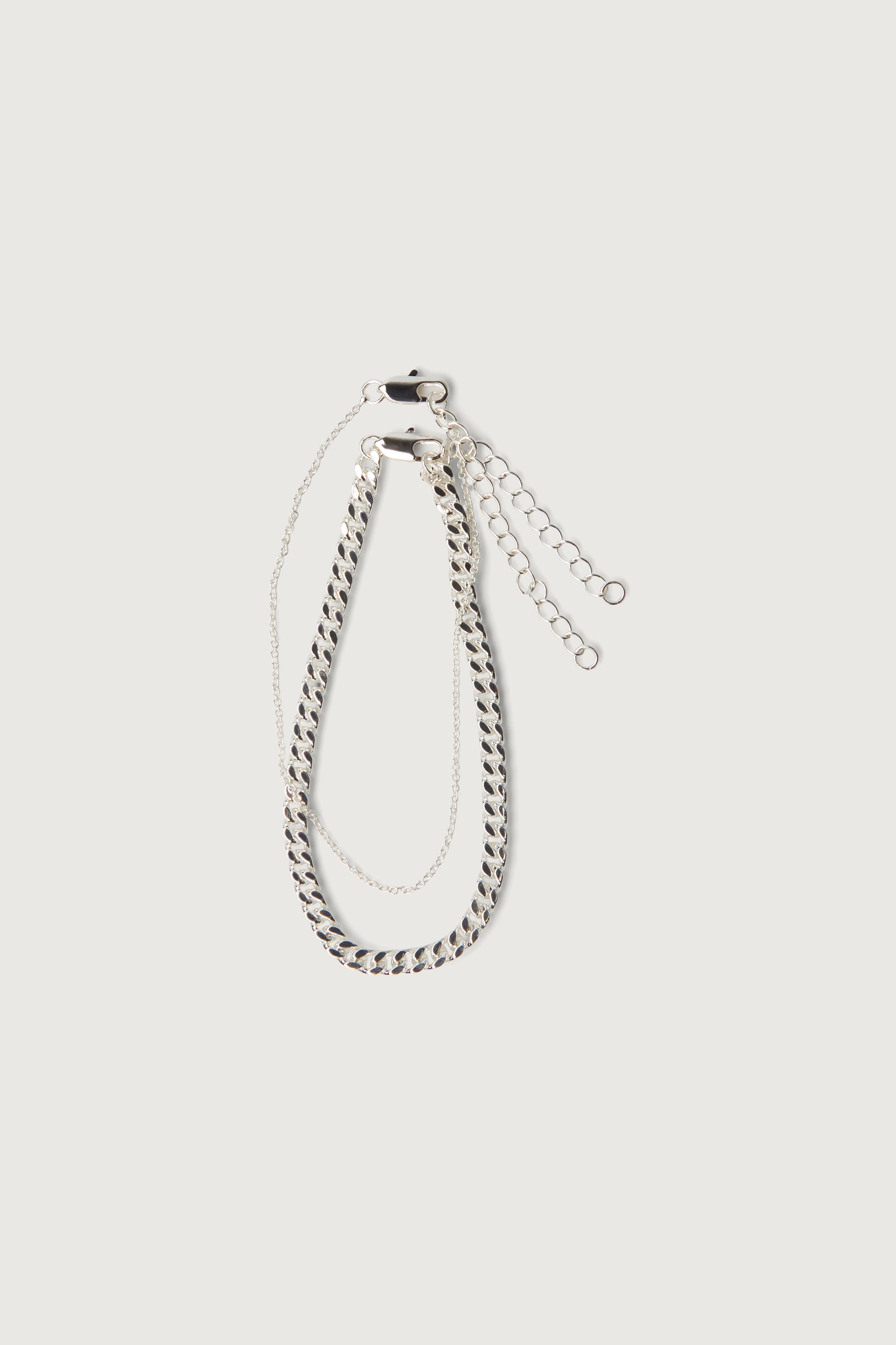 This bracelet set includes a curb chain and a Rolo chain, combining two timeless styles for everyday wear. Each bracelet is secured with a lobster clasp closure for easy and secure fastening. The set offers versatile styling options, whether worn together or separately. pair with the matching necklace set NK-14694-W.
