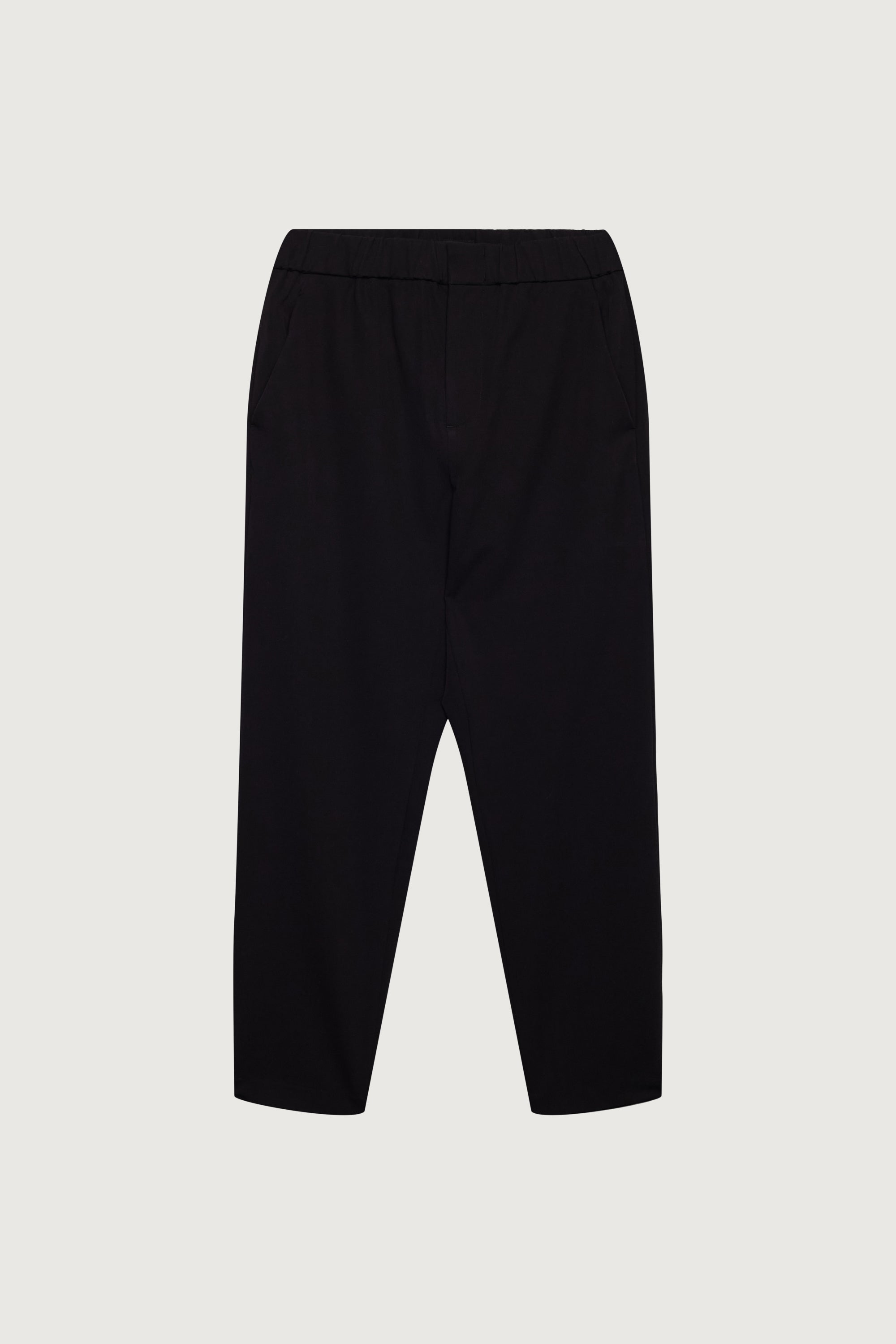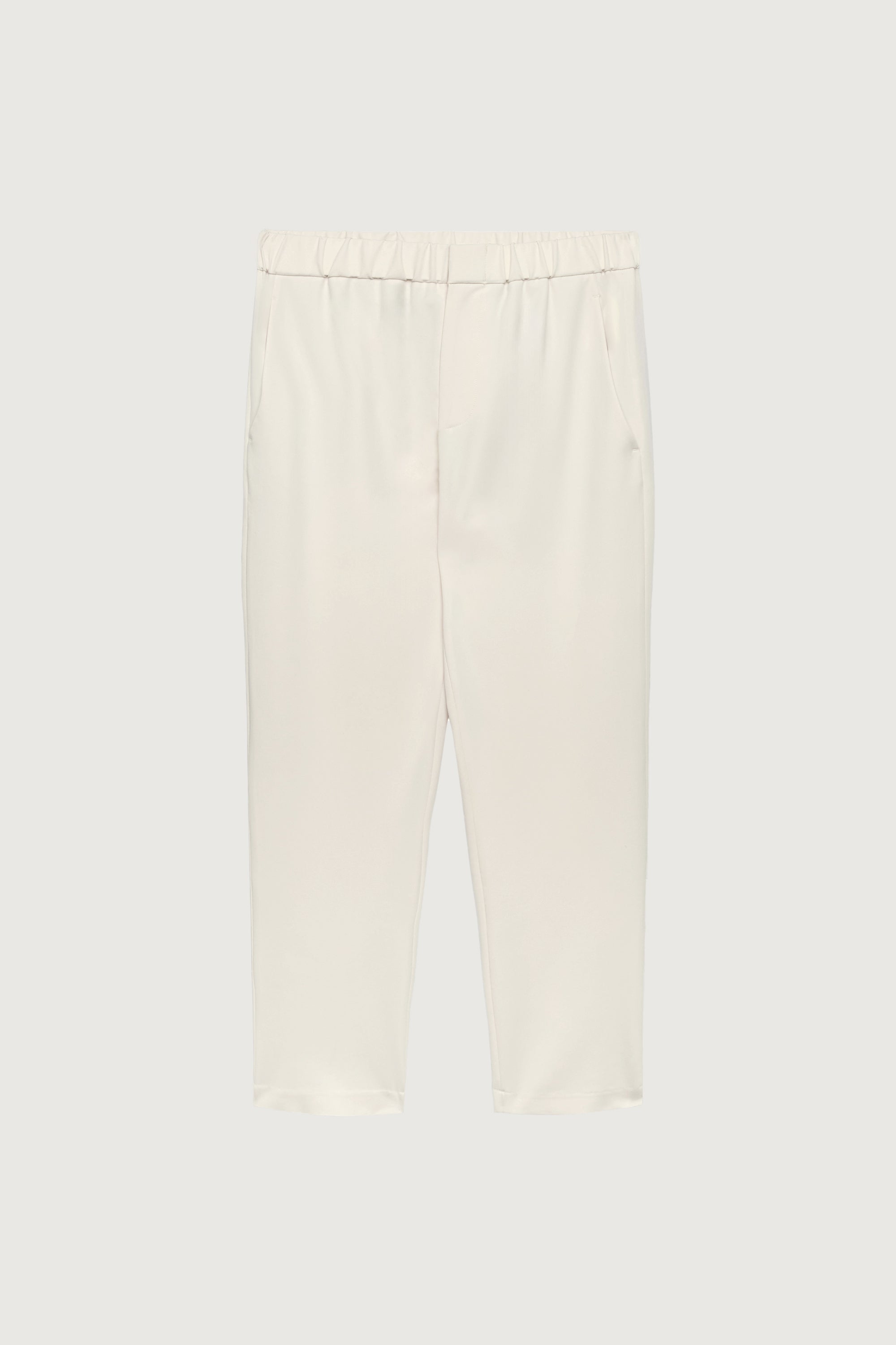Classic fit. Poly blend fabric. Tapered hem. Front and back pockets. Elasticated waist. Zip front. Hook and bar fastener. 30" waist and 29" inseam based on size M.