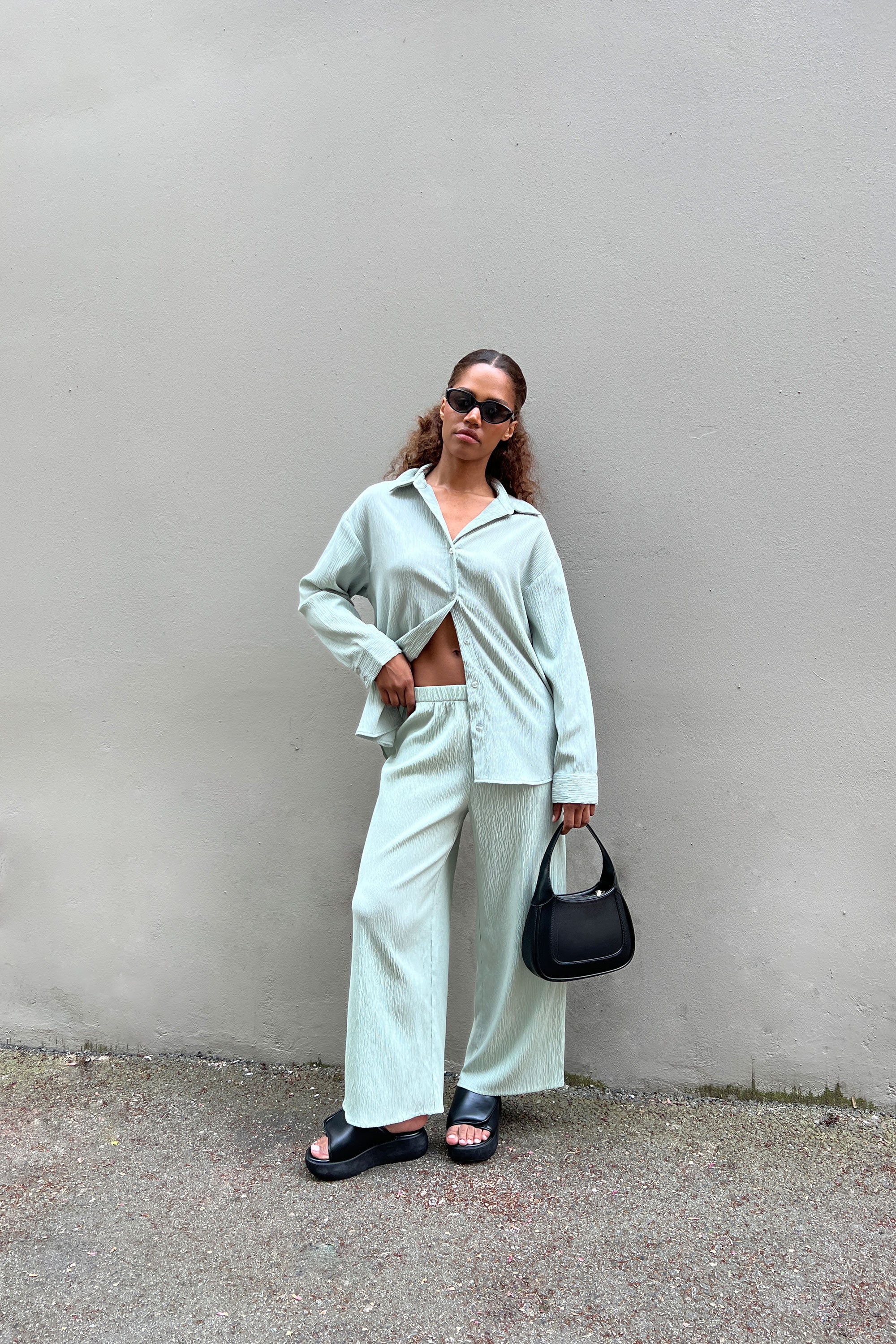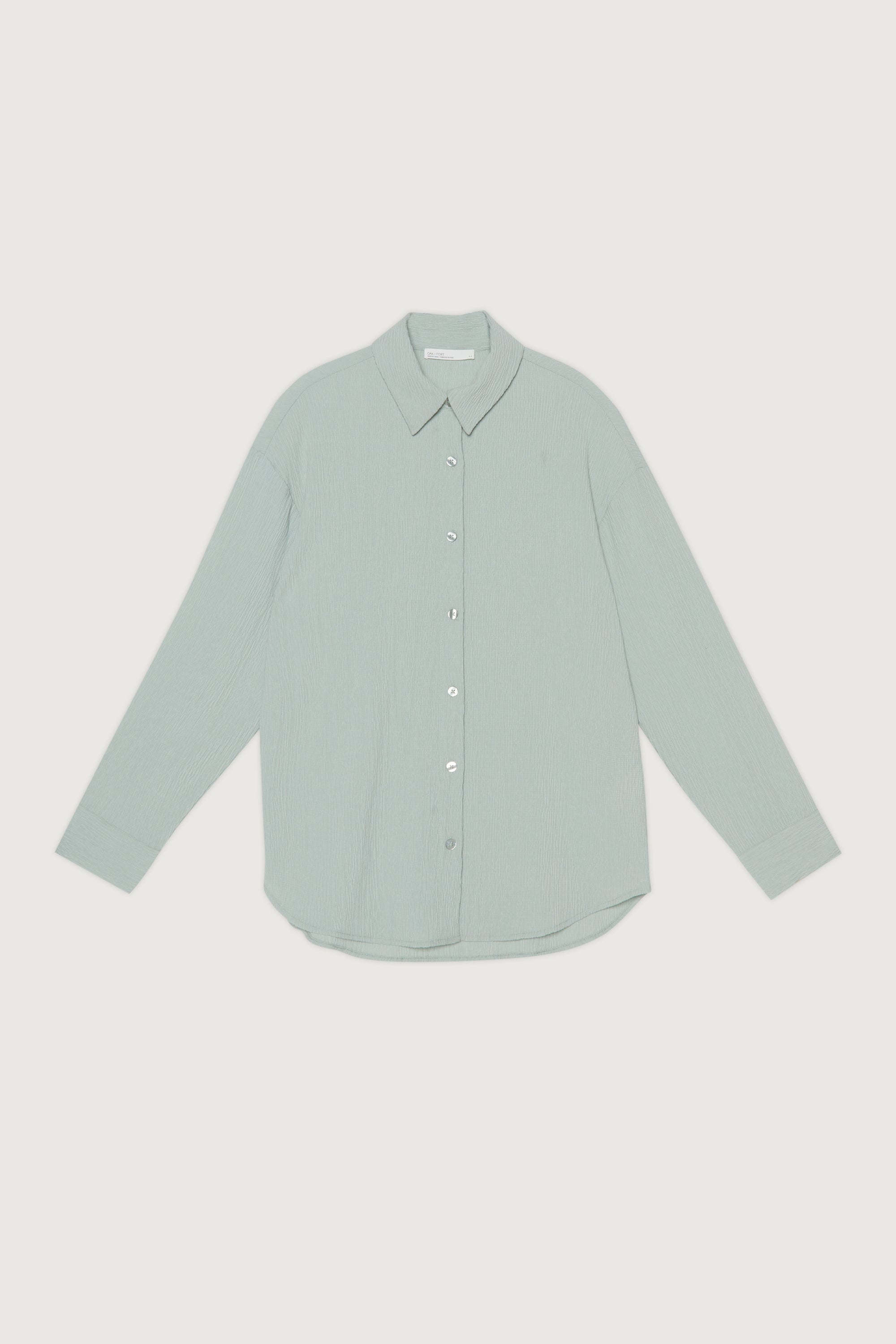 Relaxed fit. Crinkled fabric. Shirt silhouette. Dropped shoulders. 30" length based on size S.
