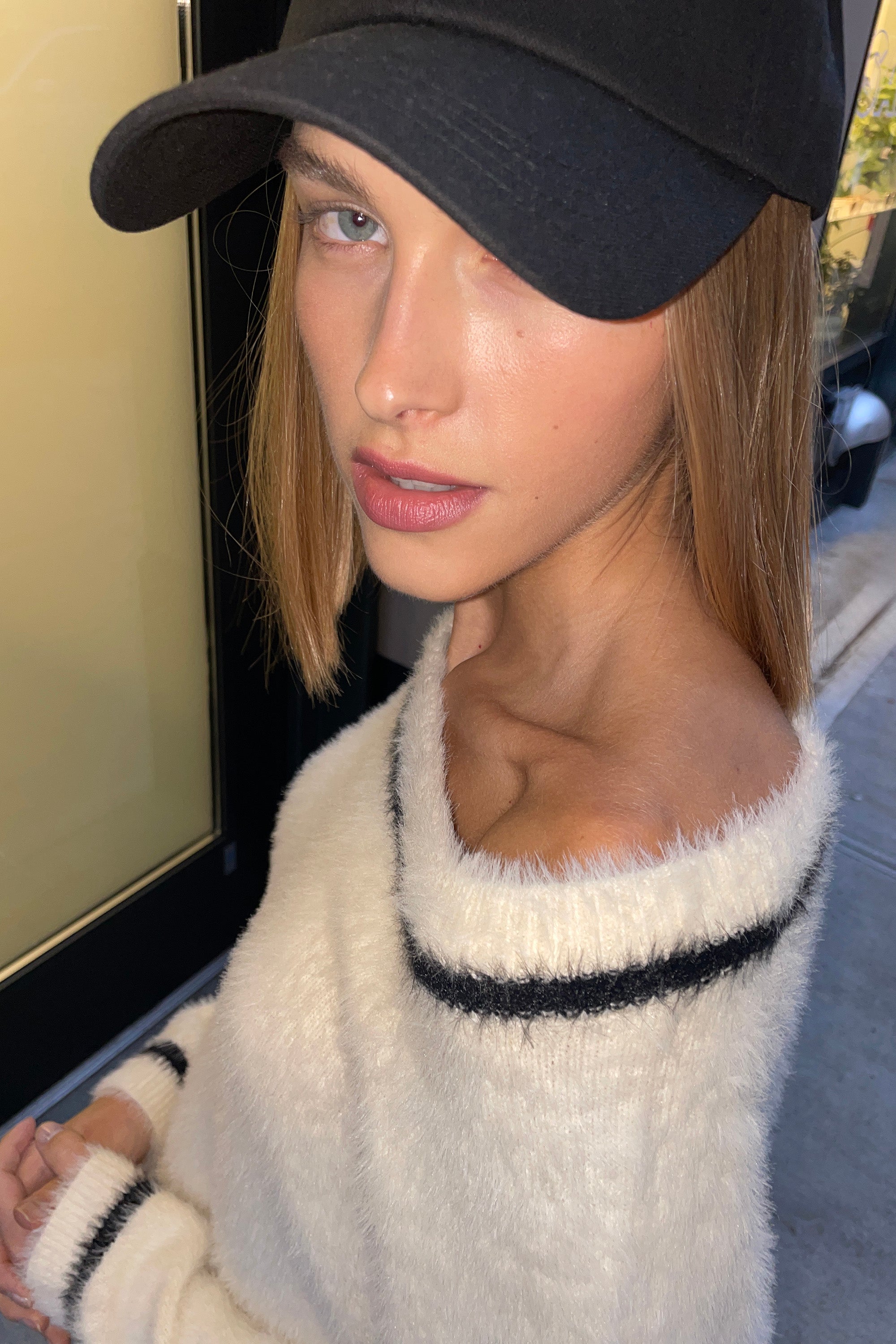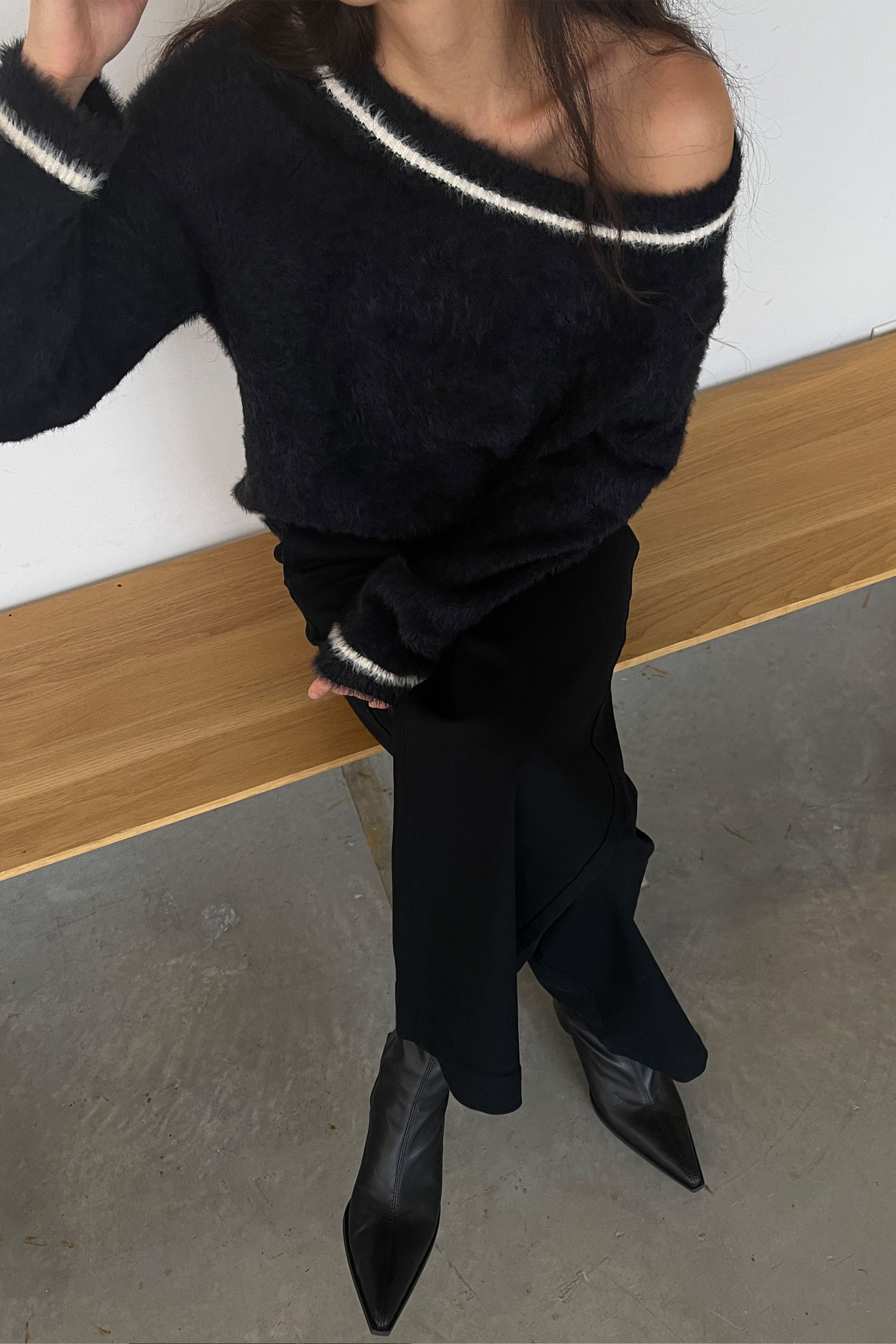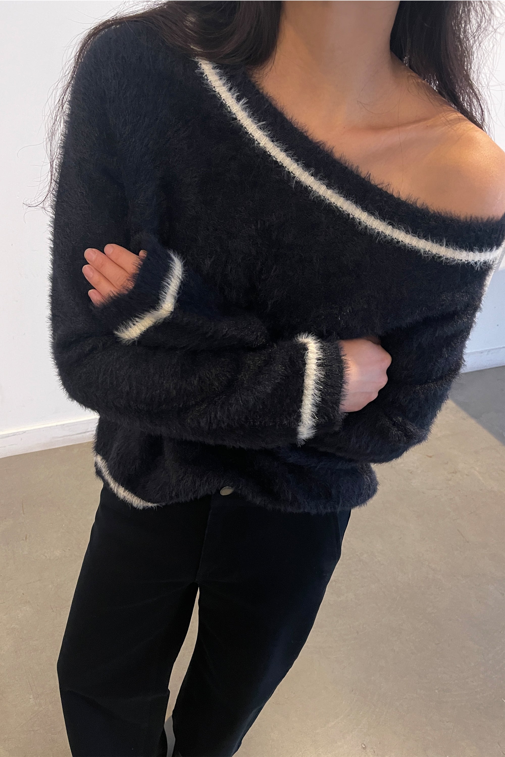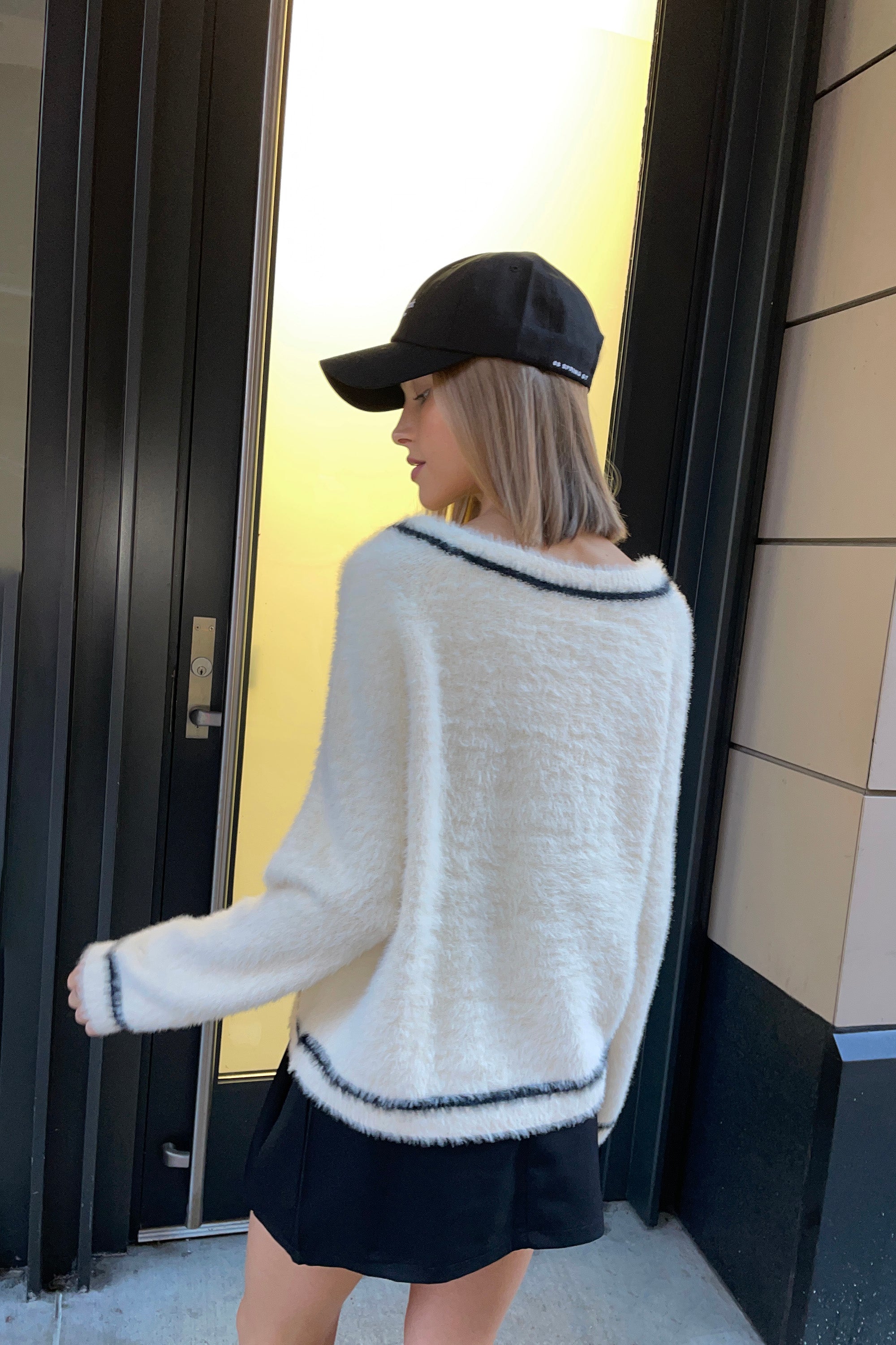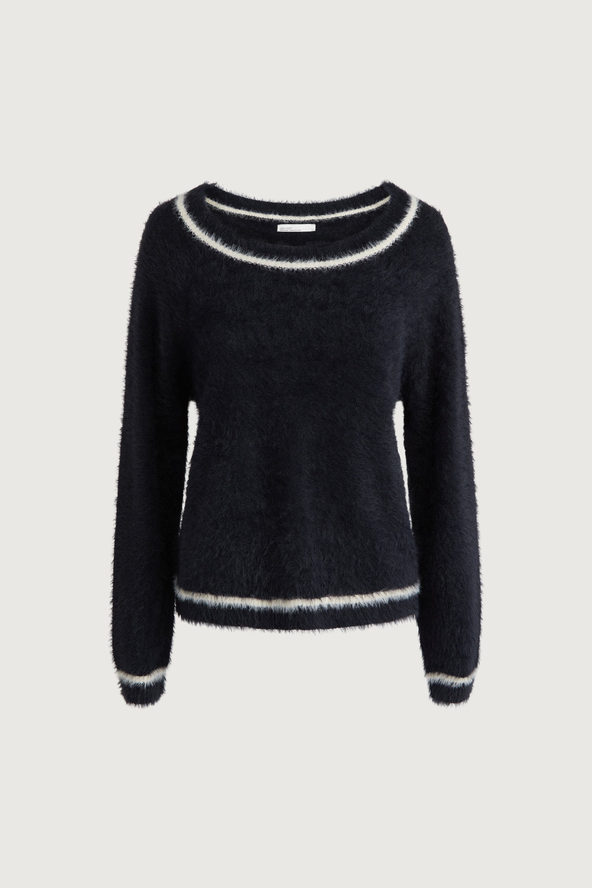 This fuzzy sweater is made in a relaxed fit and has contrast details. Style yours with a mini skirt and boots.