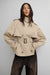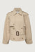 Cotton blend. Collar with belt detail. Epaulettes. Storm flap. Double-breasted front. Belted waist. Button sleeve details.