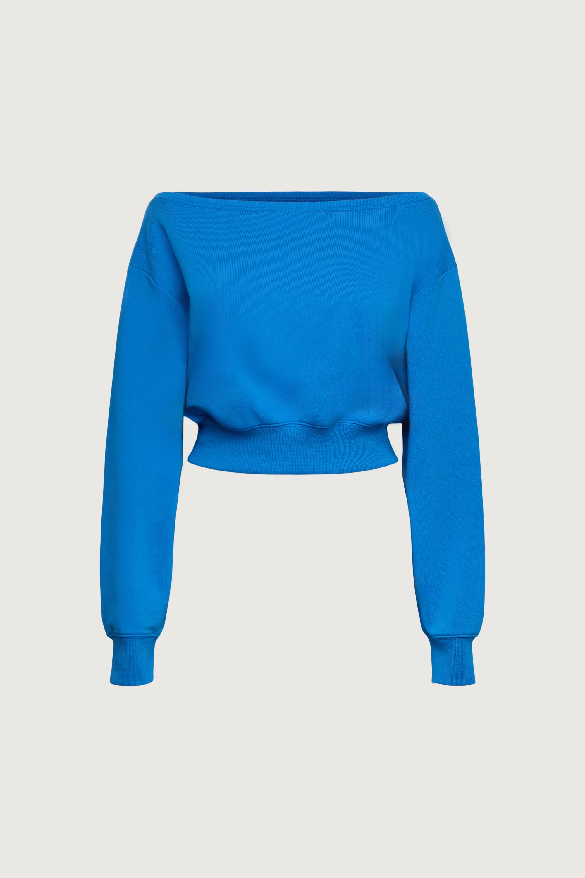 Cotton and Sorona blend French terry. 315 gsm. Wide neckline. Ribbed trims.
