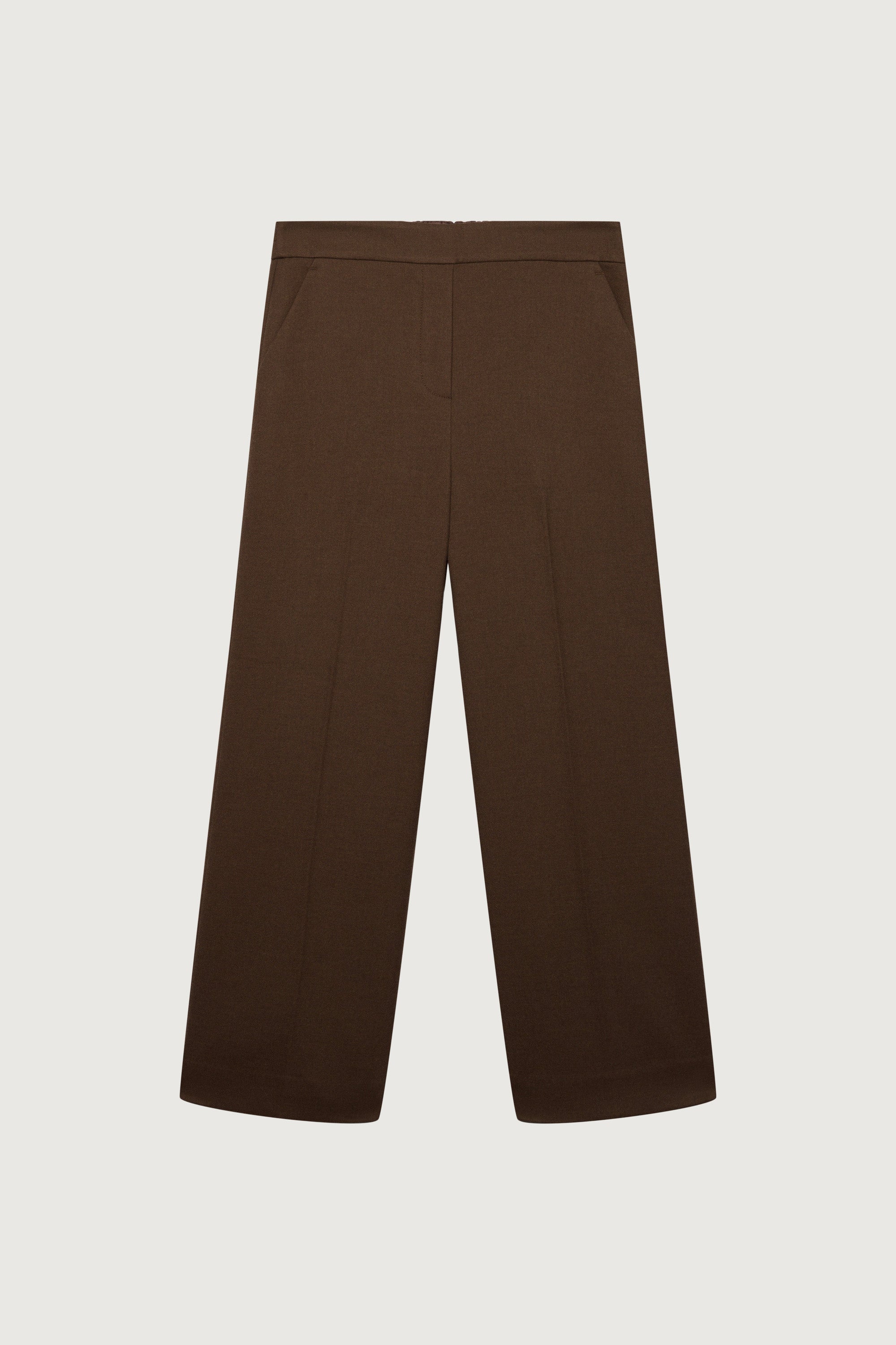These cropped pants are made in a classic fit with a straight leg cut and high-rise waist that is elasticated at the back. It's made from a thick brushed suiting fabric designed to have a tailored look. A versatile wardrobe staple, wear it with a chunky sweater or with a satin blouse.