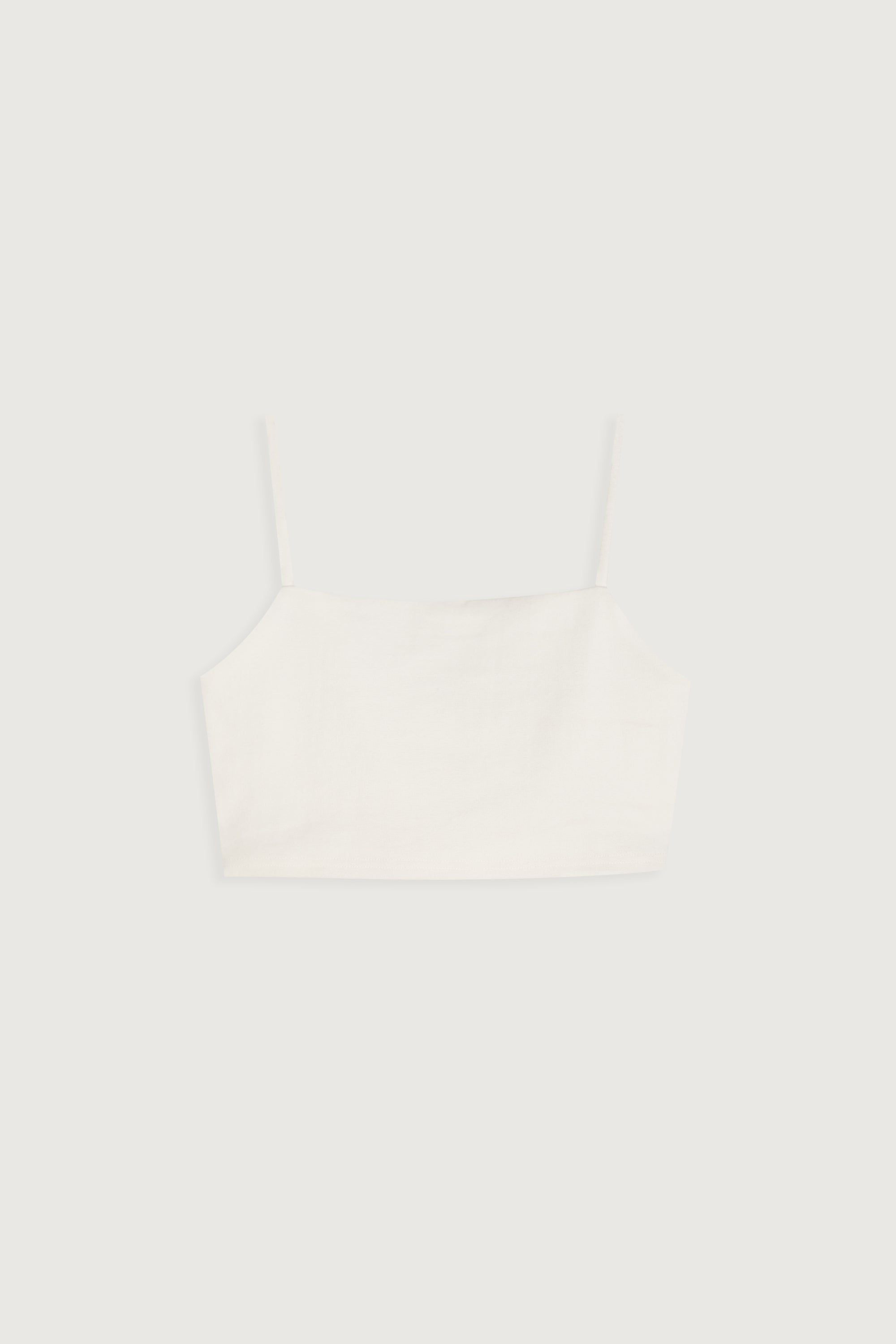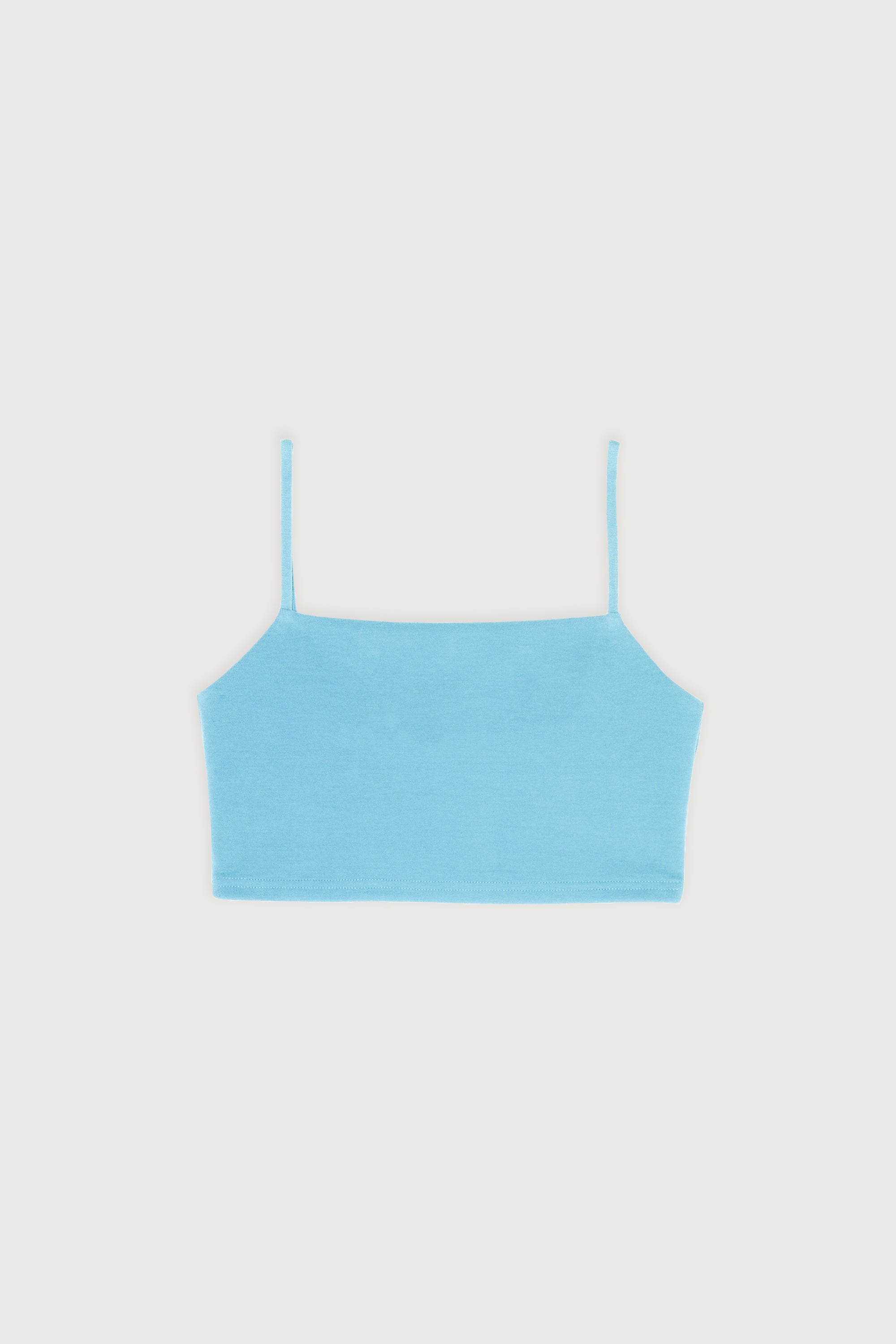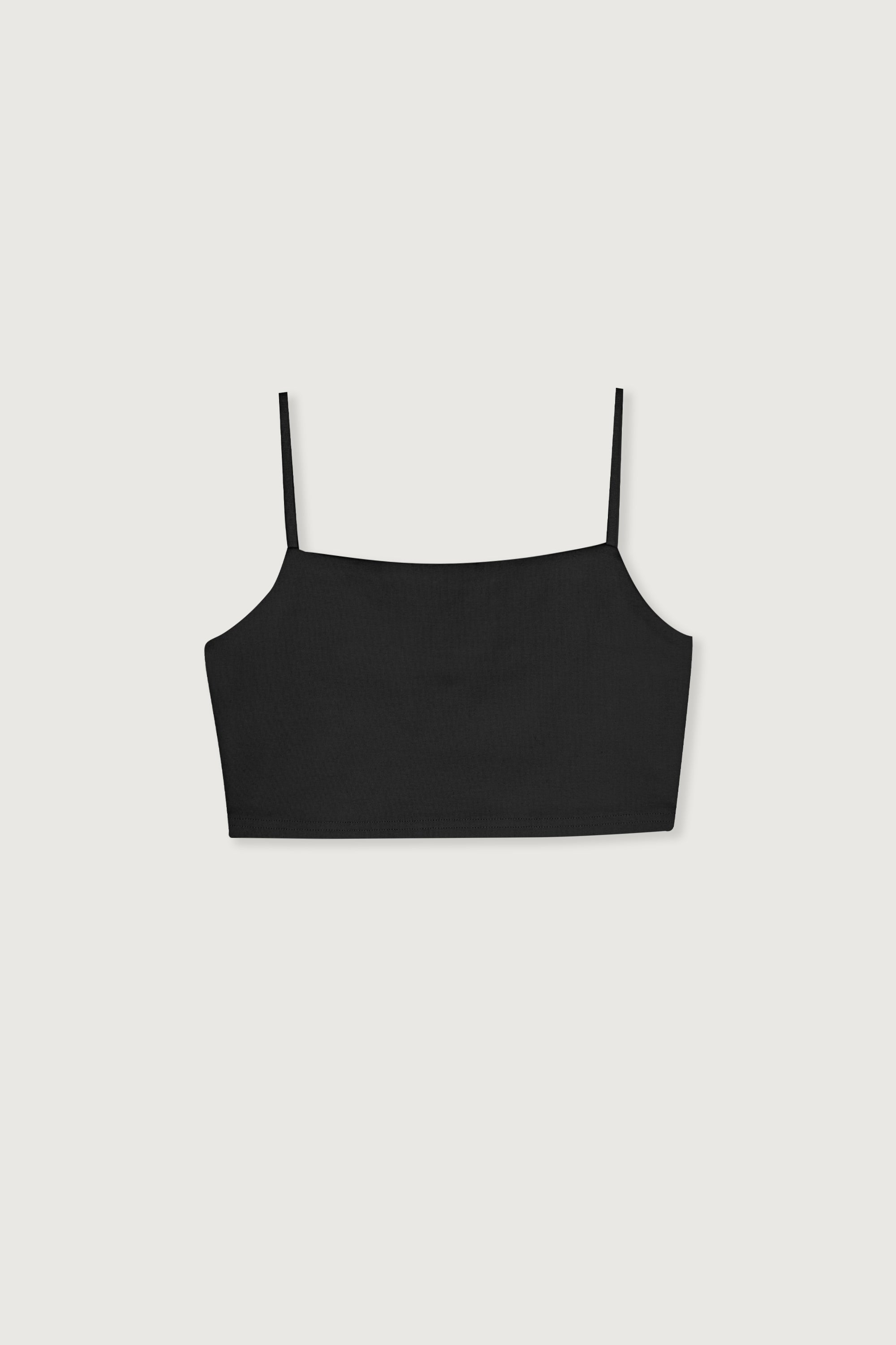 Fitted with stretch. Cropped hem. Slim shoulder straps. 8" length based on size S.