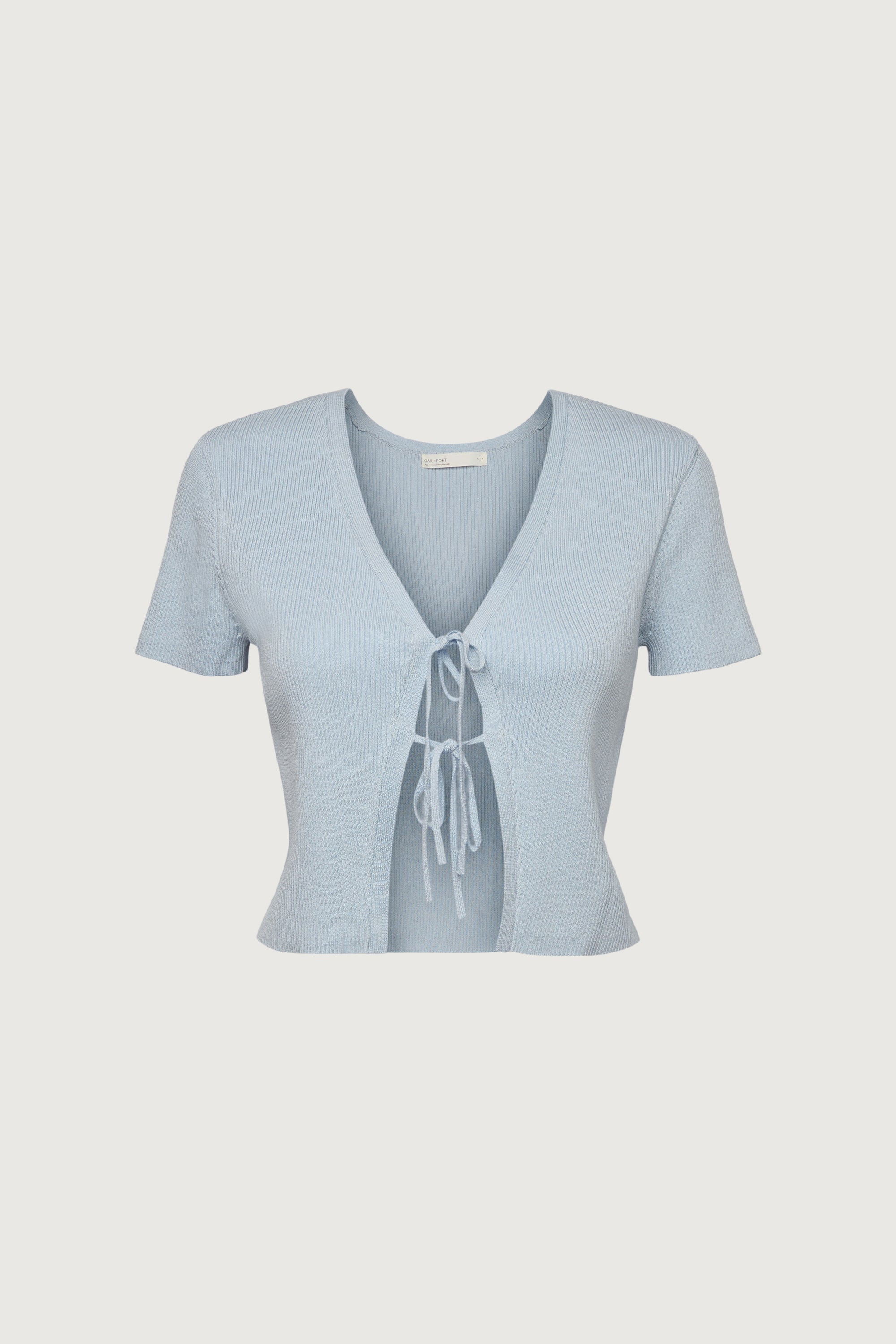 This ribbed short sleeve cardigan is made in a slim fit and cropped length. It's designed with an open front with ties for added detail. Wear yours with cargo pants or a mini skirt.