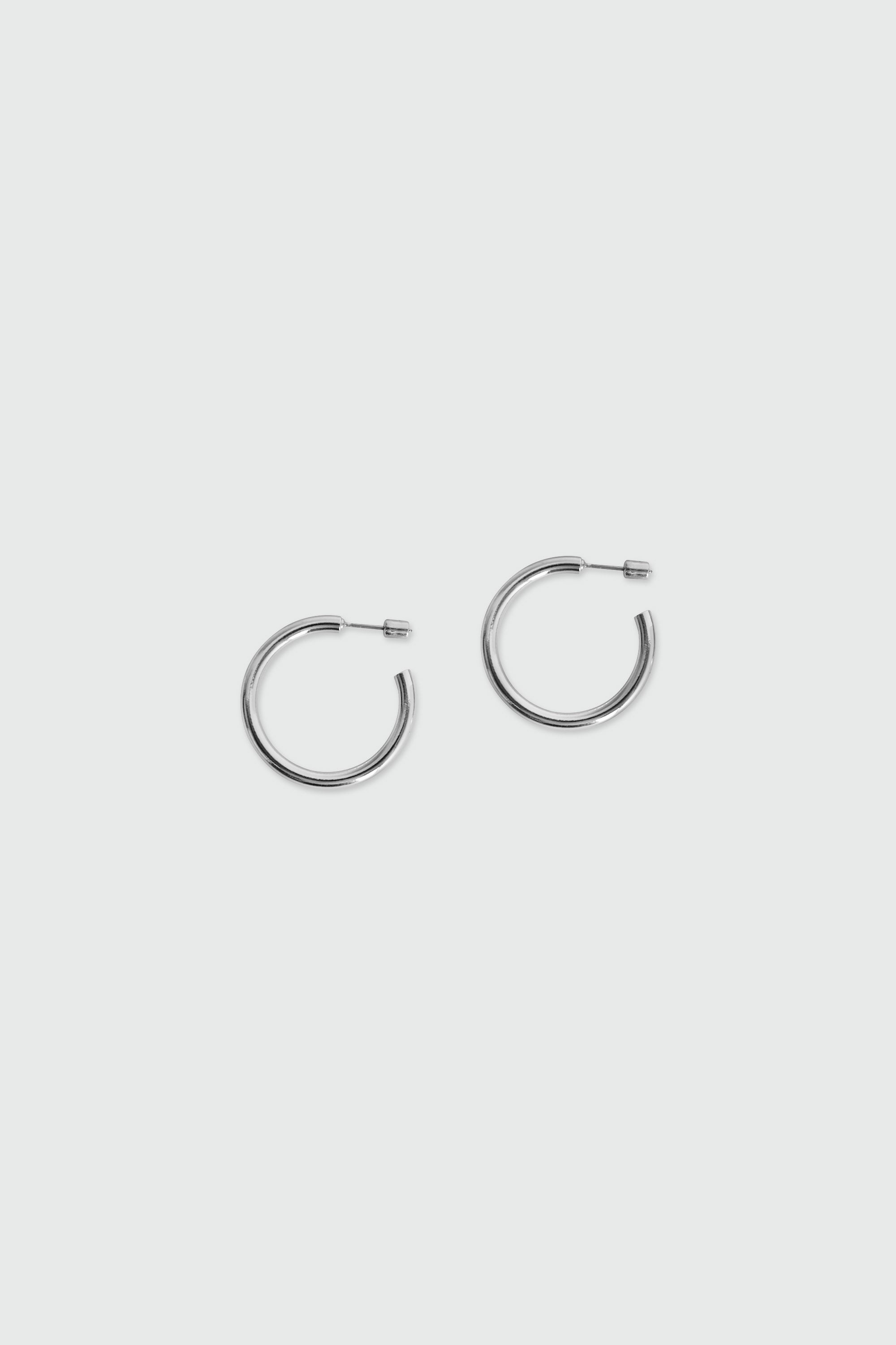 These thick hoop earrings feature an open silhouette with a high shine finish. A simple pair to take from day to night, try styling this piece with a turtleneck sweater and jeans or switch to a wide-leg jumpsuit for an elegant occasion.