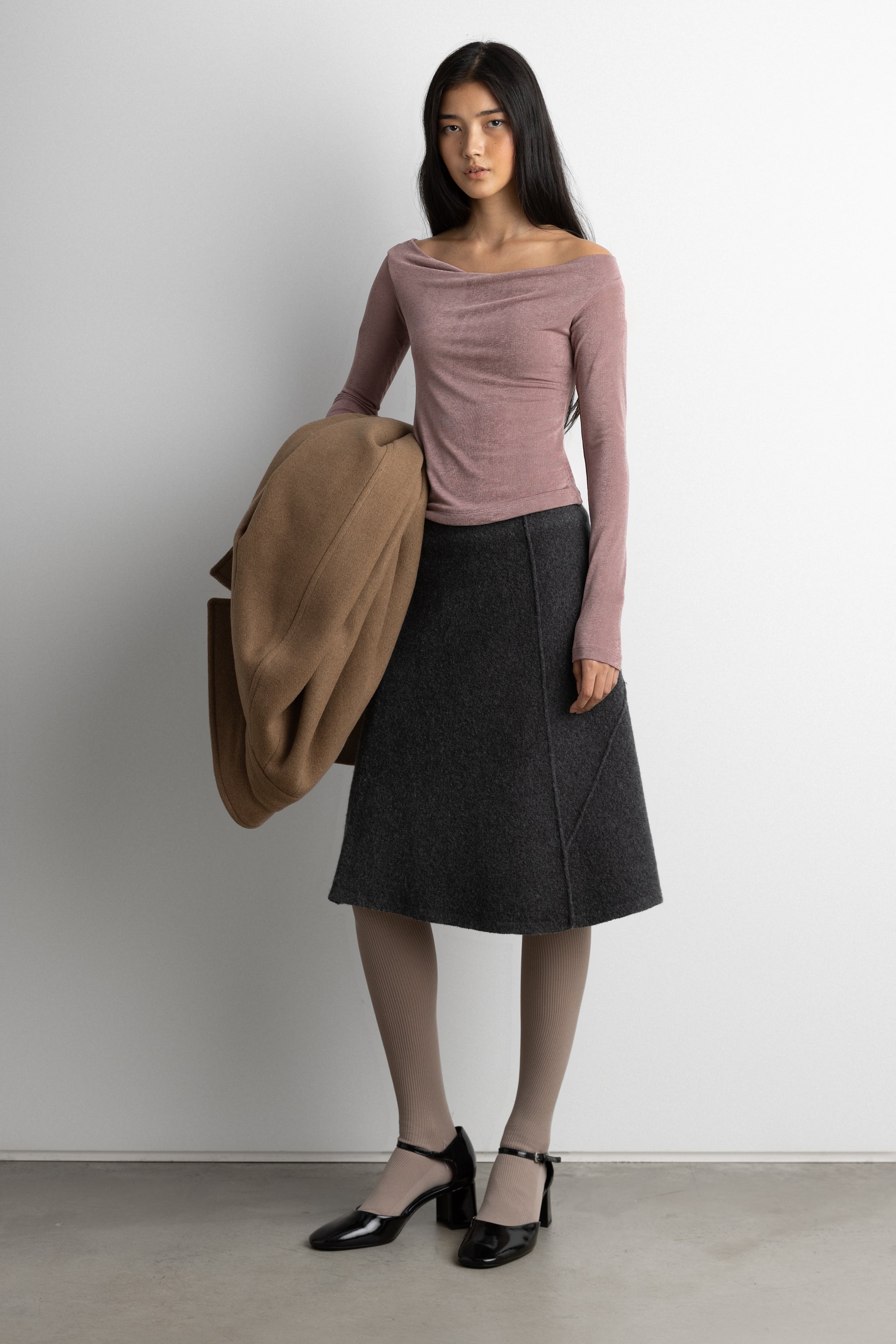 FITTED OFF THE SHOULDER LONG SLEEVE TOP