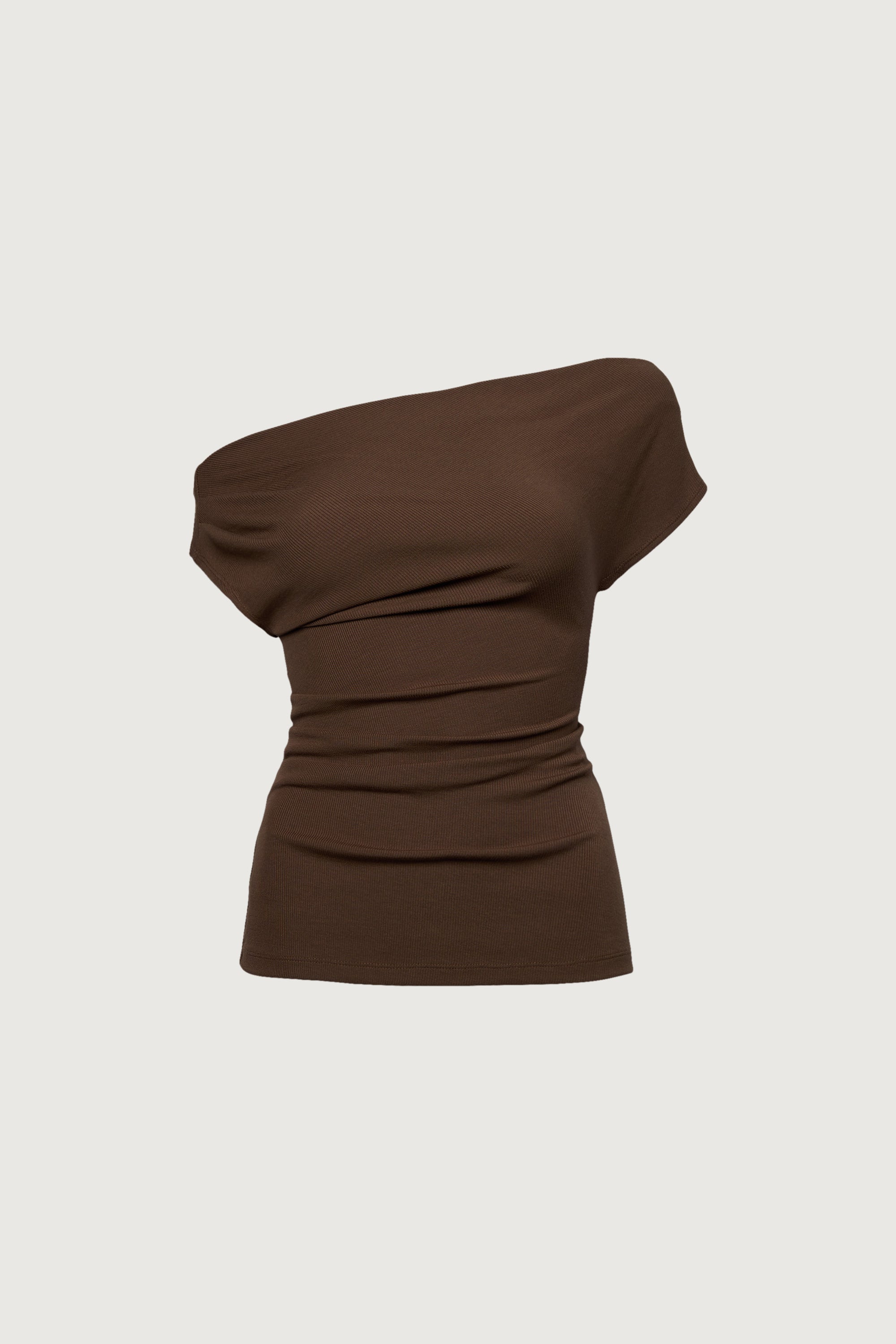 This off the shoulder top is made from a smooth modal blend in a body-hugging fit. It has a slight smoothing effect and is pleated on one shoulder and at one side for added detail.