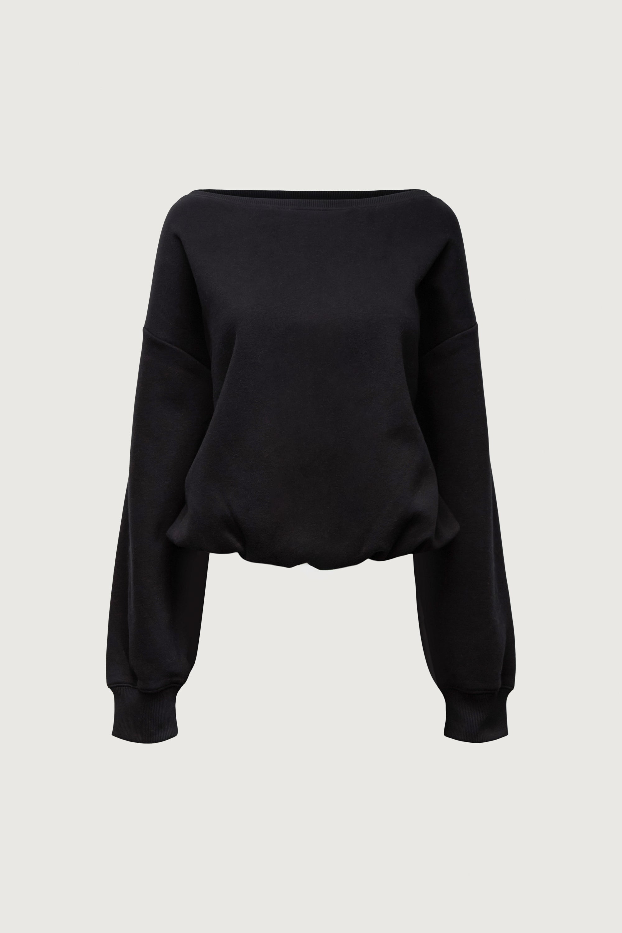FLEECE STUDIO OFF SHOULDER BUBBLE HEM SWEATSHIRT