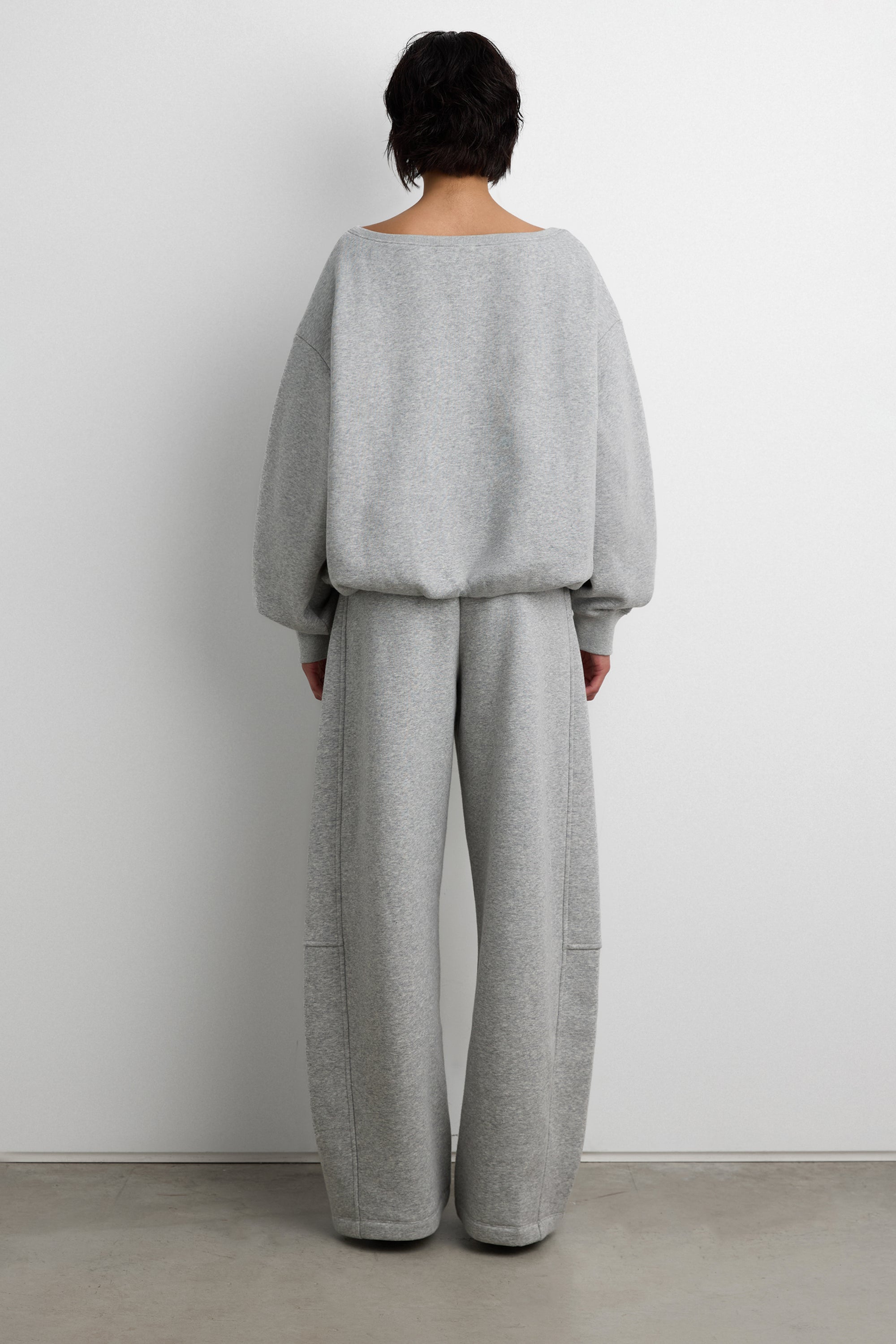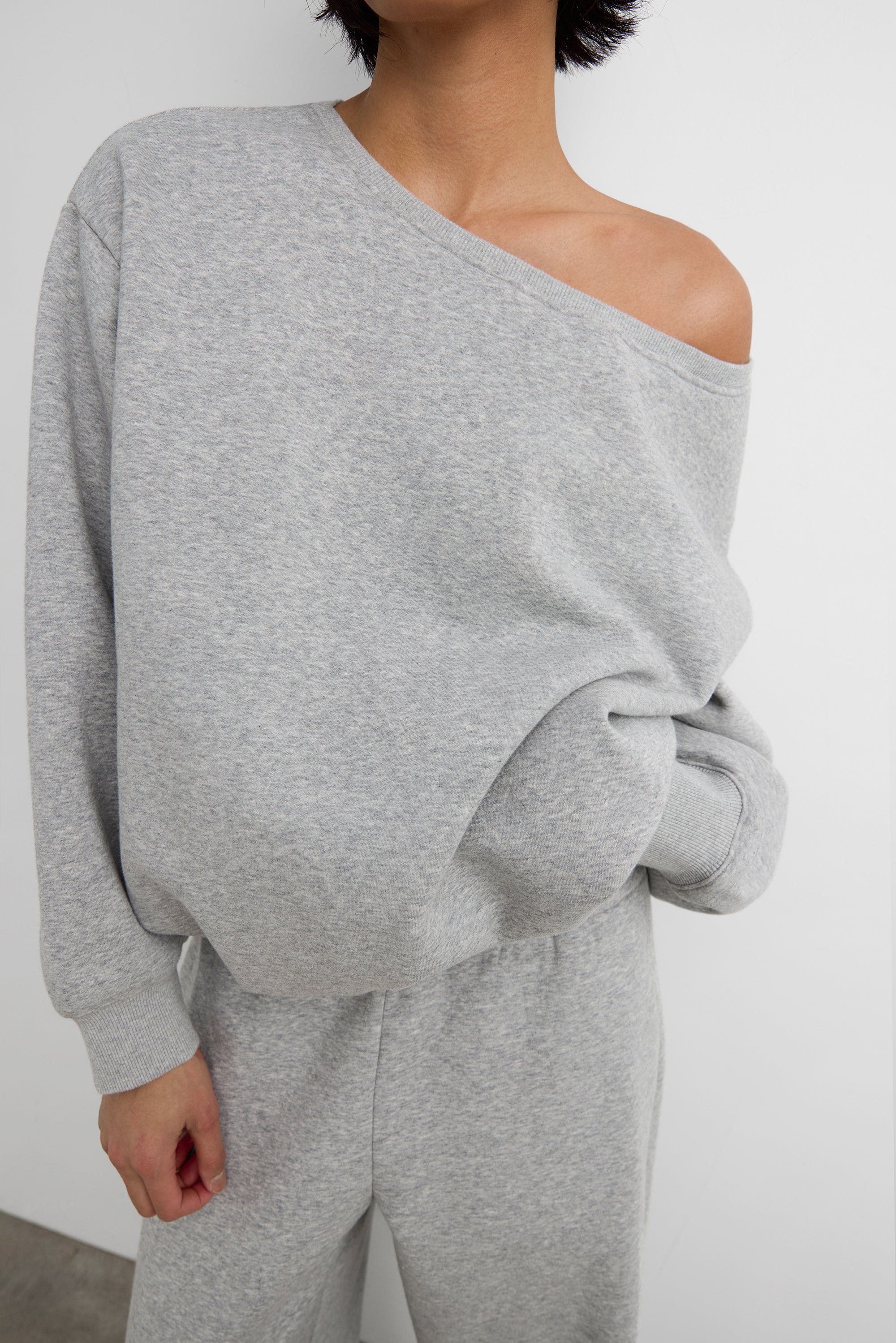 This sweatshirt is made from a fleece lined cotton blend in an oversized fit. It's updated with an off shoulder design and a bubble hem for a relaxed, laid-back look. A new go-to to wear with matching sweats.