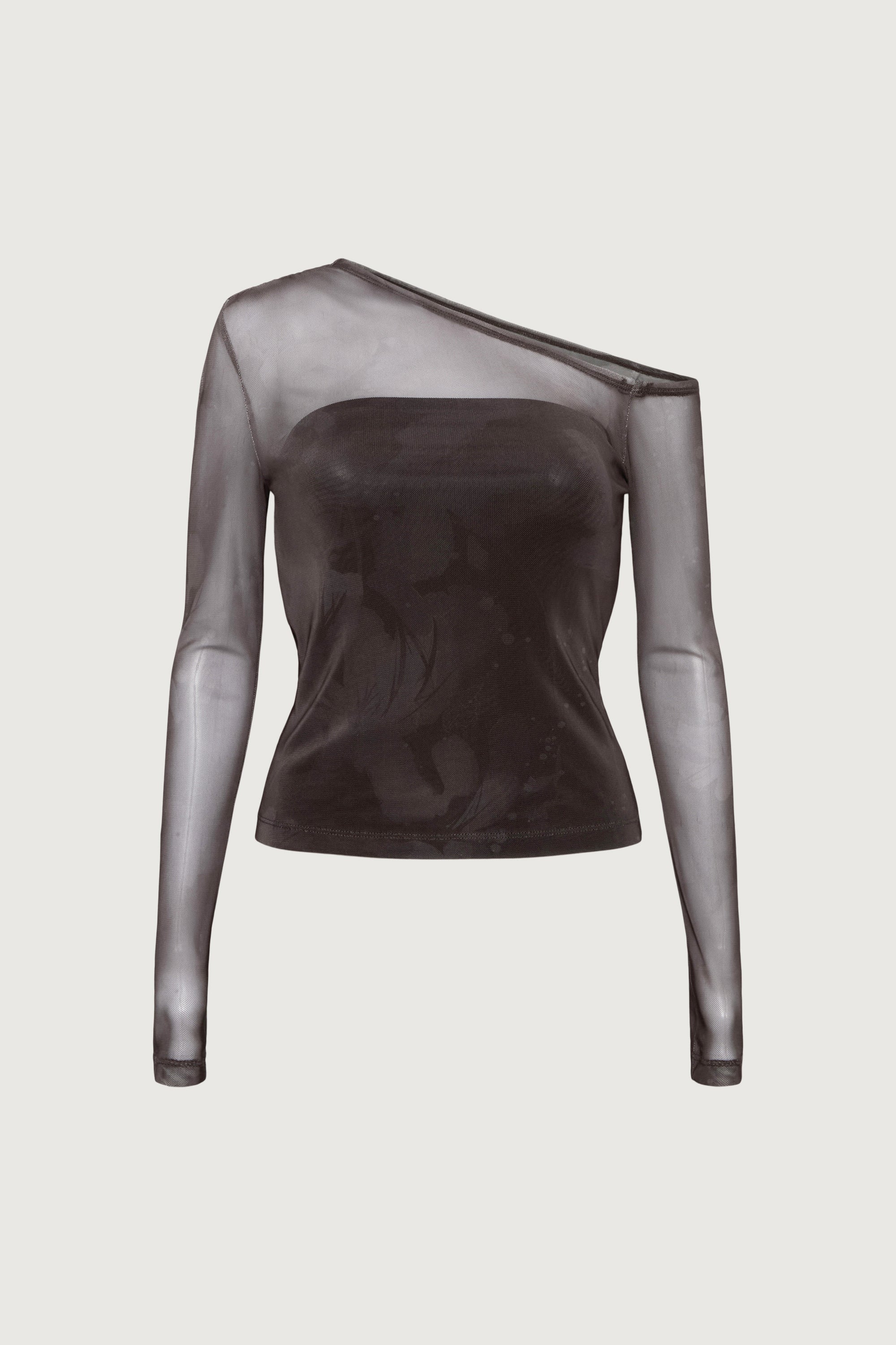 This asymmetrical long sleeve top is cut from a floral mesh in a slim fit. The body-hugging mesh has a comfortable stretch and has an inner tube top layer for added coverage. Wear yours with a mini pleated skirt or with baggy jeans.